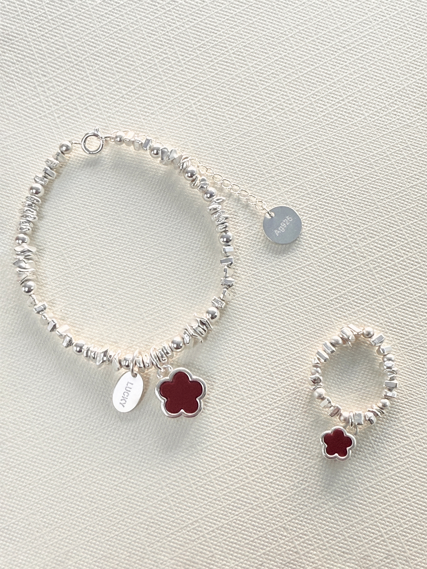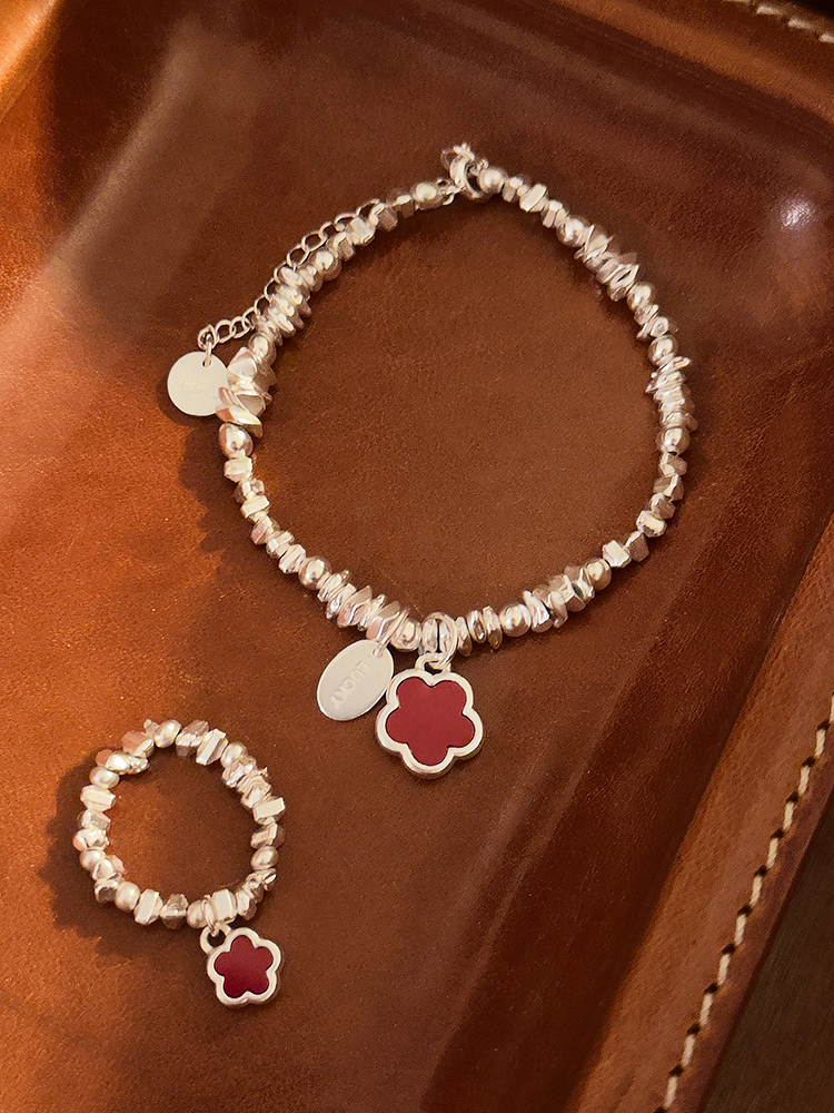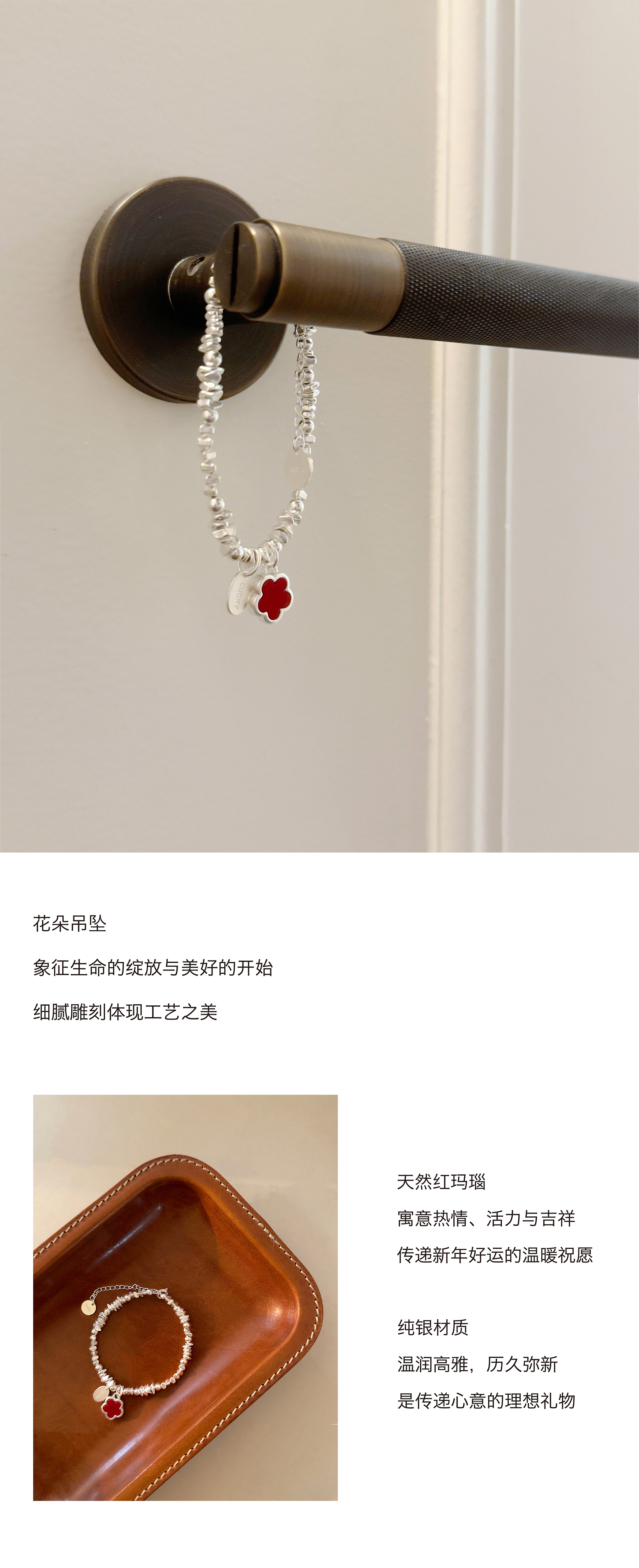 moreforPOEM 幸运红玛瑙花朵手链戒指重工925银本命年开运礼物