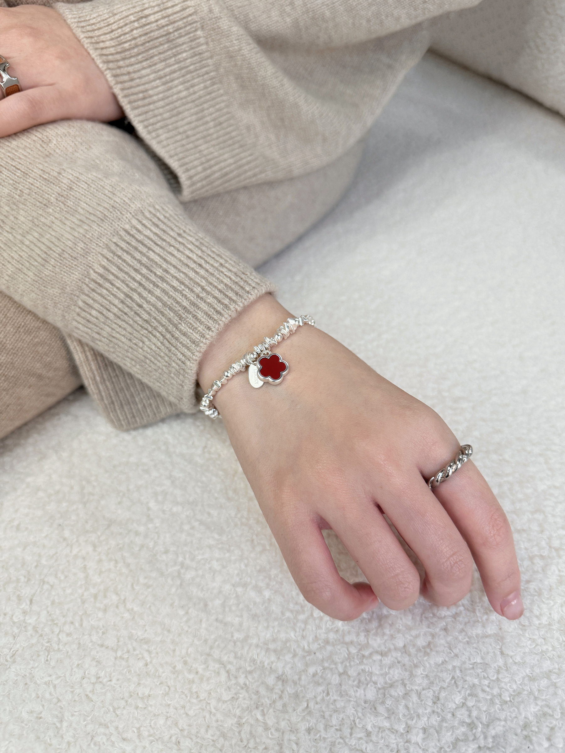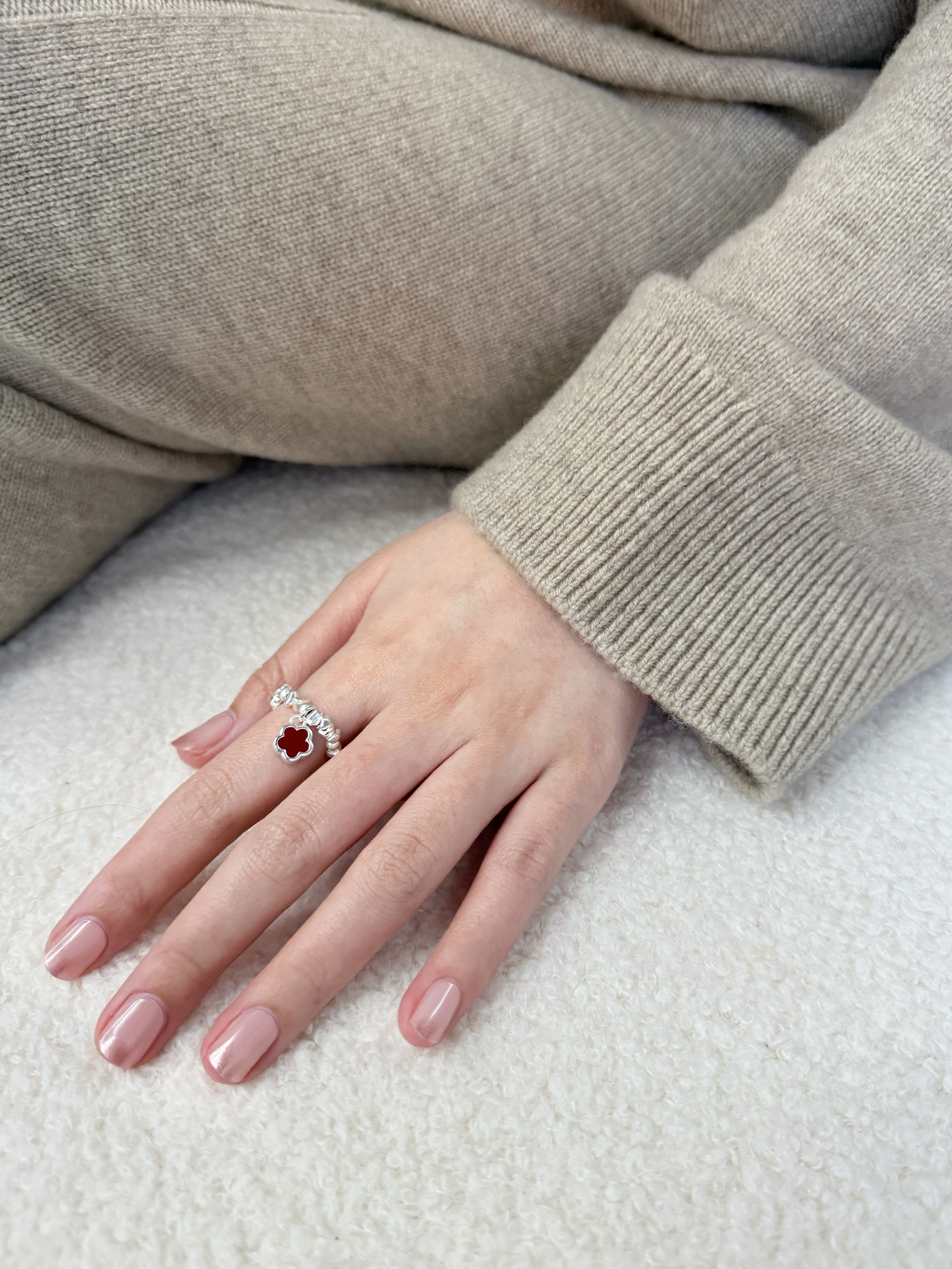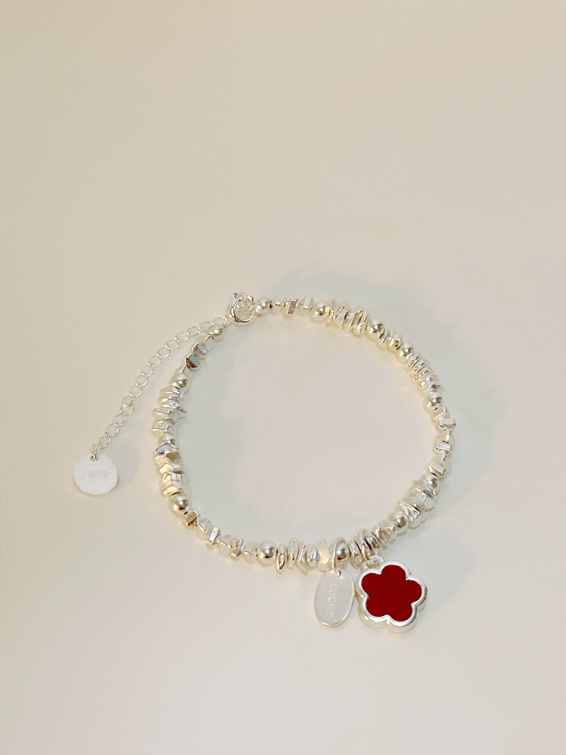 moreforPOEM 幸运红玛瑙花朵手链戒指重工925银本命年开运礼物