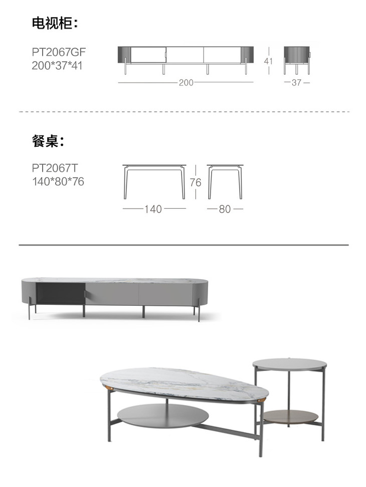 顾家家居整装 现代简约 茶几角几电视柜餐台餐椅 PT2067系列