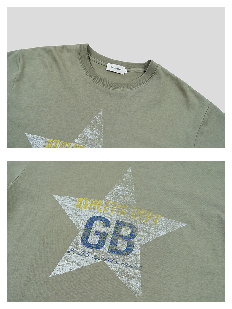 GOODBAI athletic GB 星星logo水洗印花圆领oversize短袖T恤
