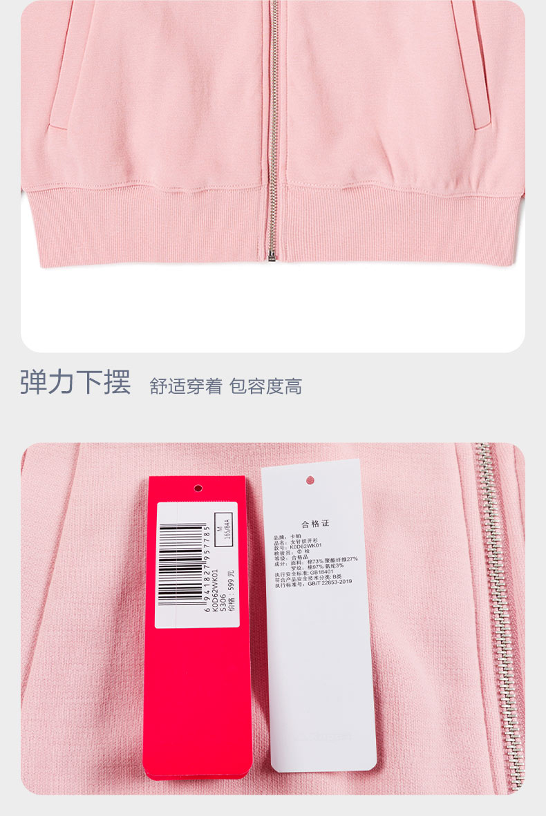 Kappa卡帕复古运动针织开衫2023新款女秋纯色简约卫衣休闲外套