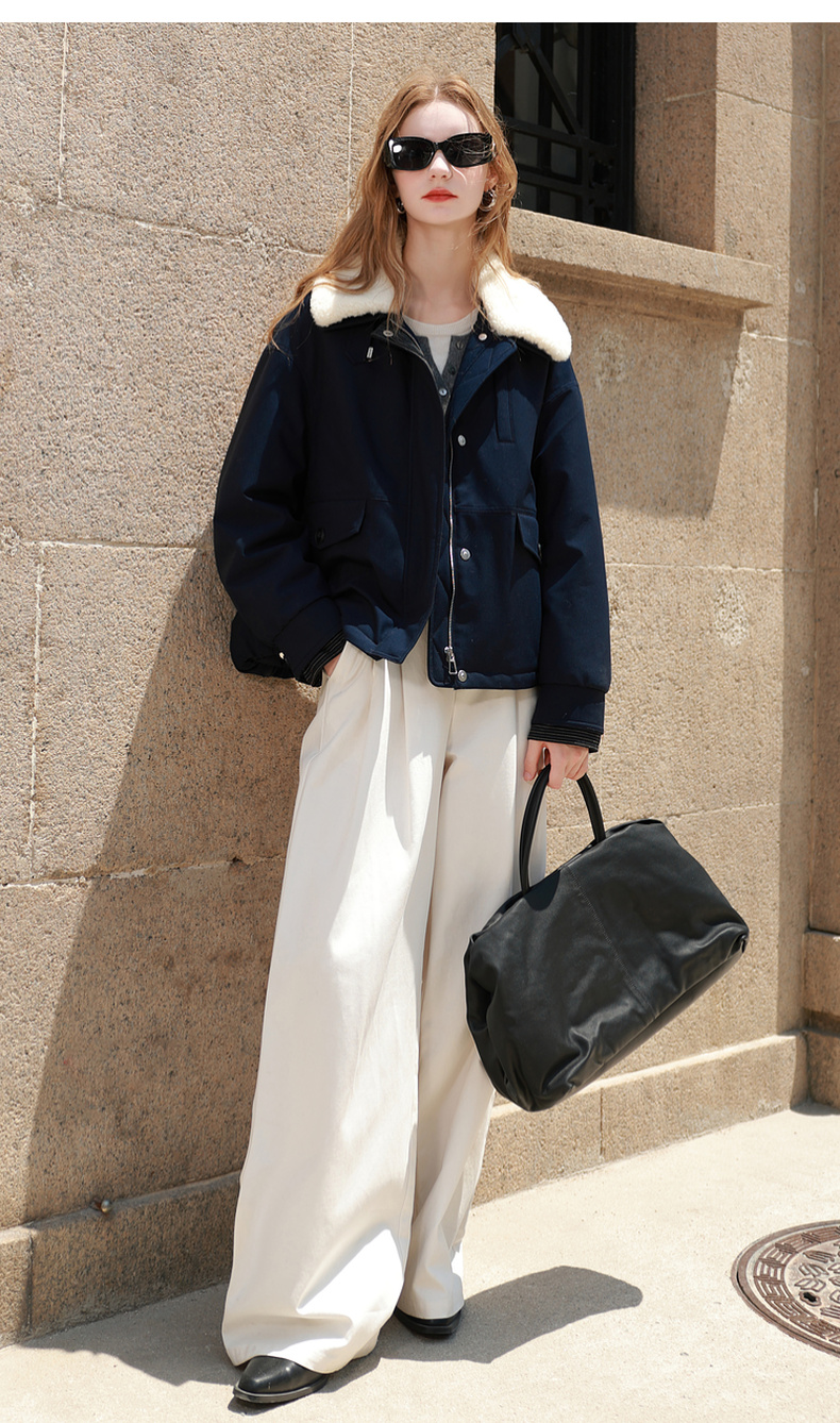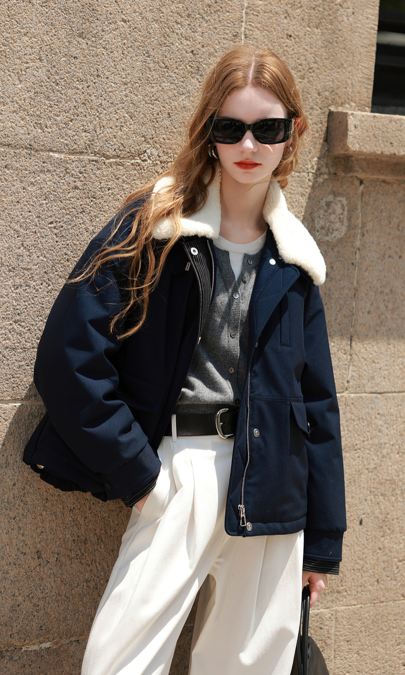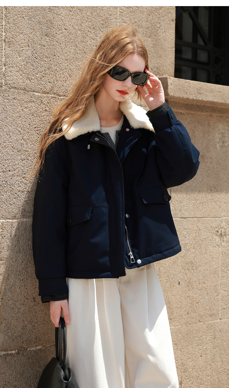 三彩2025冬季新款翻领羽绒服90白鸭绒压胶直充短款休闲M