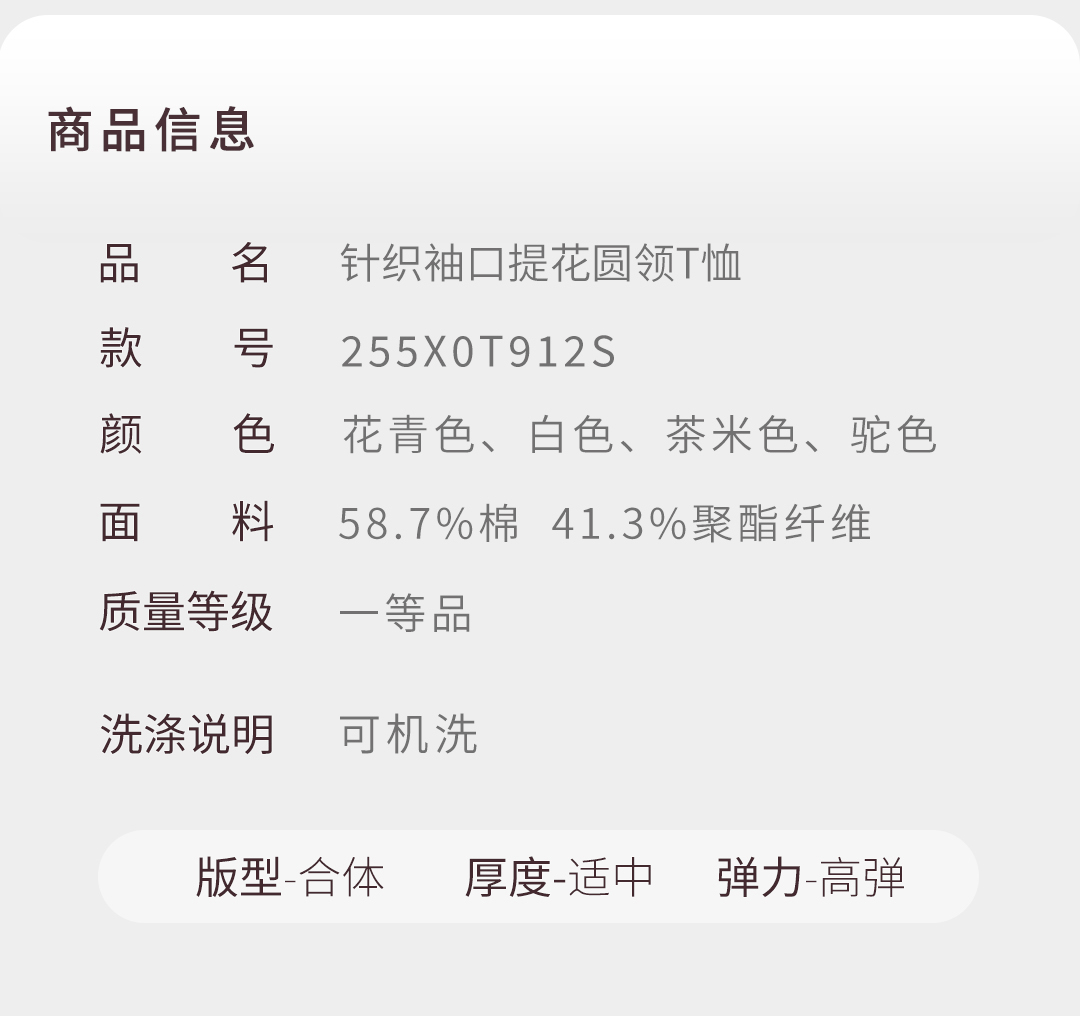 【大师提花】COOLMAX凉感纤维横机针织T恤255X0T912S[门店专款]