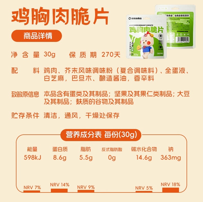 【暴肌独角兽】鸡胸肉脆片干减低0健康卡脂解馋零食品