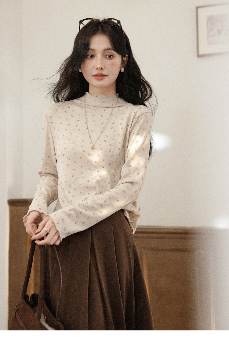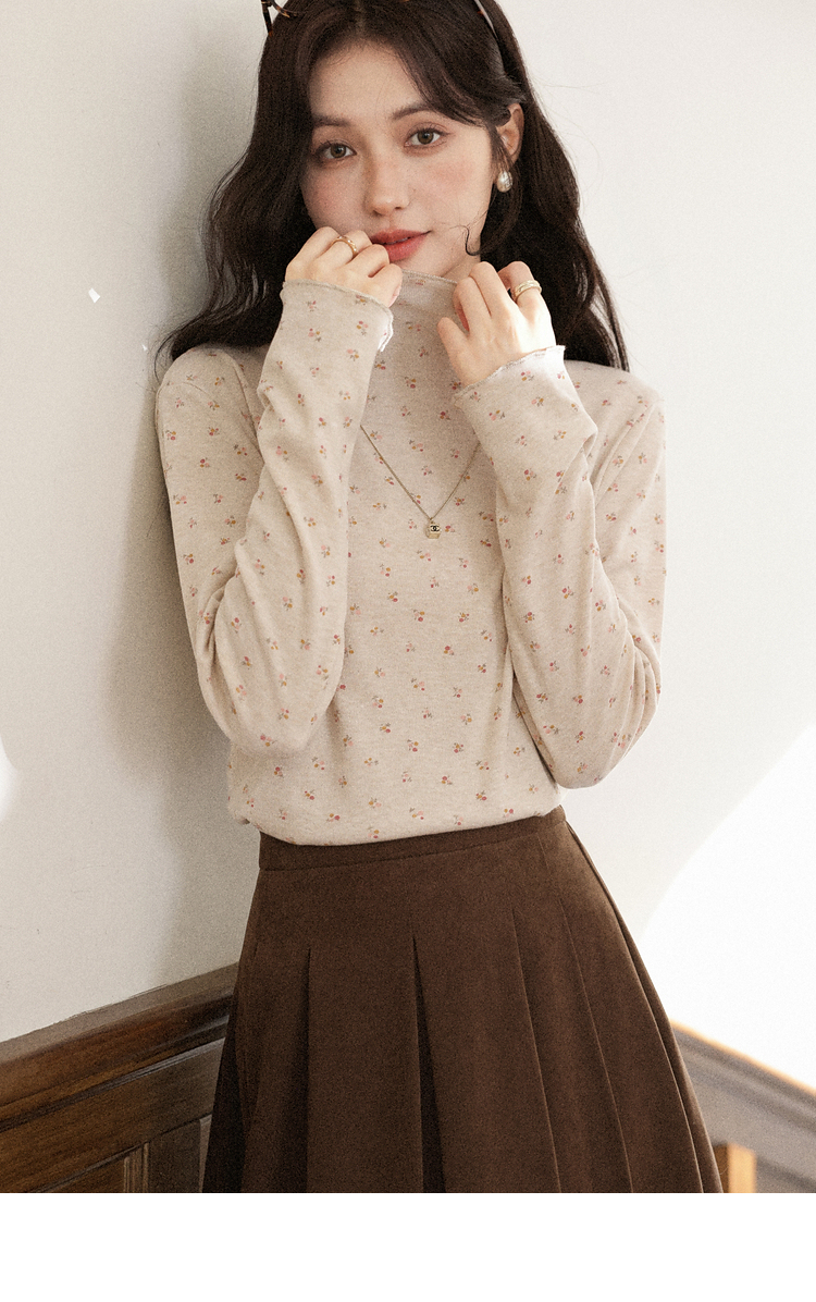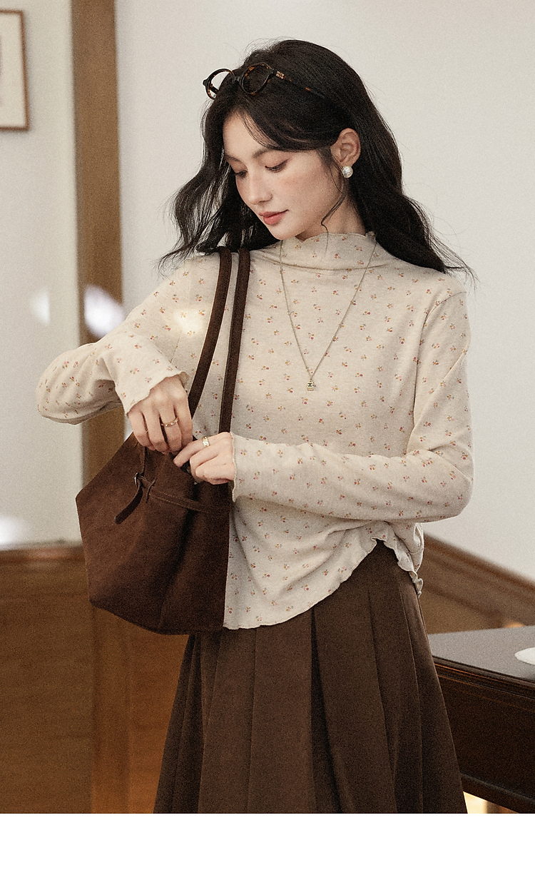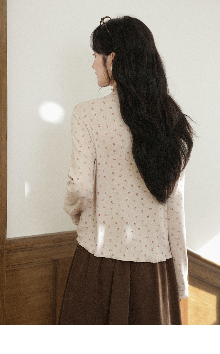 【6折秒杀】鹿向南「花香细语」法式紫色长袖V领衬衫秋季新款休闲通勤衬衣女L569129