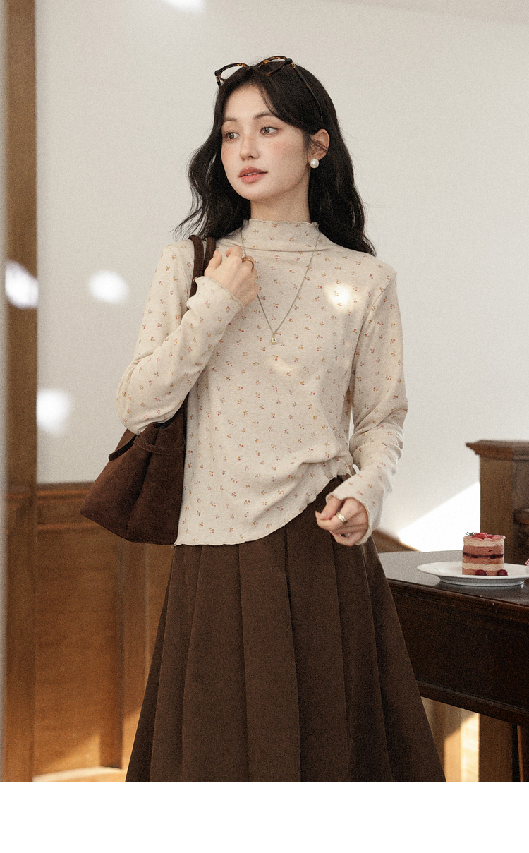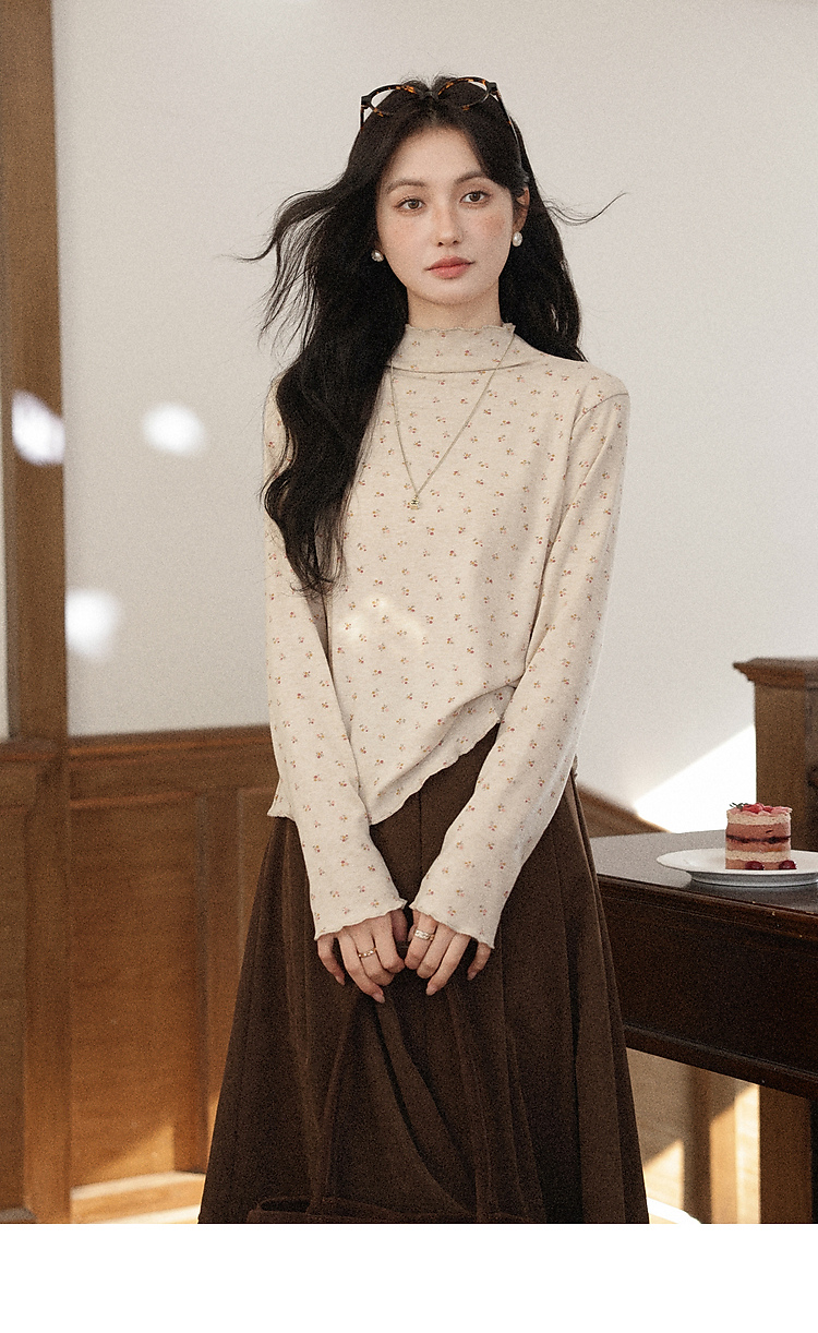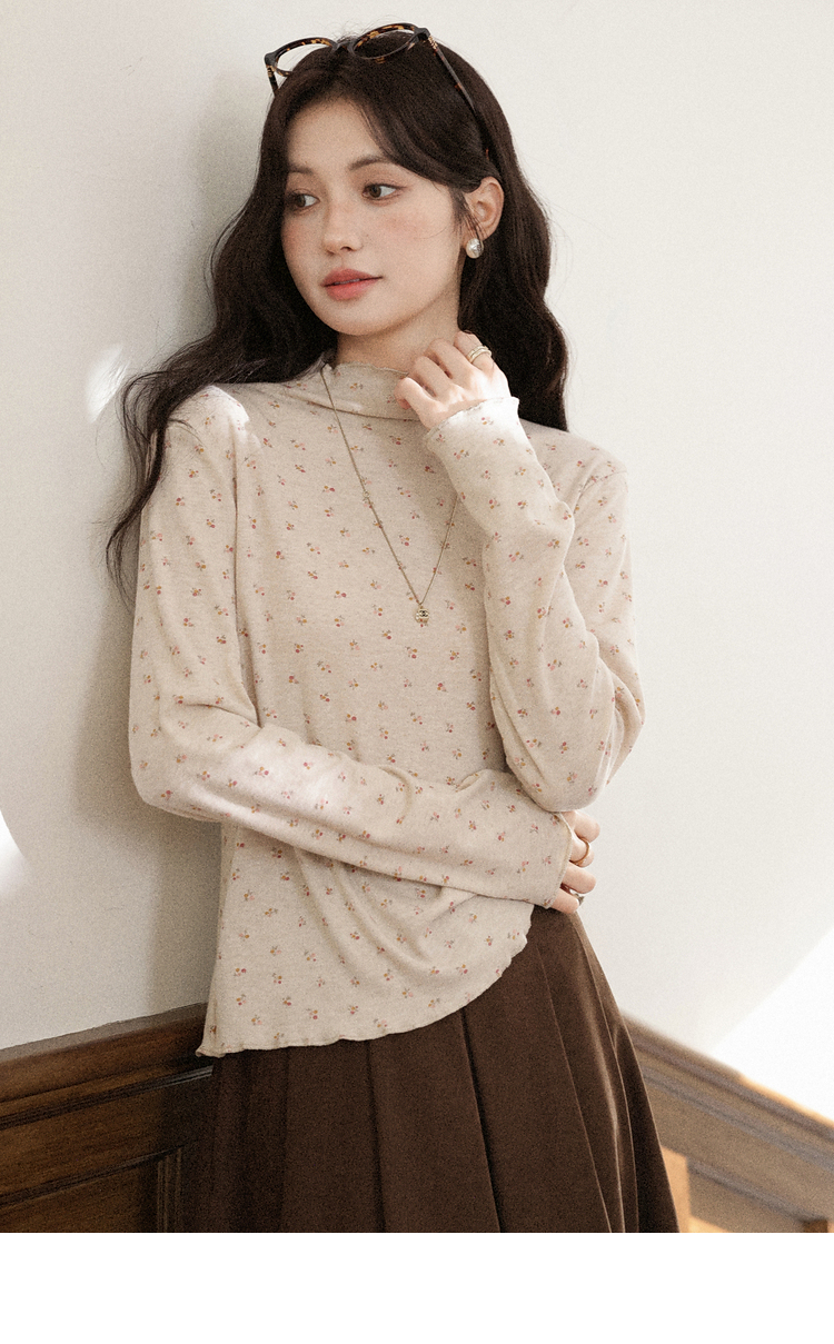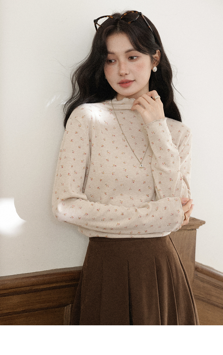 【6折秒杀】鹿向南「花香细语」法式紫色长袖V领衬衫秋季新款休闲通勤衬衣女L569129
