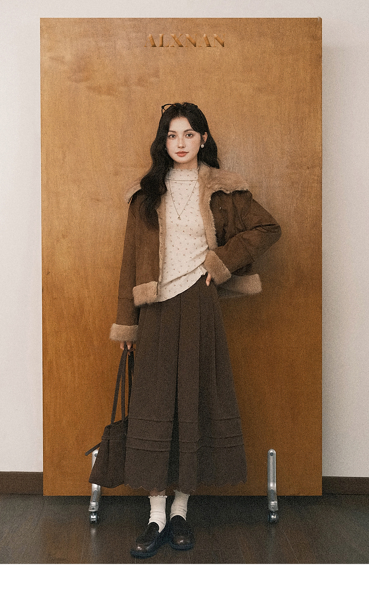 鹿向南「雾都恋人」粉色短外套时尚V领秋冬季外搭开衫小众上衣女