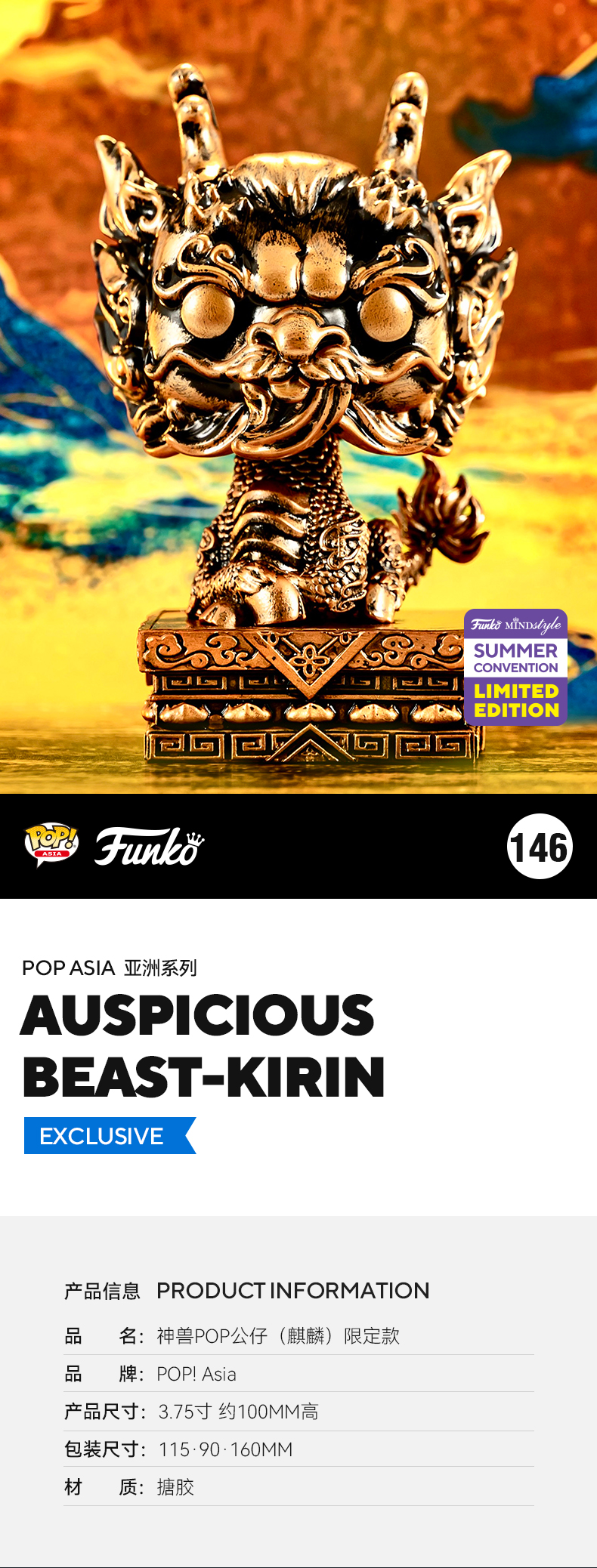 Funko POP! Asia Auspicious Beast- Kirin(Exclusive) 亚洲系列 神兽瑞兽 麒麟 夏日限定款 公仔手办摆件 66657