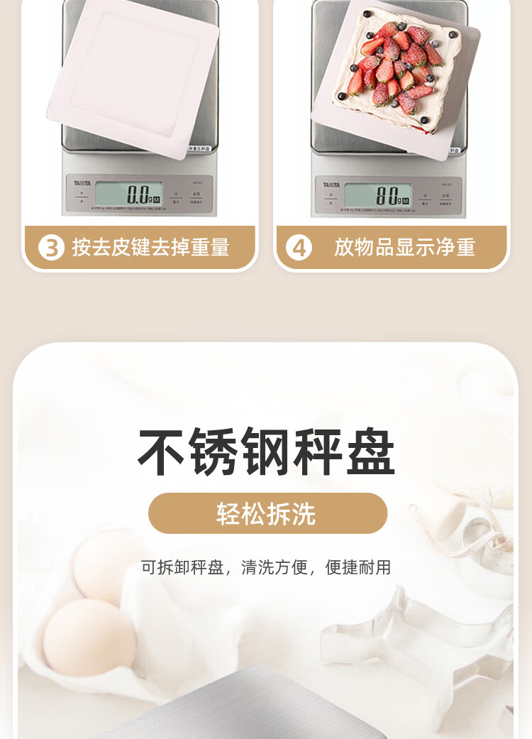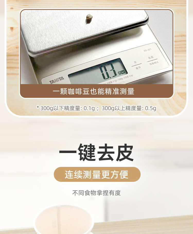 百利达(TANITA) KD-321家用厨房秤 日本品牌电子秤克称 银色_MW