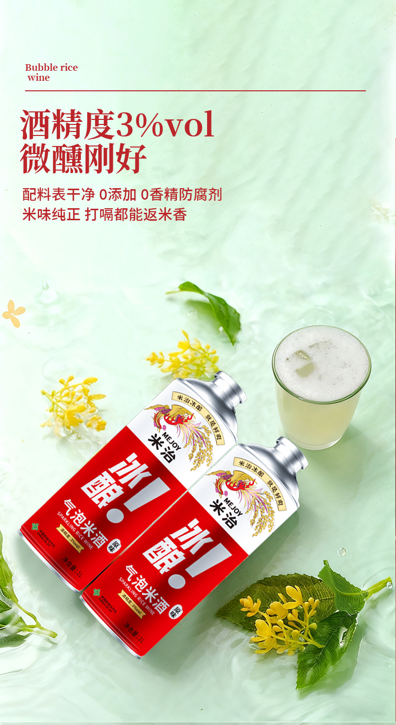 【米治】米酒原味鲜榨醪糟汁 解辣解腻 小甜酒爽口3度微醺起泡酒