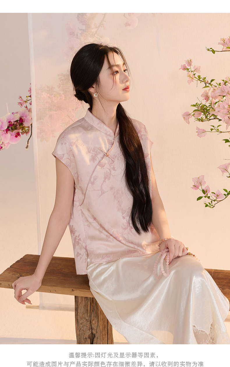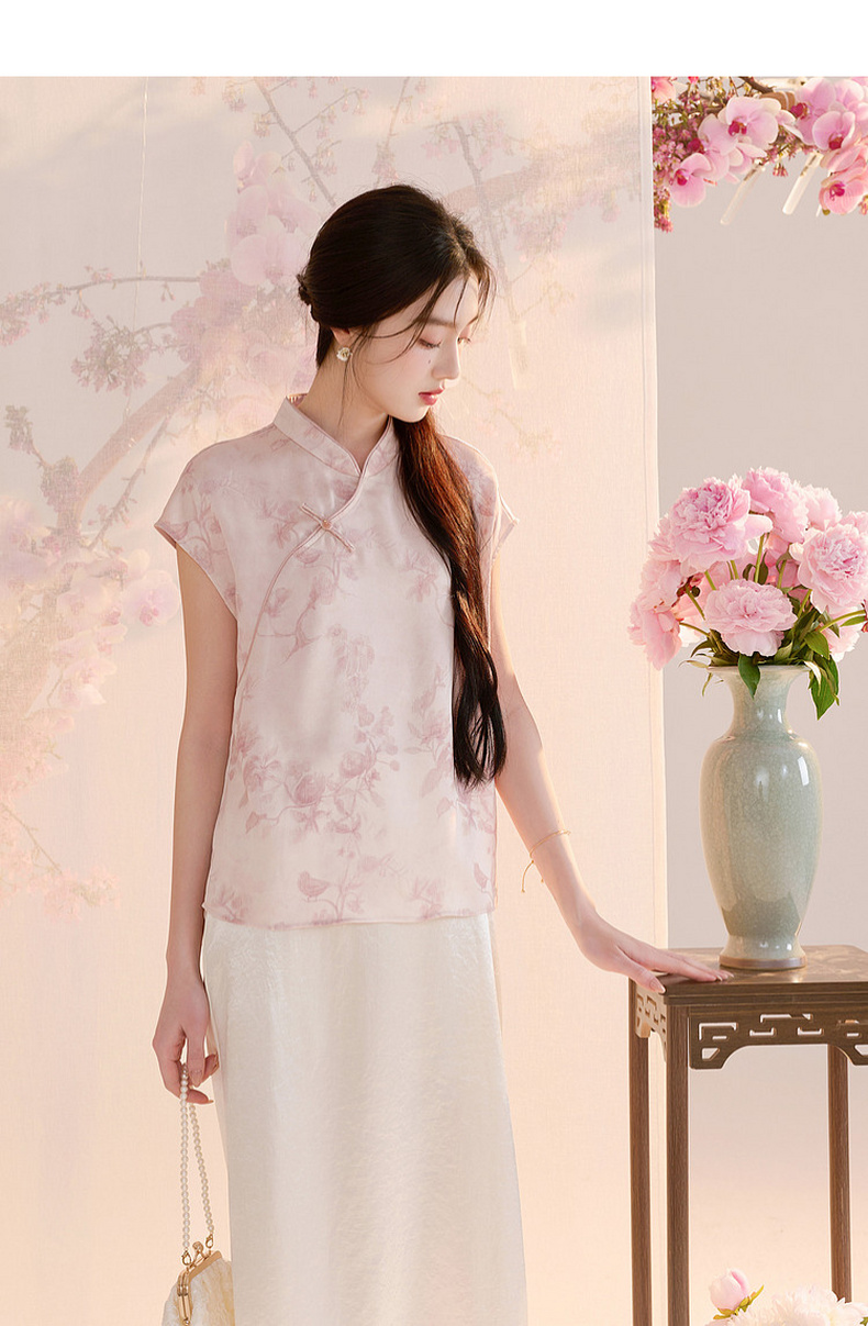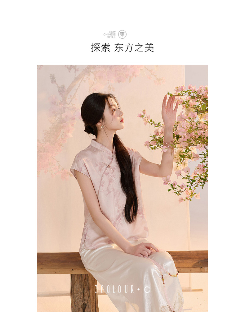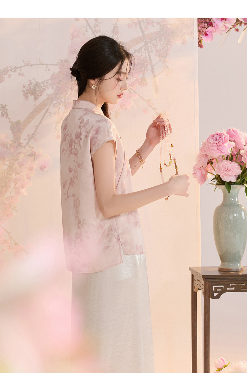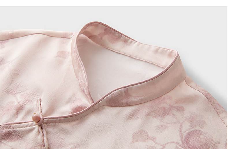 三彩【迟日芳菲】2026夏季新款新中式提花小衫宽松立领短袖衬衣C