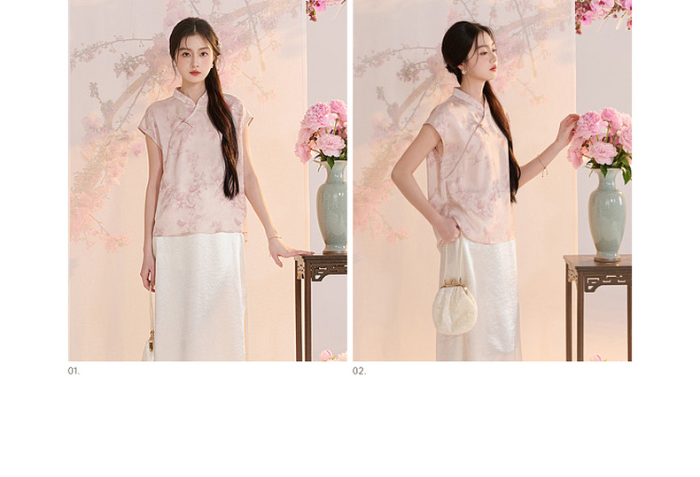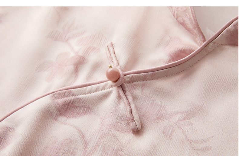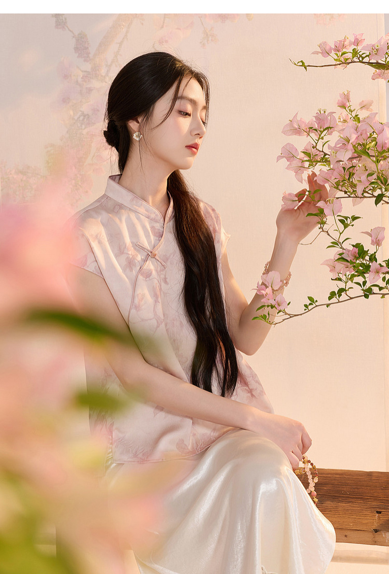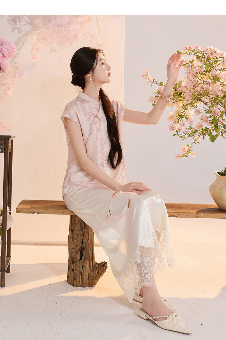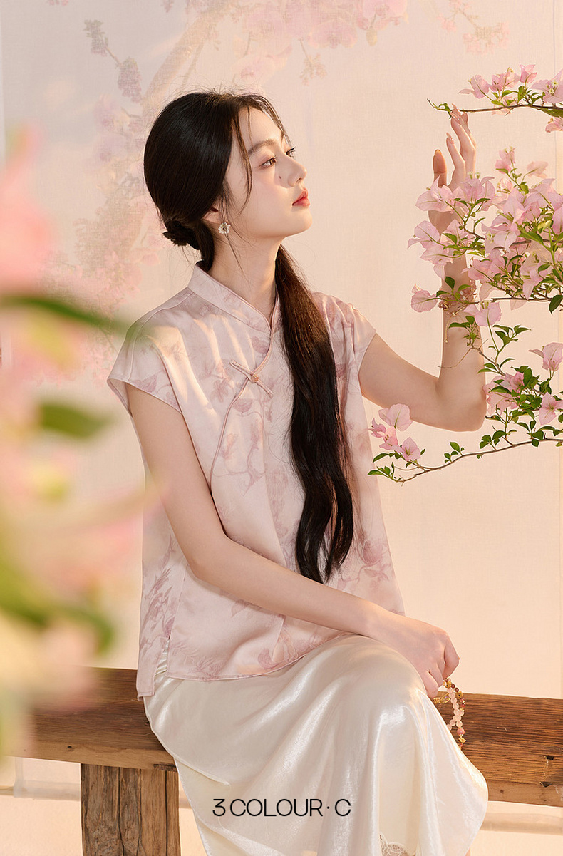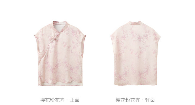 三彩【迟日芳菲】2026夏季新款新中式提花小衫宽松立领短袖衬衣C