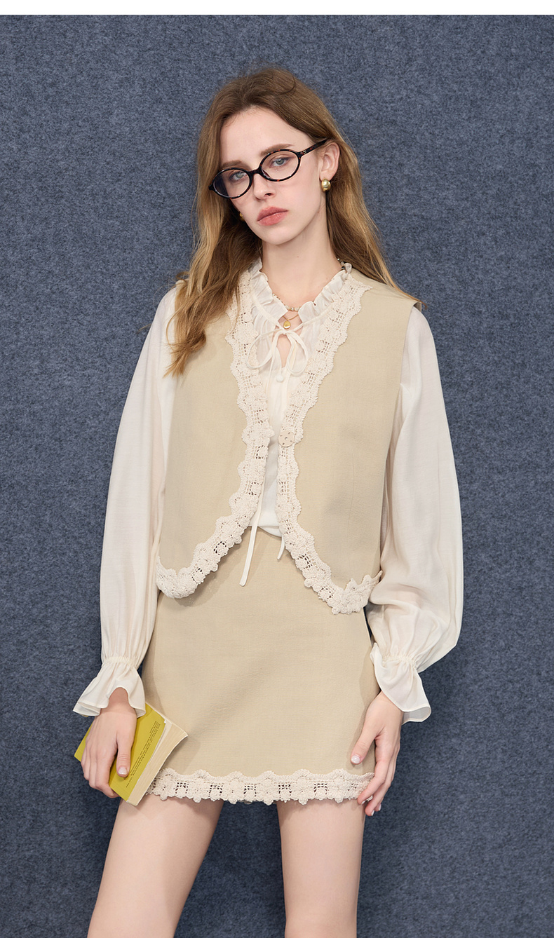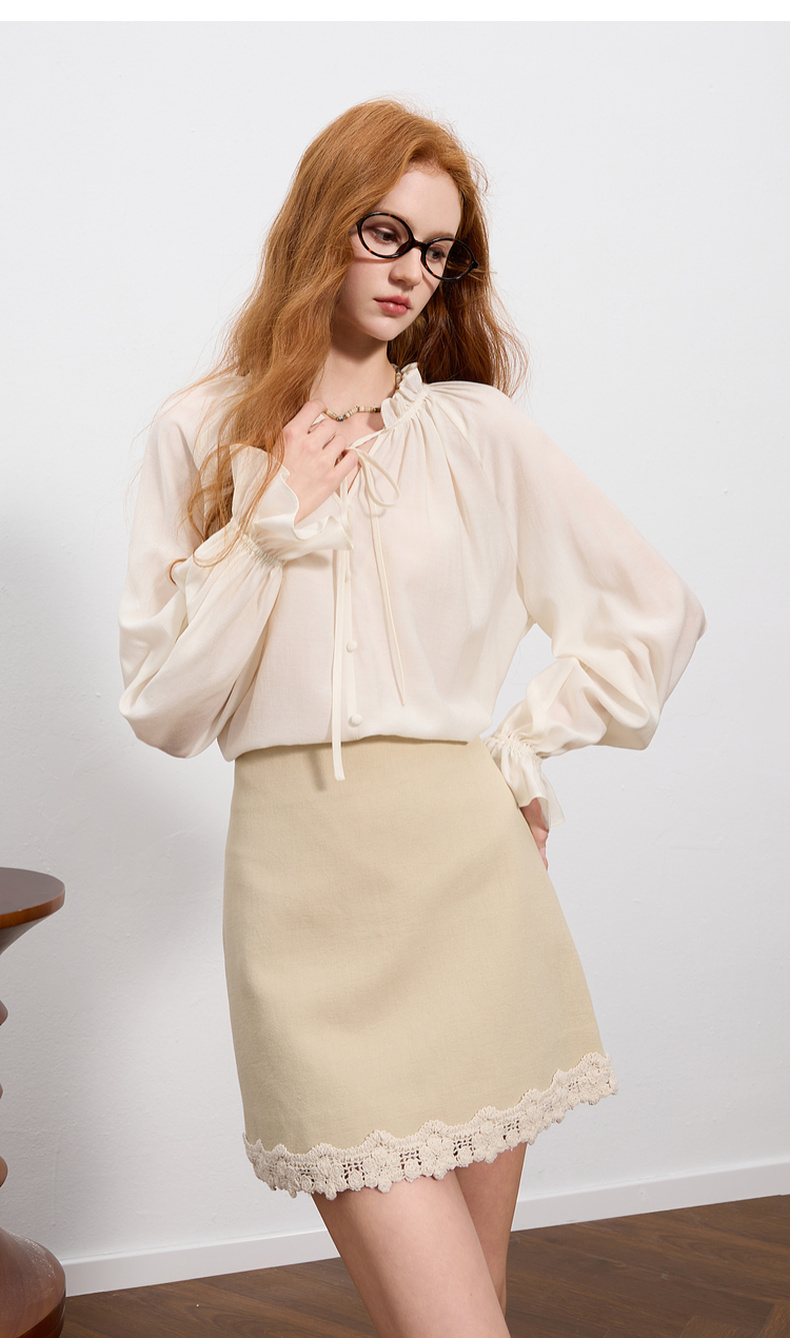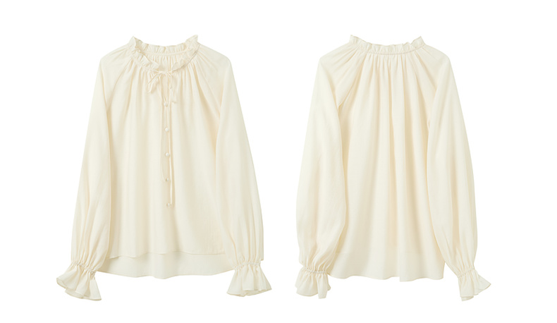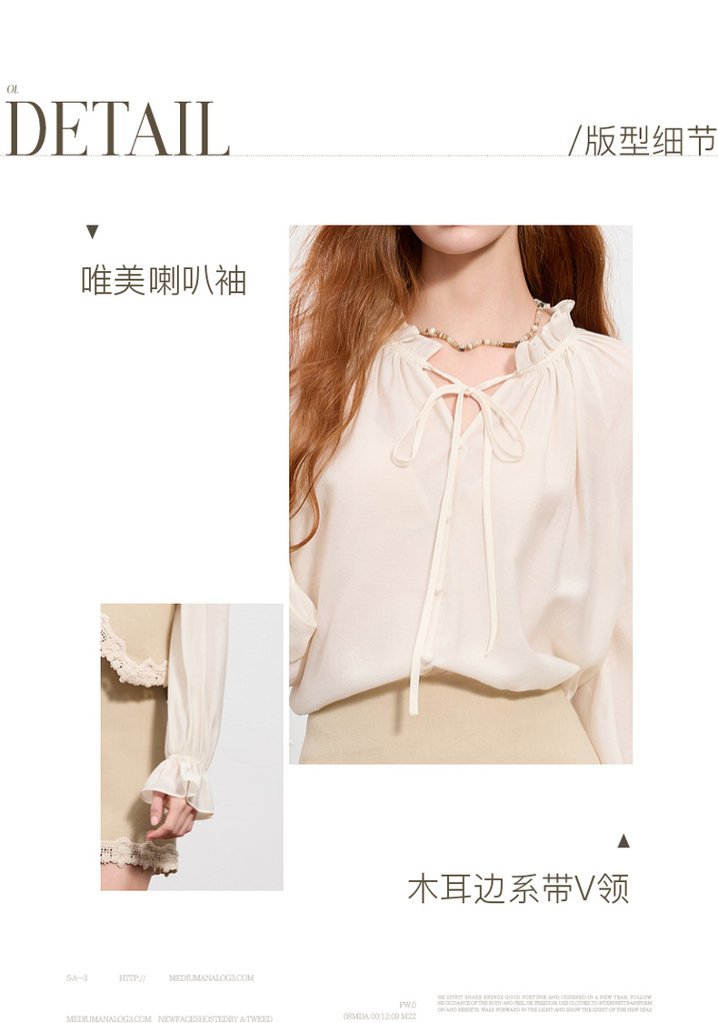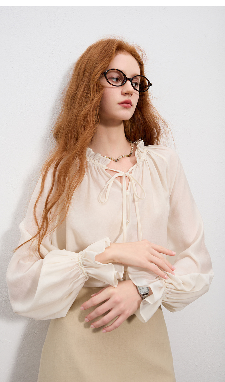 【醋酸】三彩2025秋季新款长袖衬衣宽松系带木耳边上衣气质M