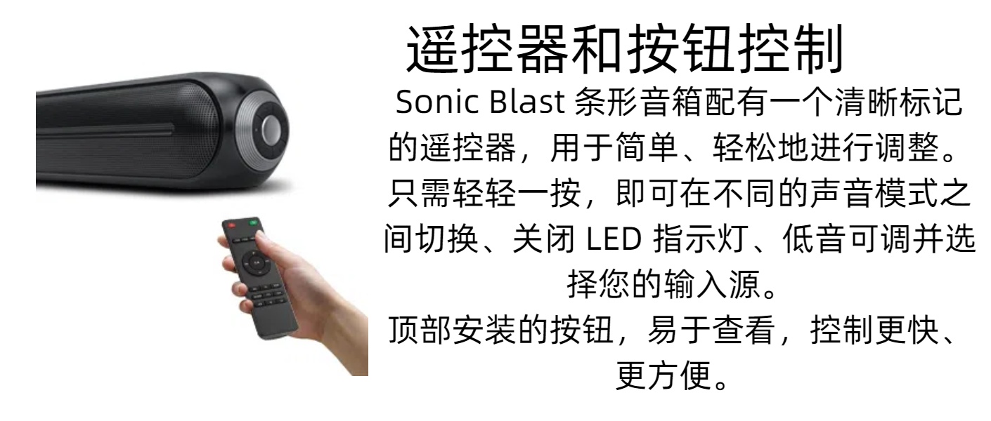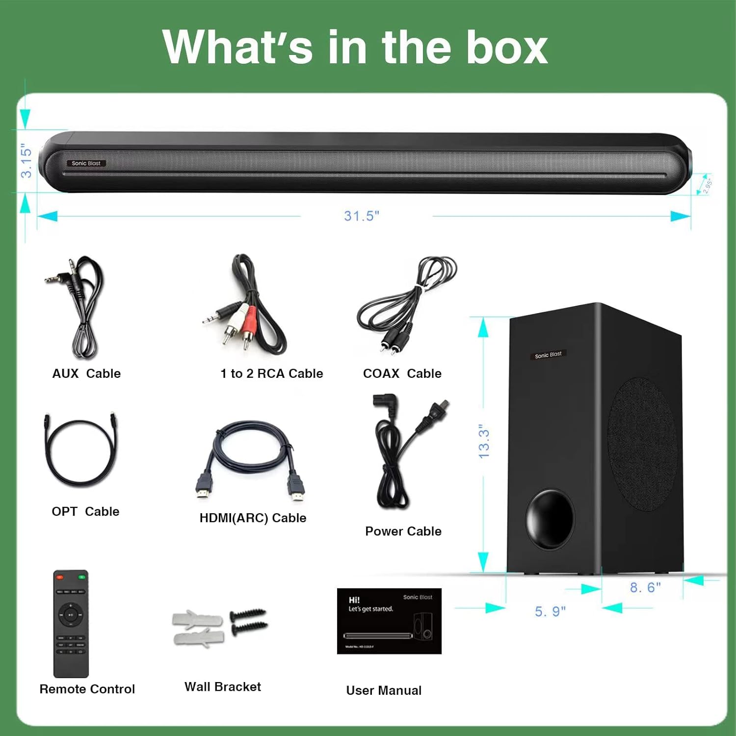 美国 Sonic Blast 2.1声道 无线蓝牙回音壁 带低音炮套装 HDMI / 光纤 /RCA