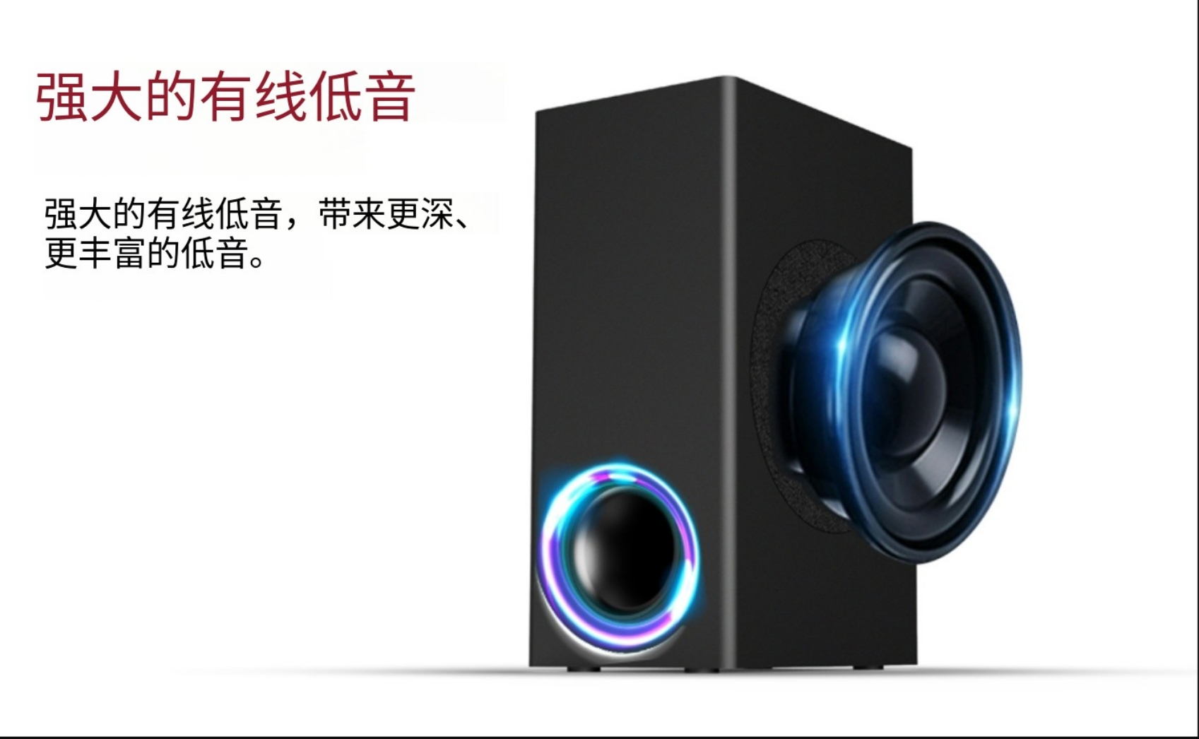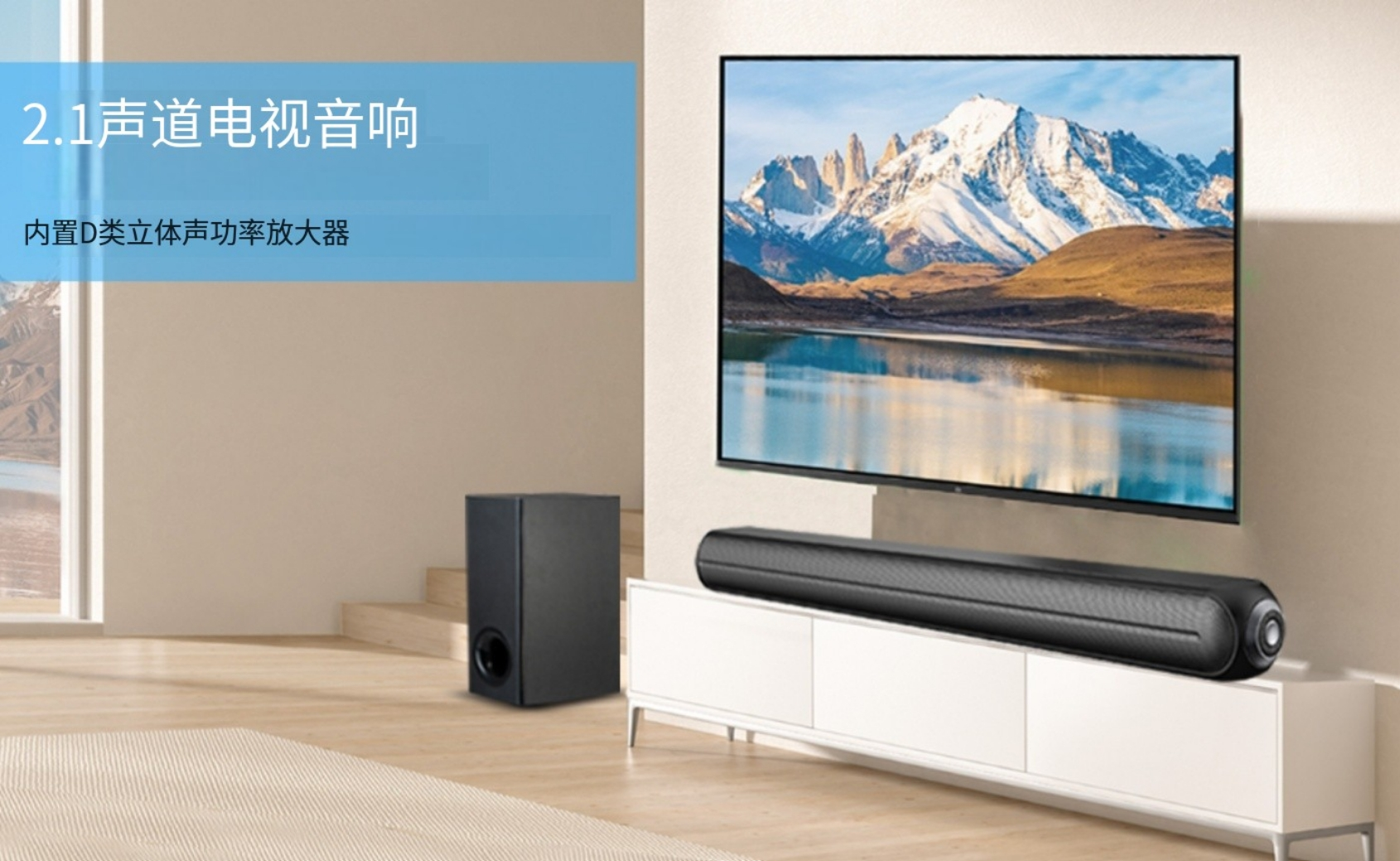 2.1 声道回音壁:120 W 条形音箱配有 4 个 2.5 英寸全频扬声器和一个 5.5 英寸强大的低音炮,可提供比单独电视更好的声音。凭借先进的技术,电视条形音箱可提供电视无法提供的清晰音频。带低音炮的条形音箱可产生强劲的低音和环绕声,让您享受动态的家庭音频体验。将您的客厅变成迷人的家庭影院。