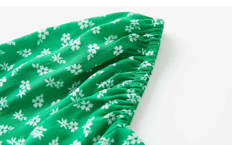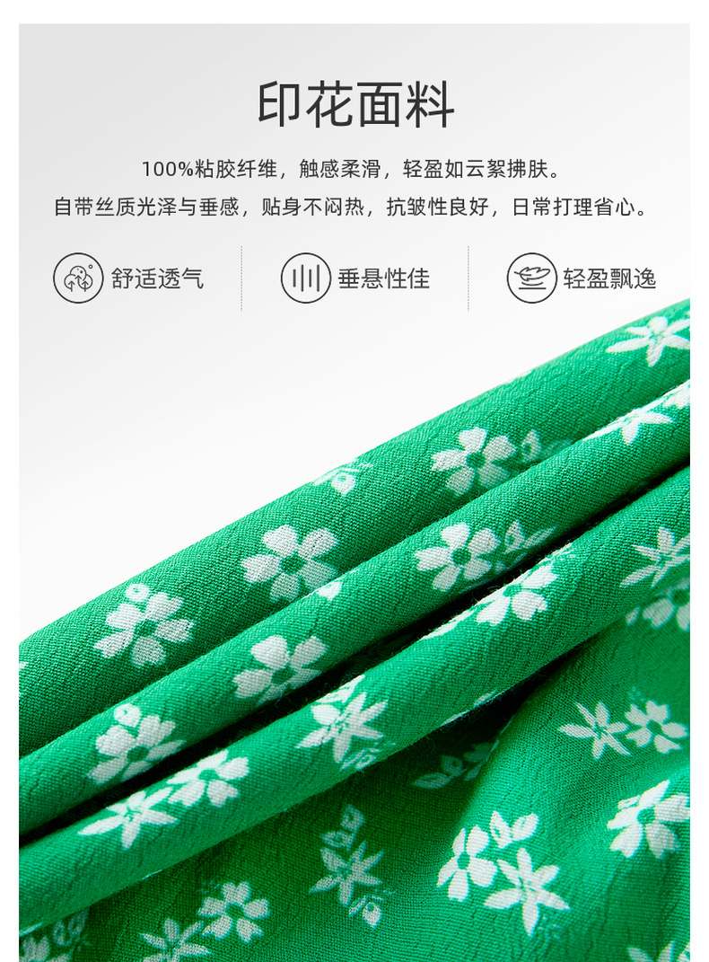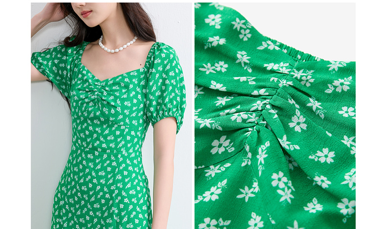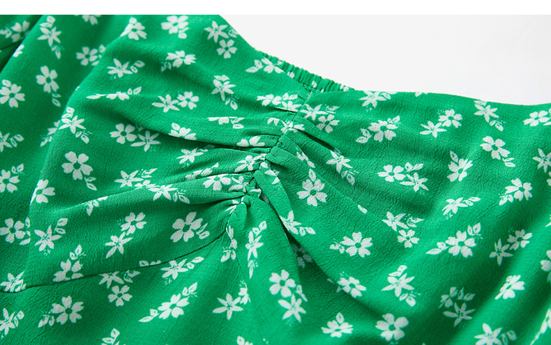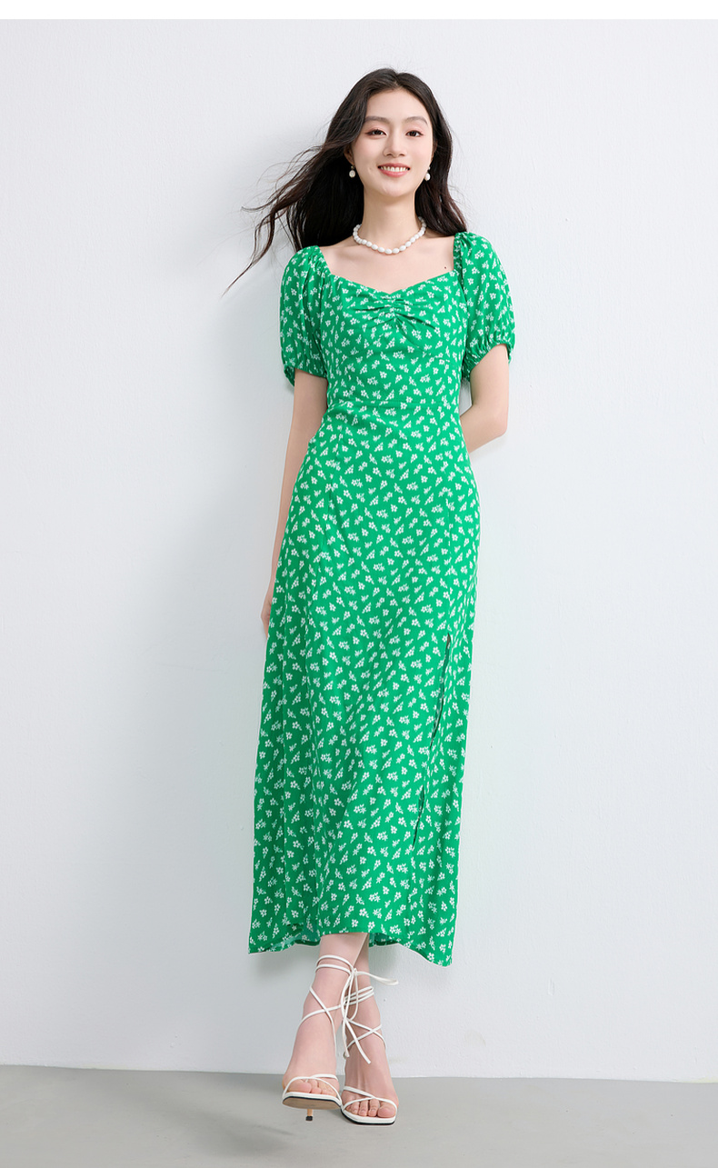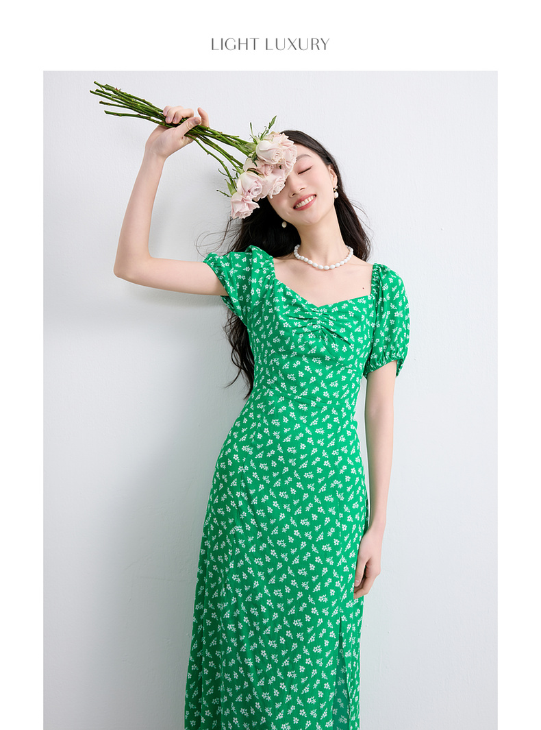 三彩2025夏季新款法式碎花裙收腰A字裙泡泡袖连衣裙浪漫长裙S