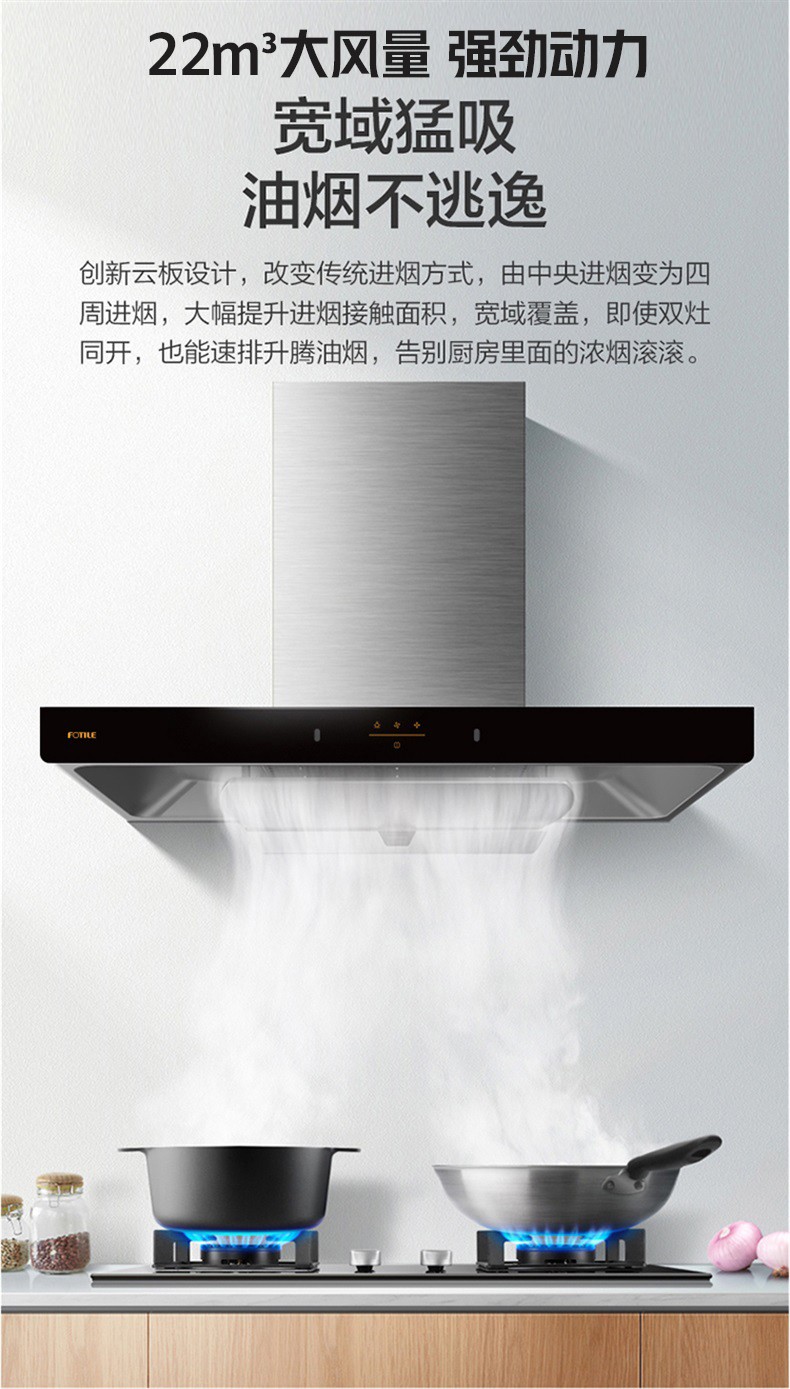 方太(FOTILE)油烟机灶具套装 欧式顶吸抽油烟机燃气灶烟灶套装 家用22大风量一键瞬吸挥手智控5A云魔方EMC2A 22大风量+4.5kW猛火TH31B【烟灶两件套】 天然气/液化气备注