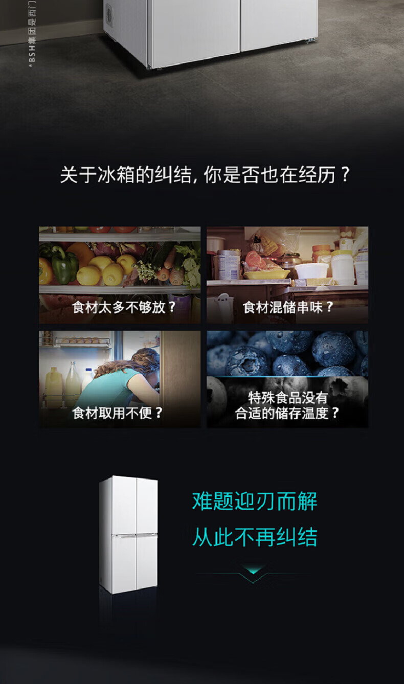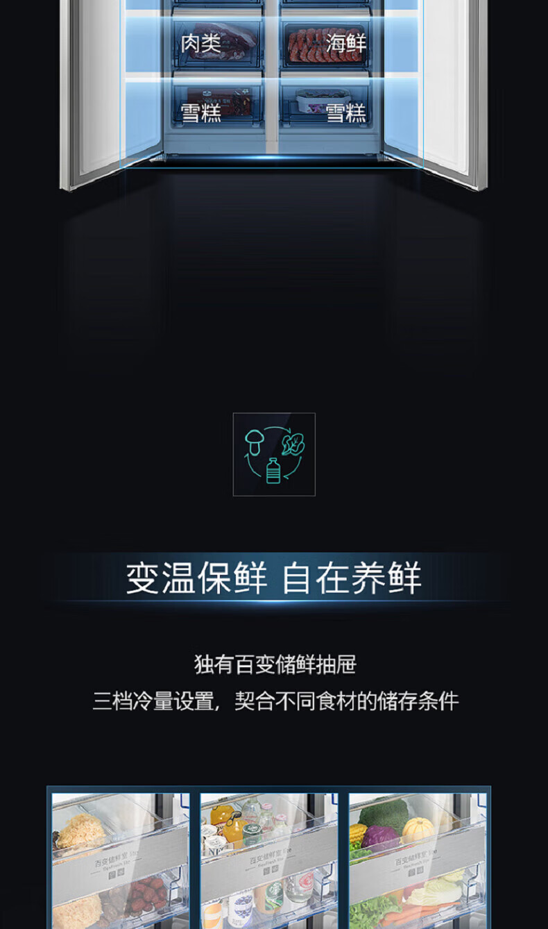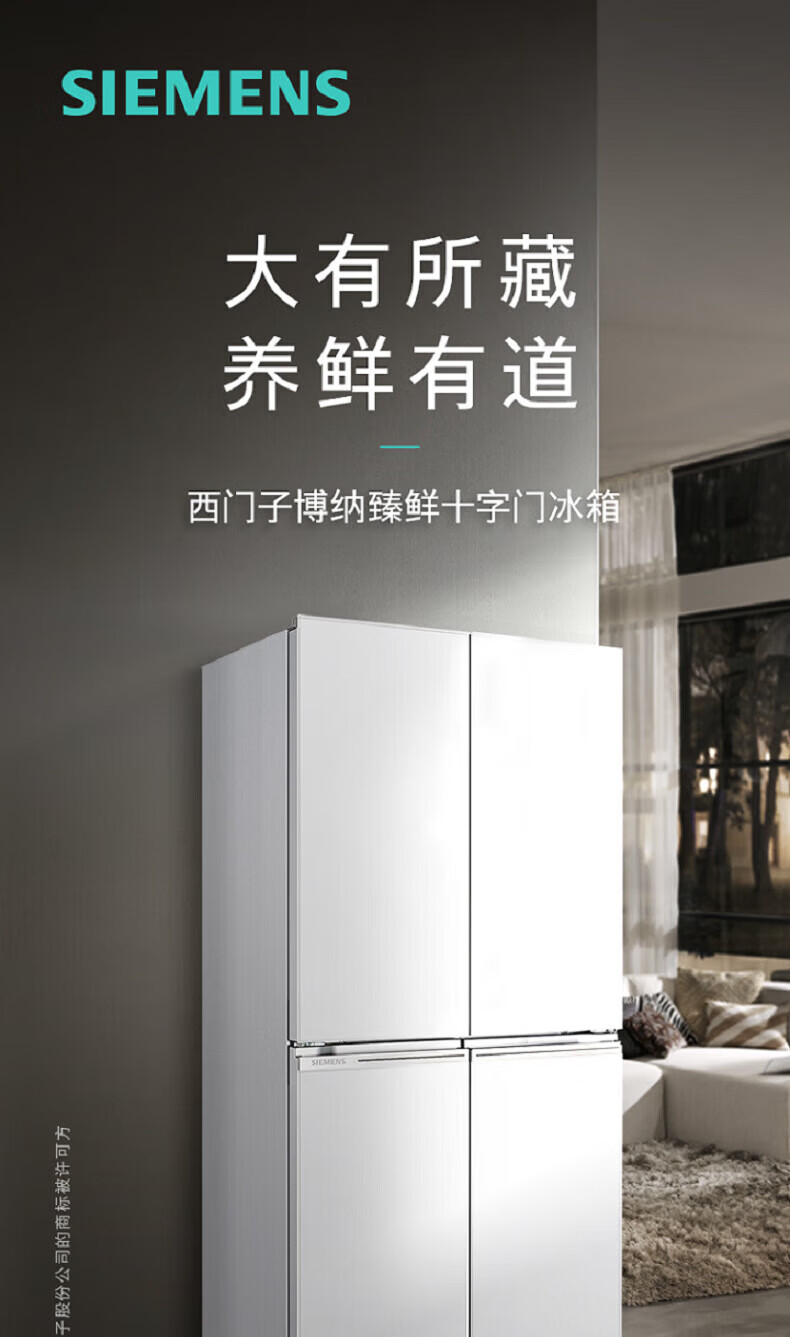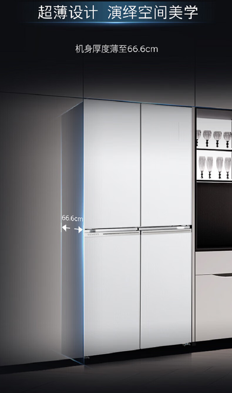 西门子/冰箱/KC82EA920C/550升大容量十字门超薄可嵌入冰箱 铂金抗菌净味分区精储变温保鲜 白色玻璃面板
