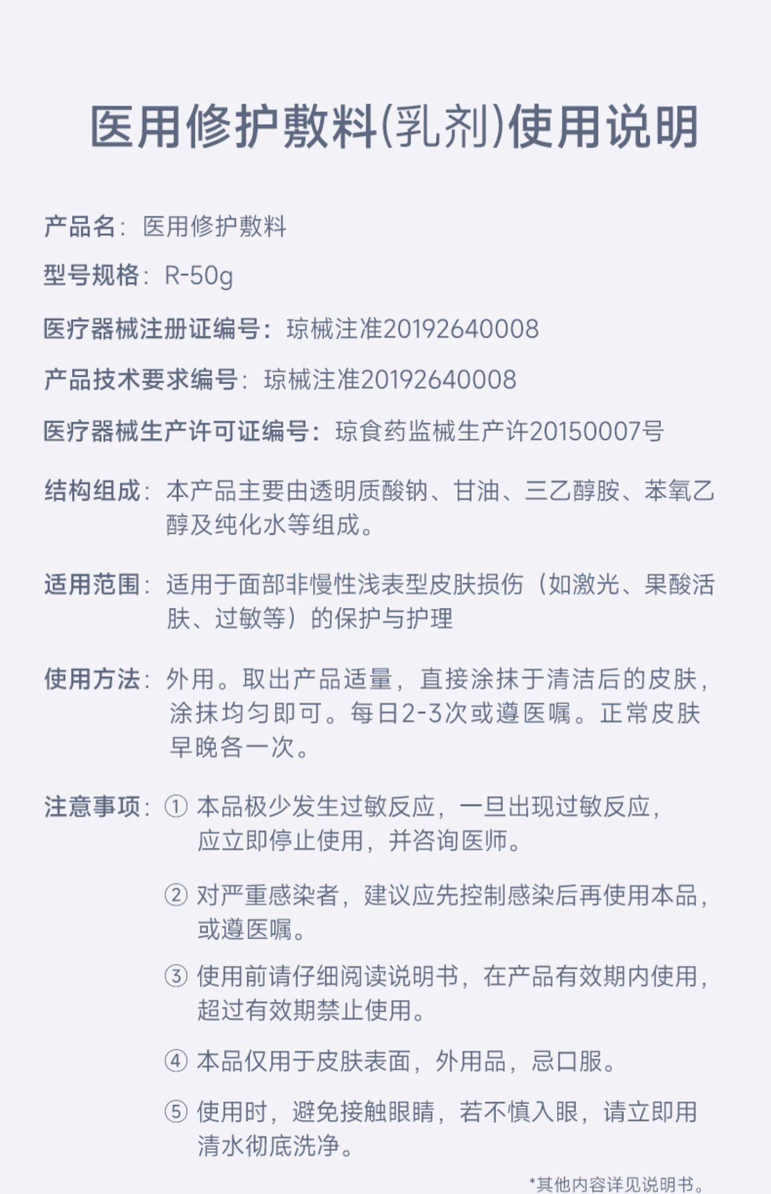 绽妍医用修护敷料(保湿乳) R-50g/盒
