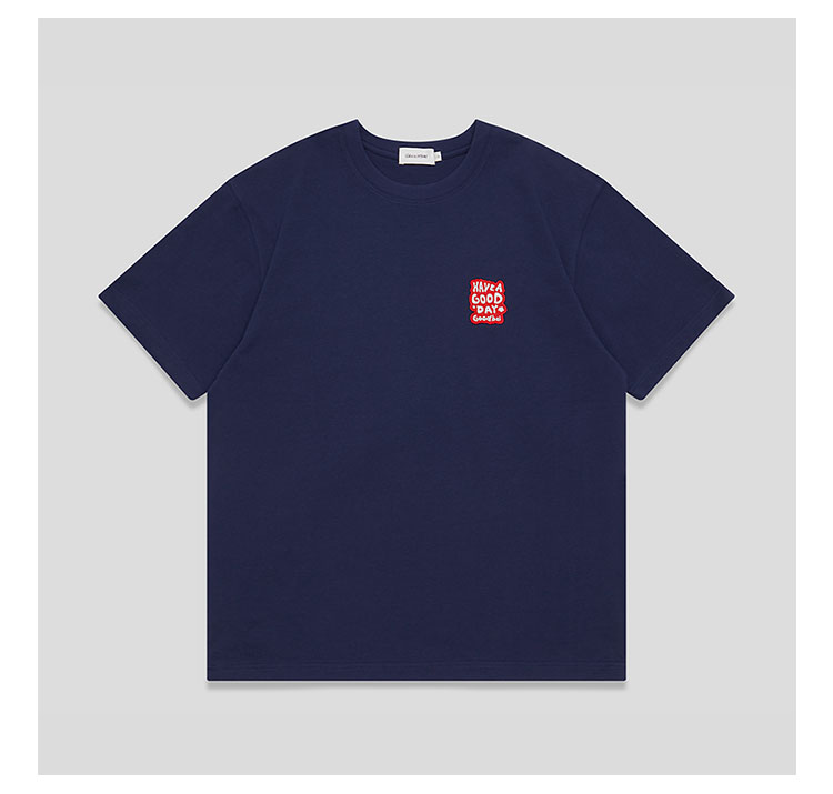GOODBAI Have a good day刺绣撞色短袖T恤
