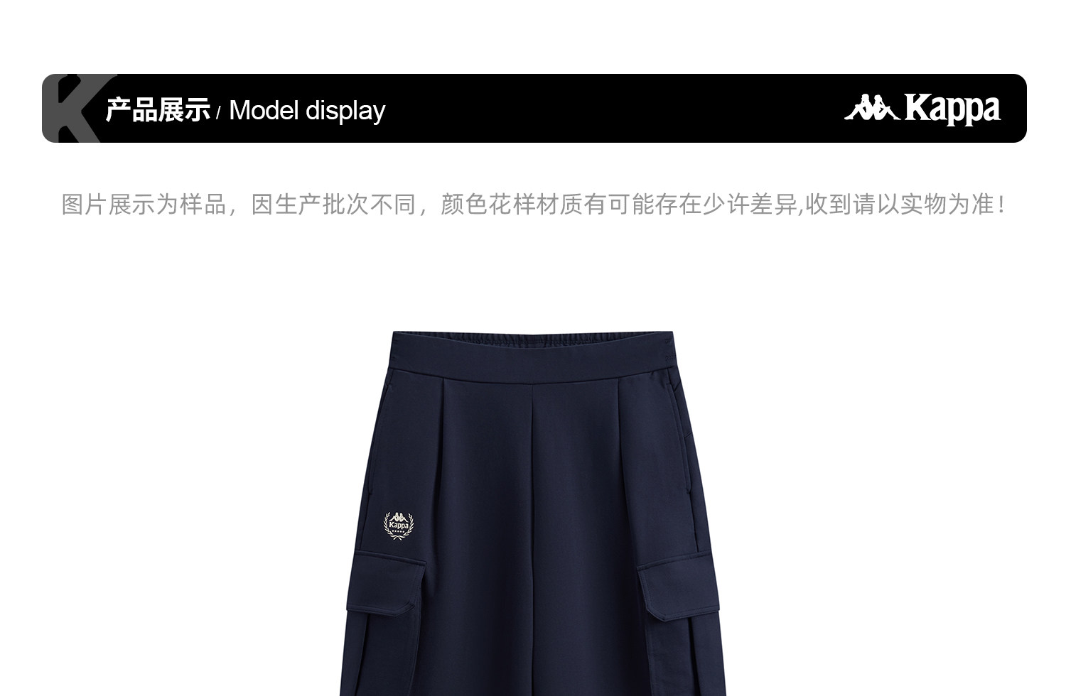 Kappa 运动工装抽绳阔腿裤女新款休闲裤子直筒裤长裤女K0G22AK01