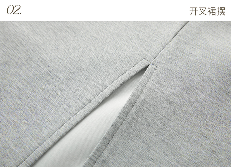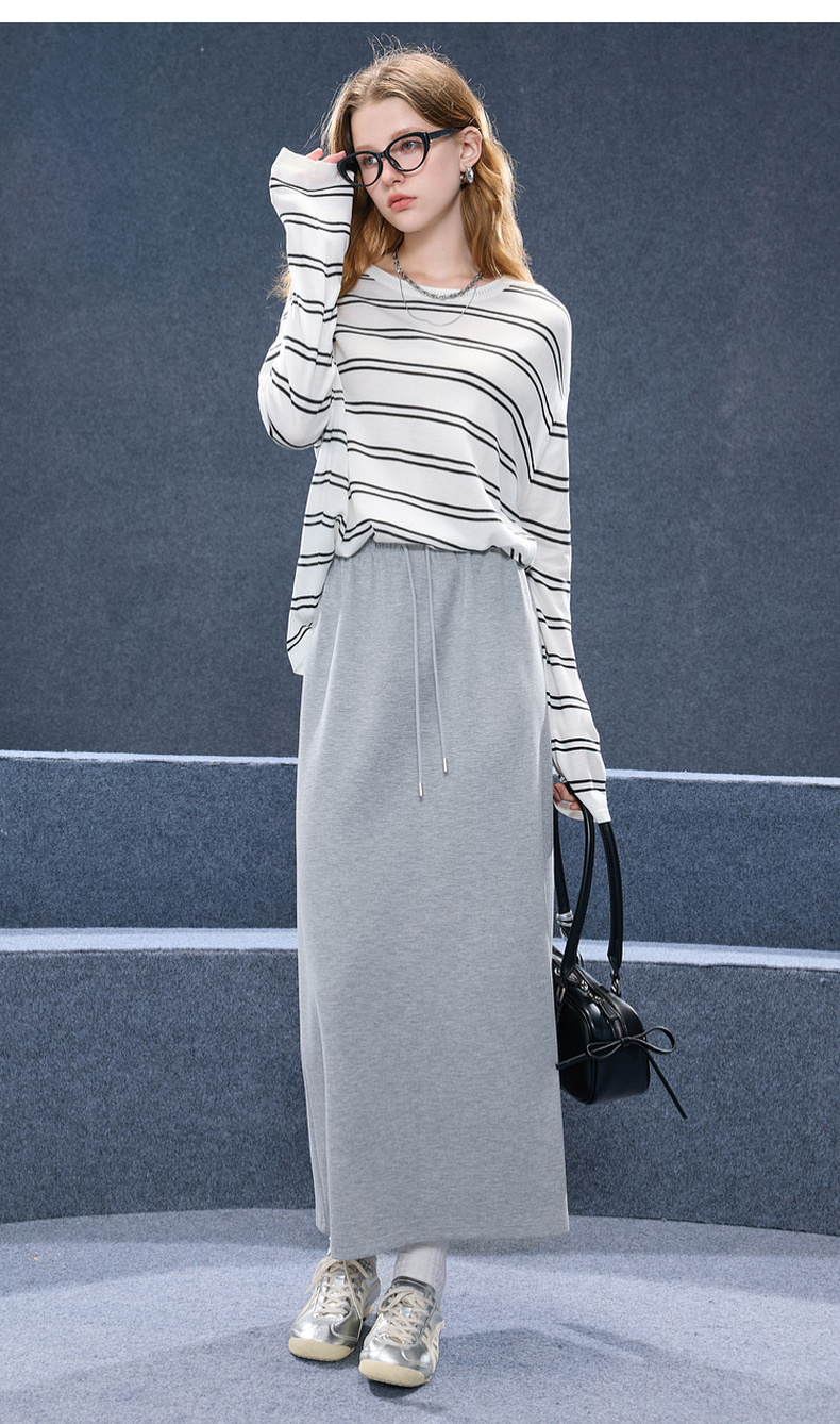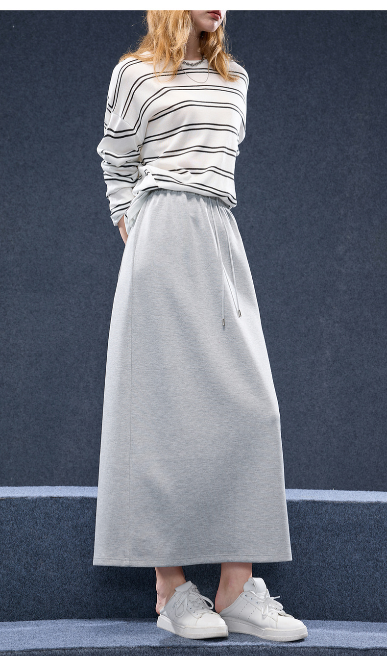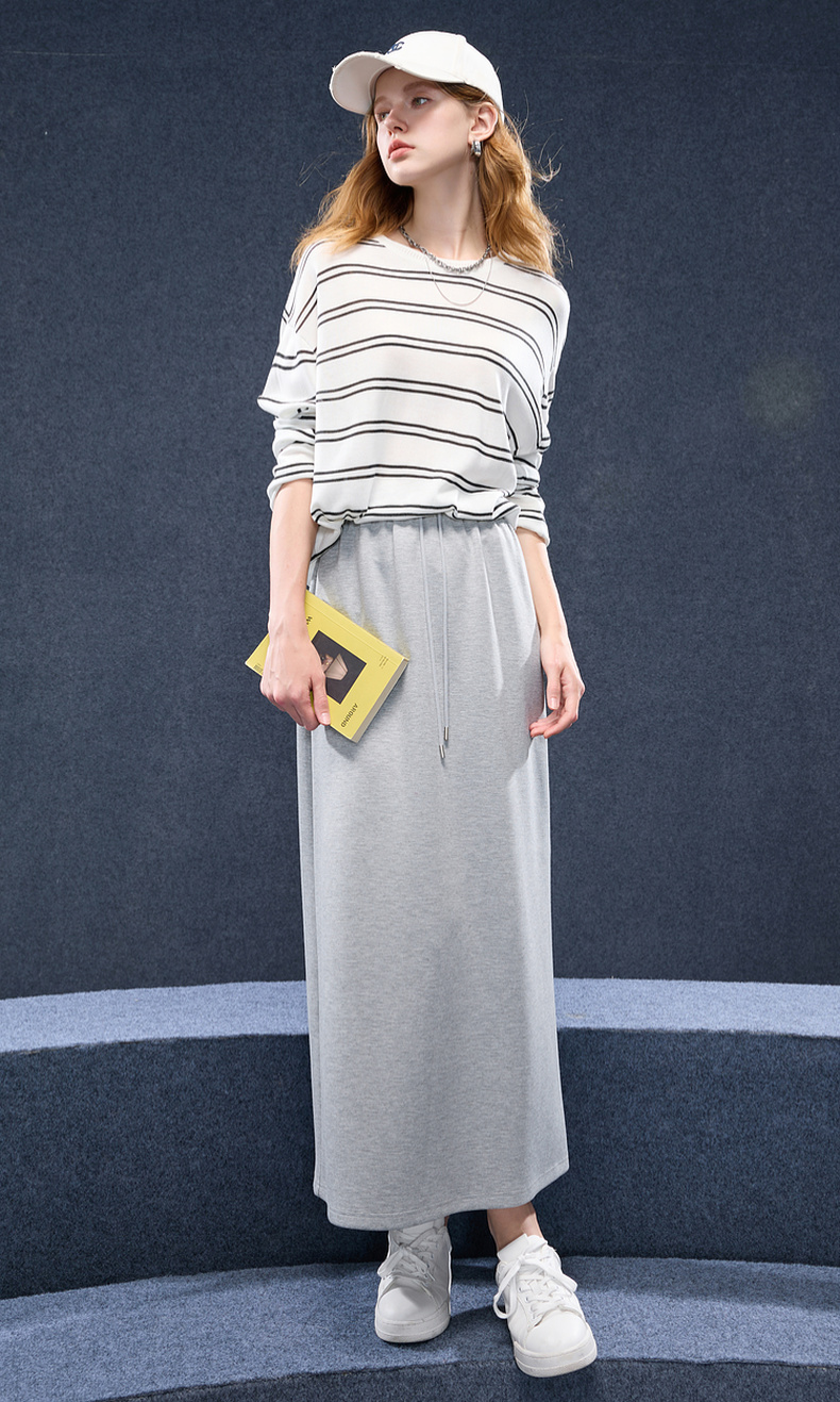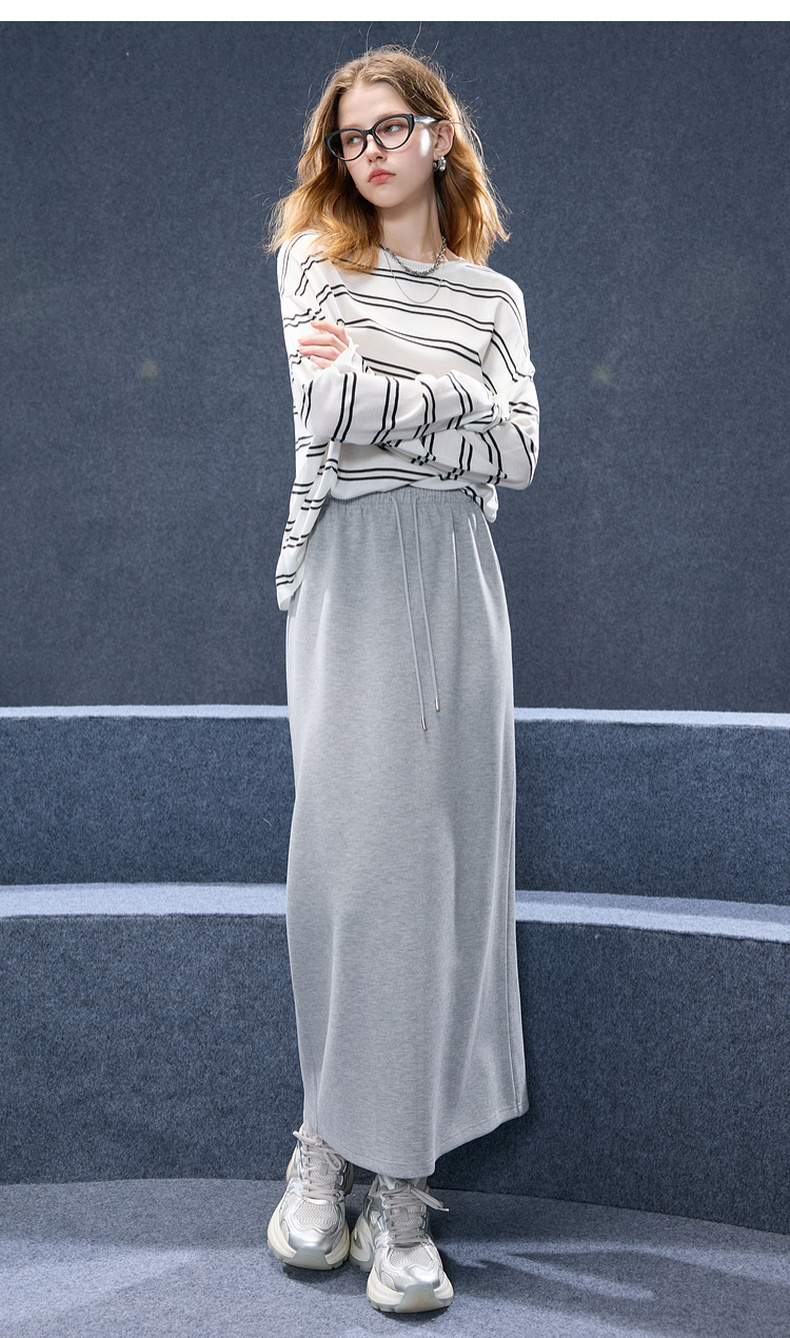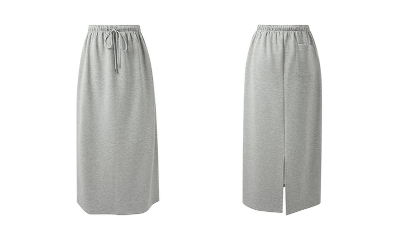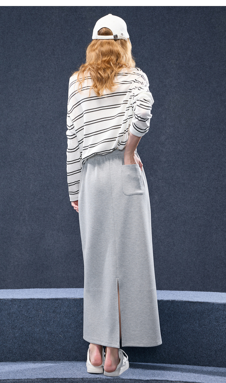三彩2025秋季新款松紧腰休闲半身裙长裙开叉直筒裙灰色M