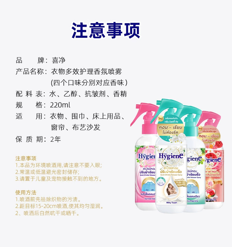 Hygiene喜净进口香氛除皱喷雾220ml衣物留香除臭去异味防静电_dr