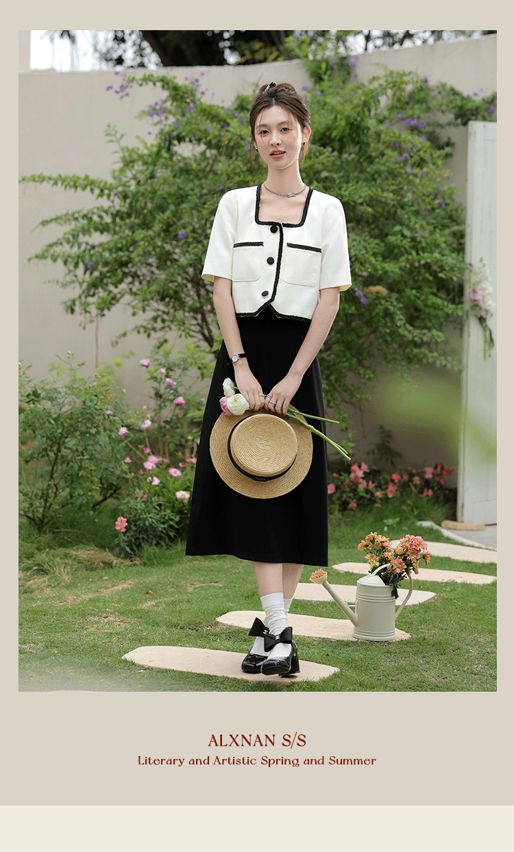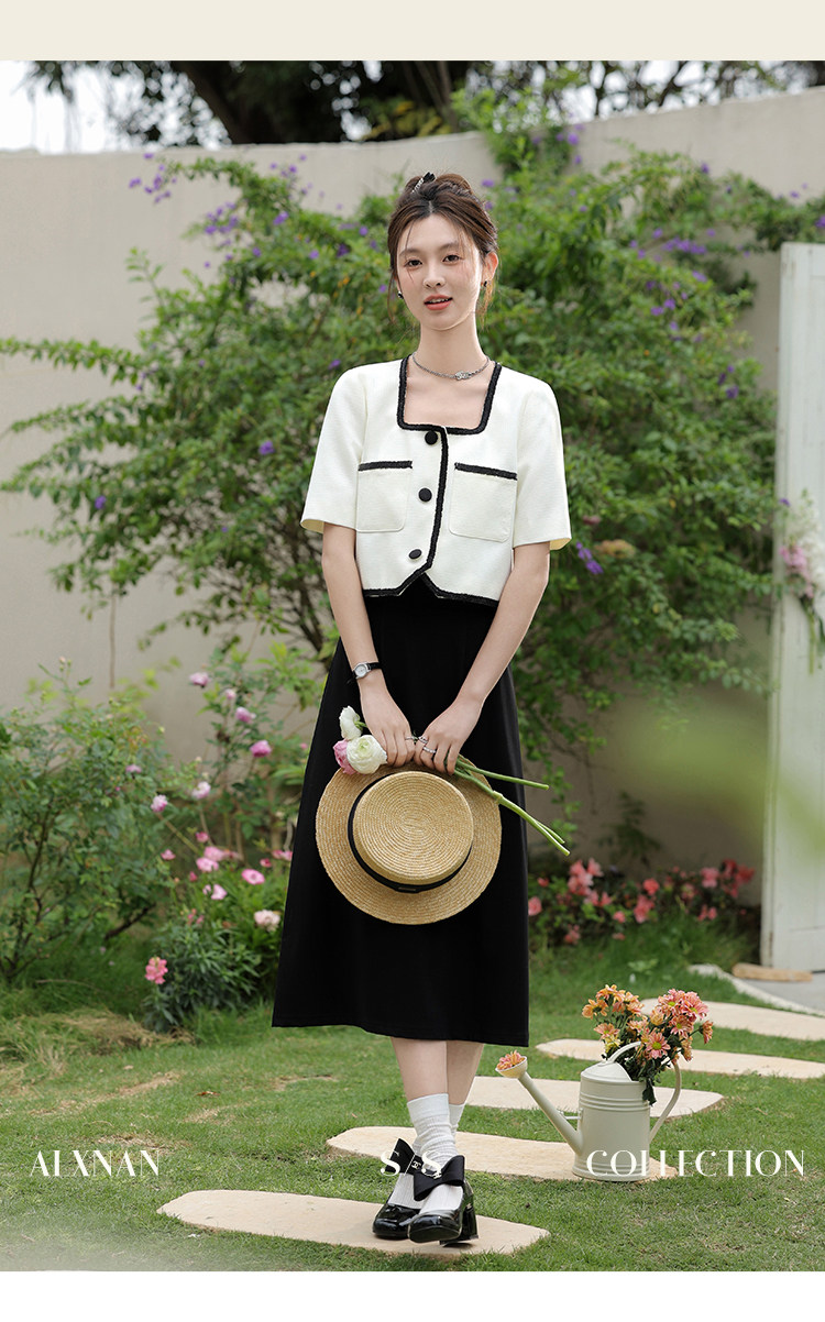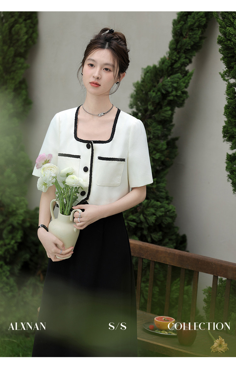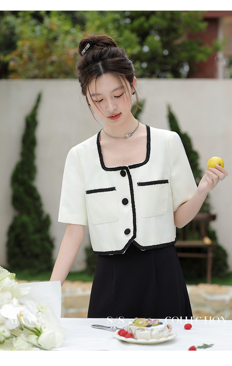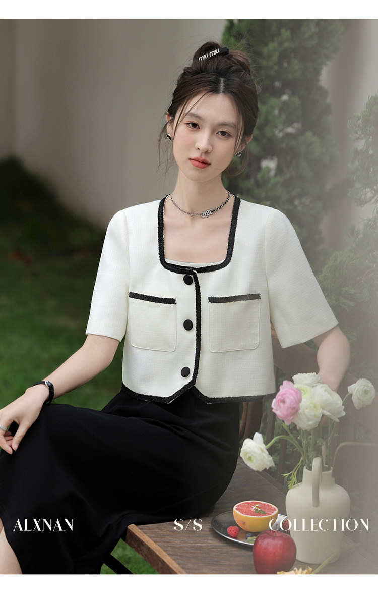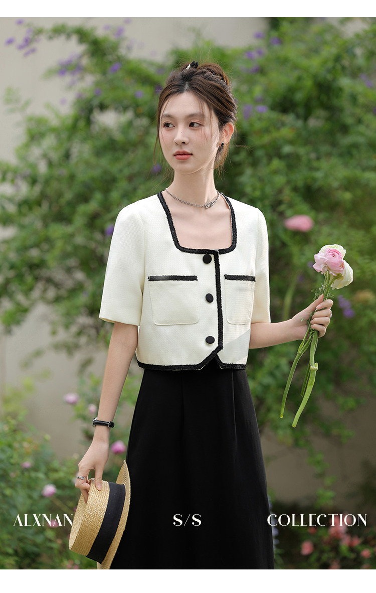鹿向南「优雅时光」白色法式小香风短款外套女春夏休闲短袖上衣