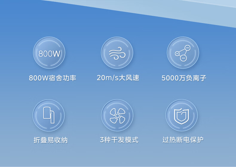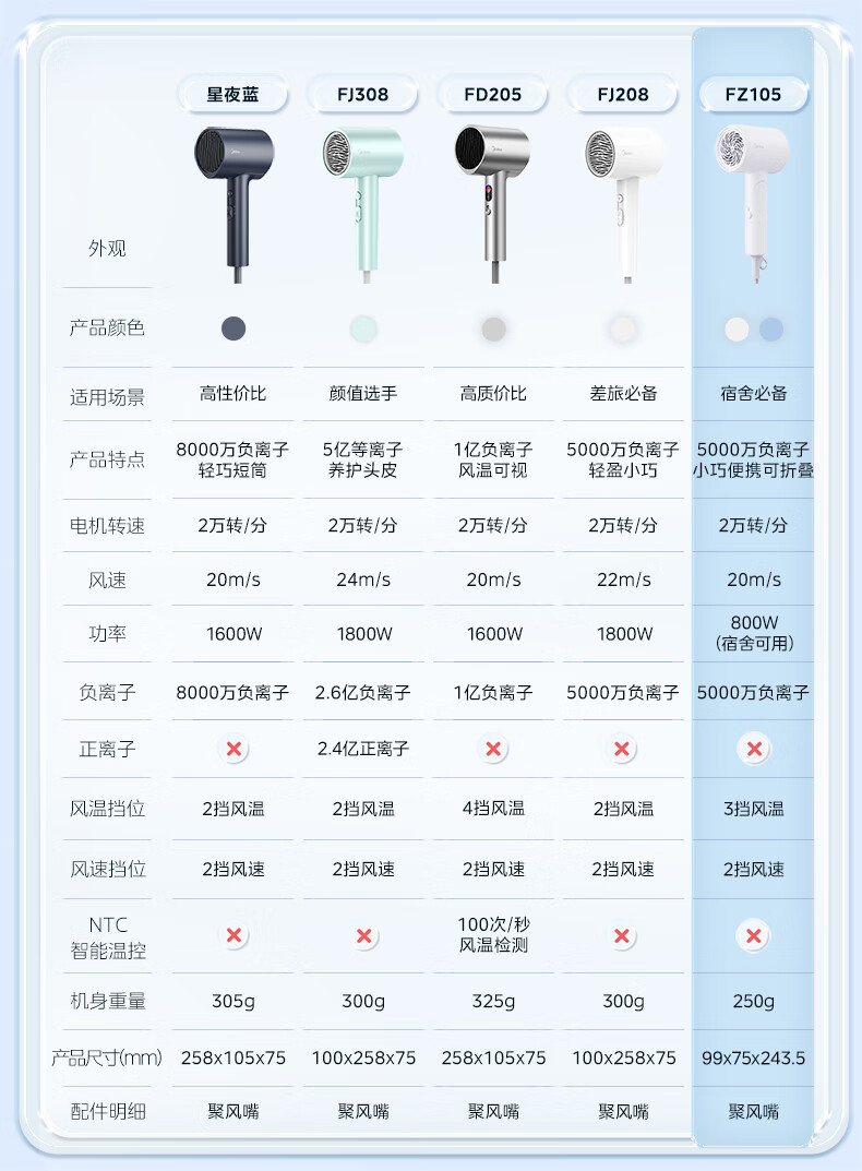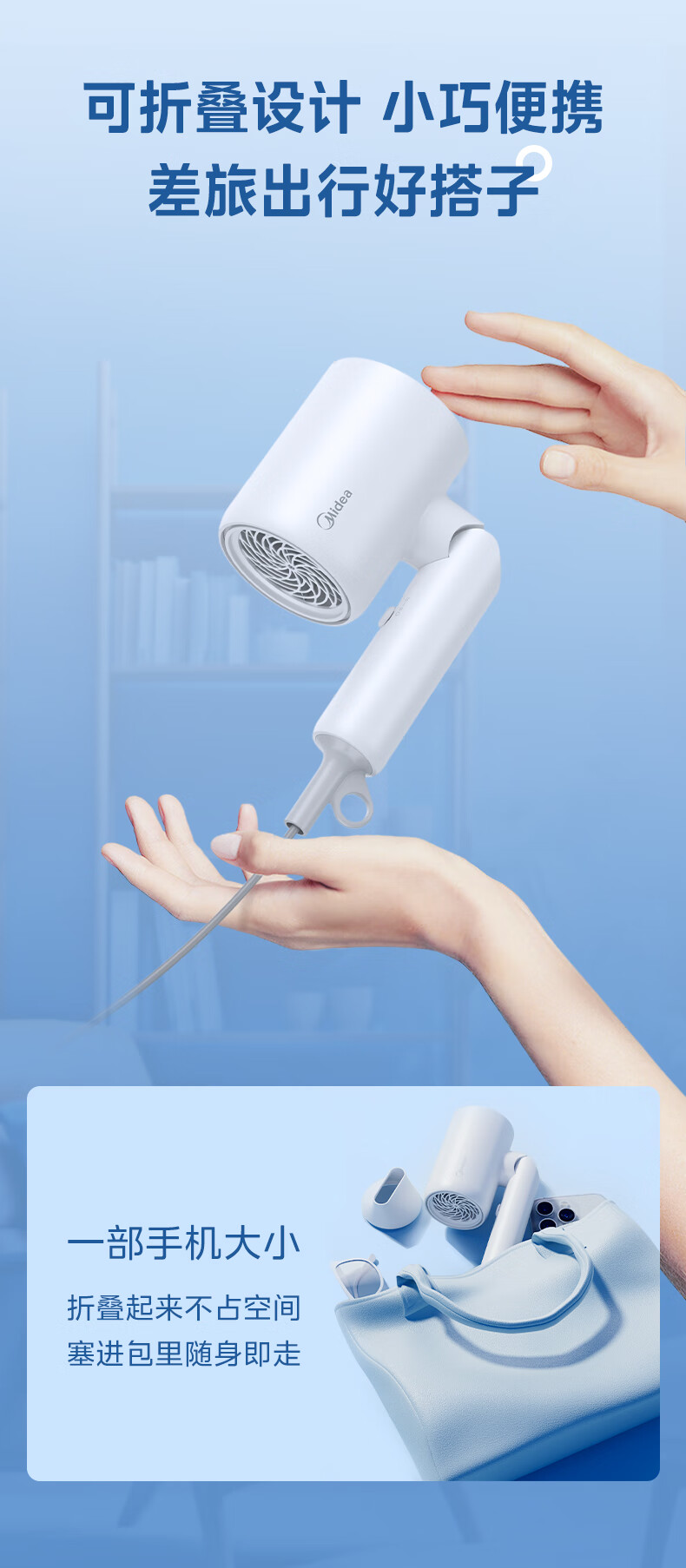 美的(Midea)五千万负离子护发电吹风/学生吹风筒/可折叠吹风机FZ105 800W