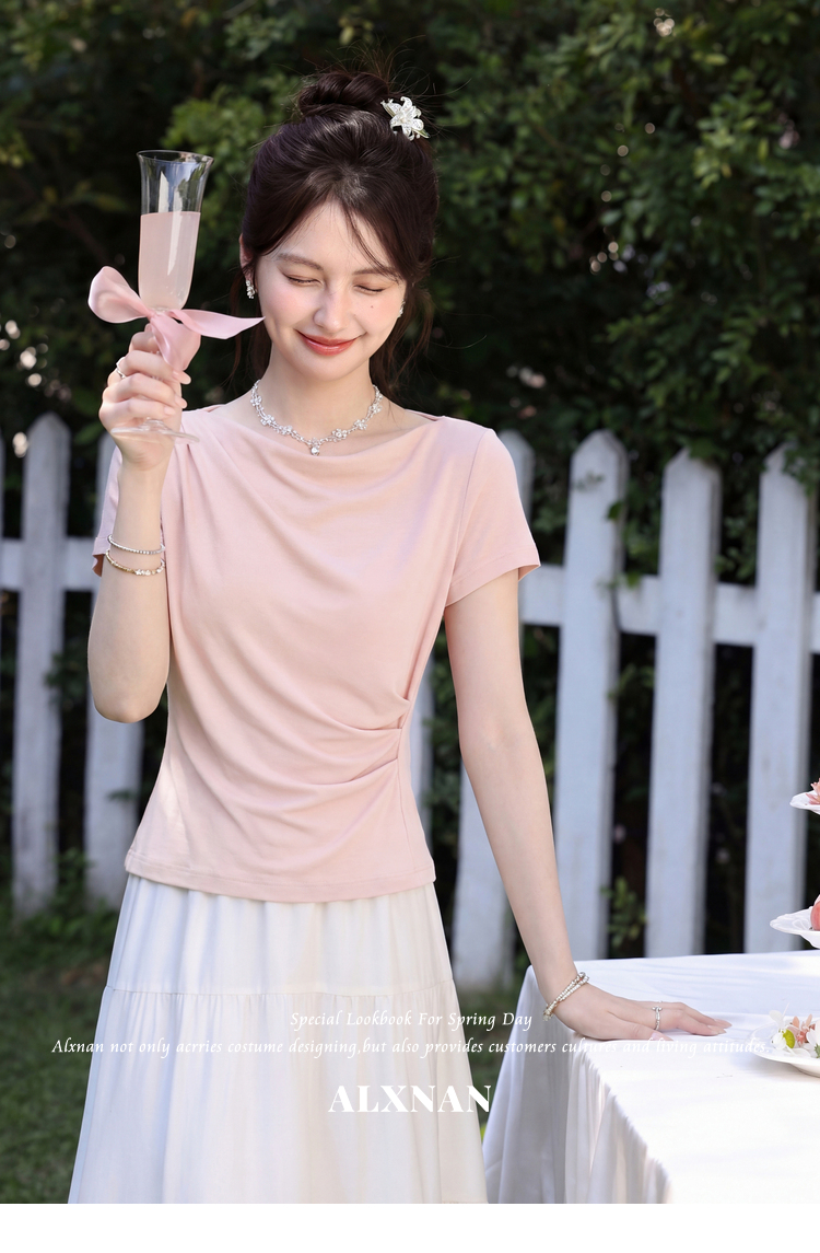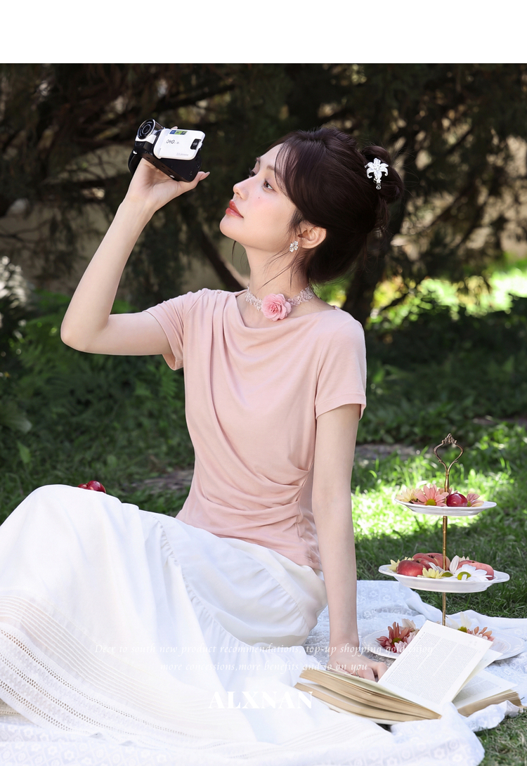 鹿向南【0405/20:00新品】粉色收腰短袖T恤