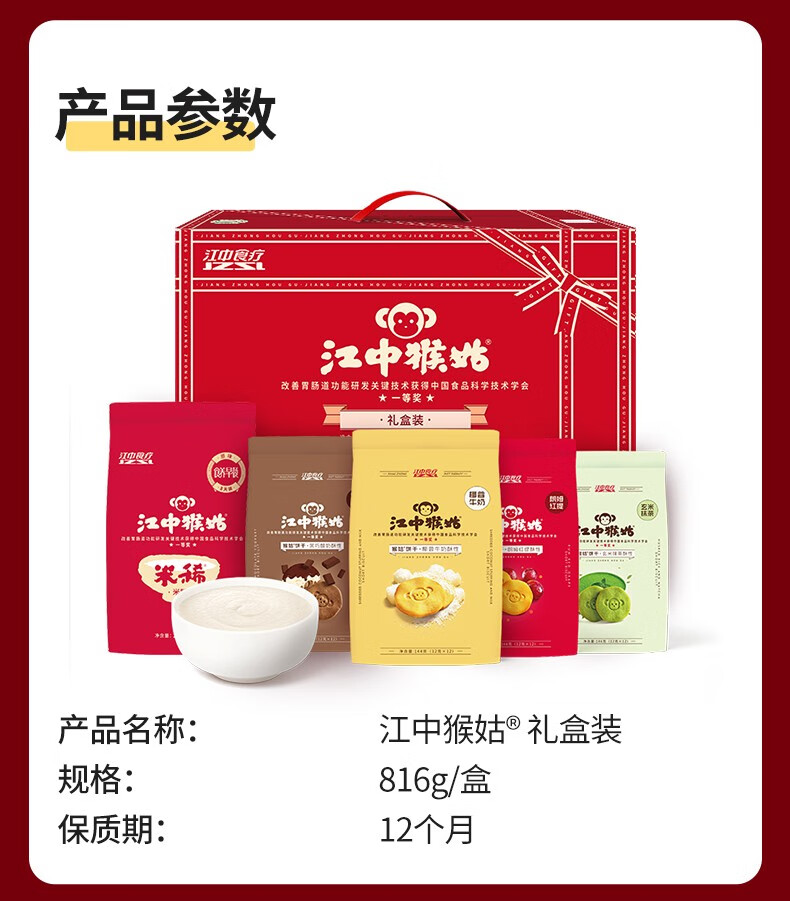 江中猴姑米稀米糊饼干养胃礼盒装816g