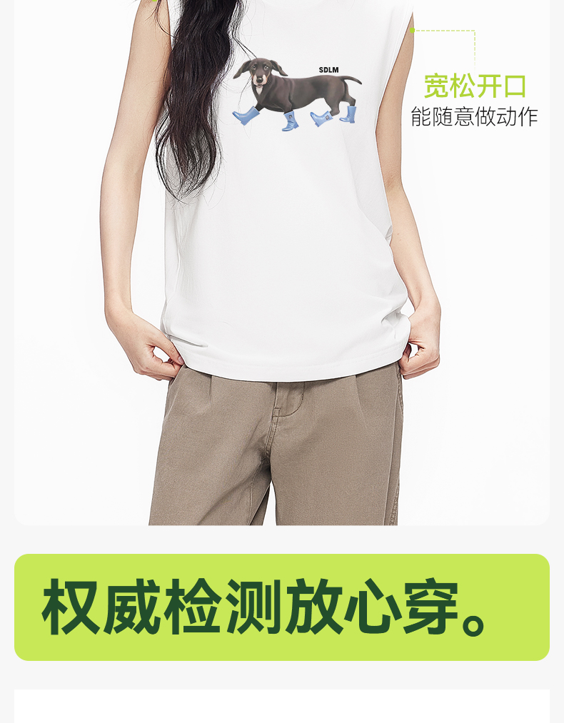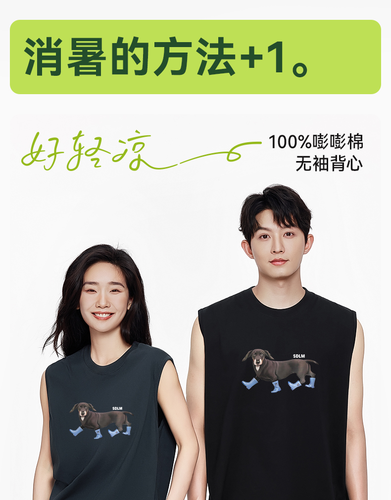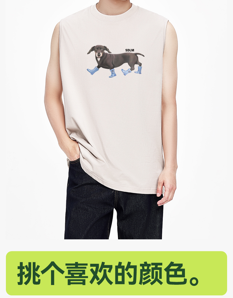 「棉的美学」中性纯棉坎肩背心小狗印花款夏季透气宽松无袖T恤
