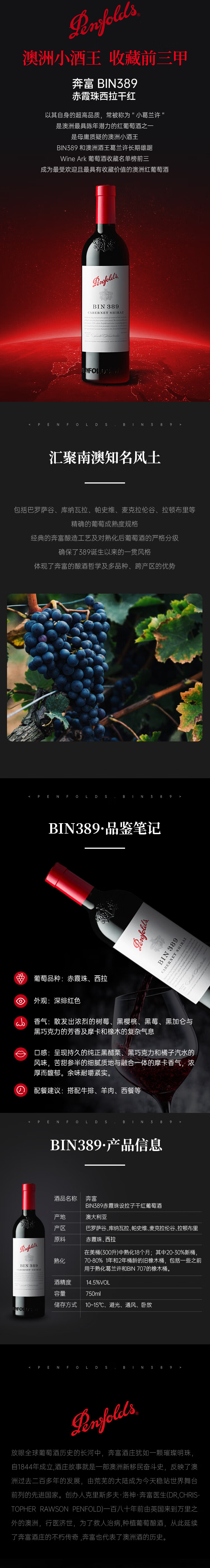 奔富BIN389赤霞珠西拉干红葡萄酒 750ml 澳大利亚原瓶进口