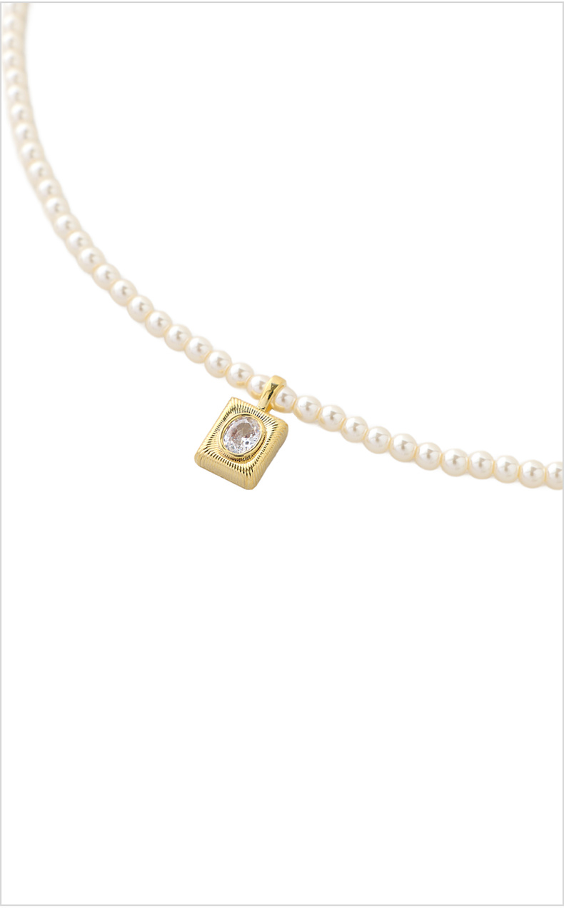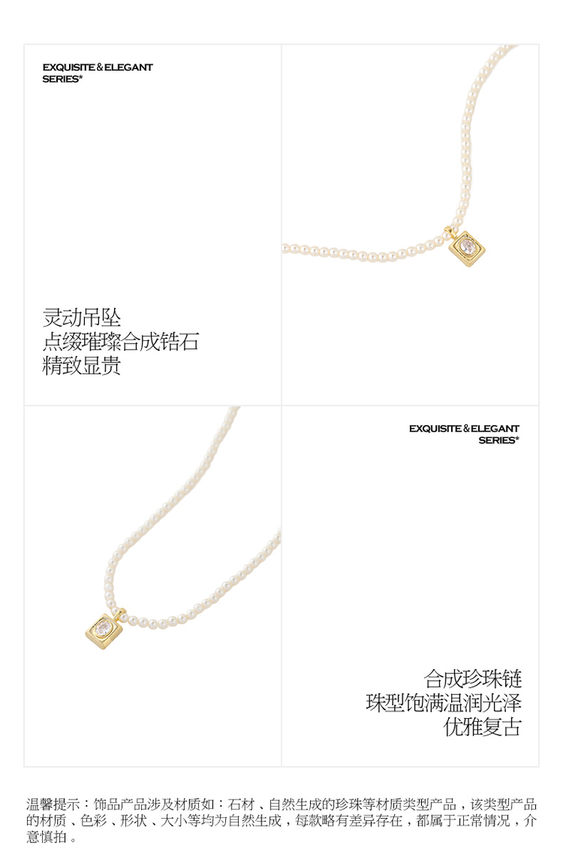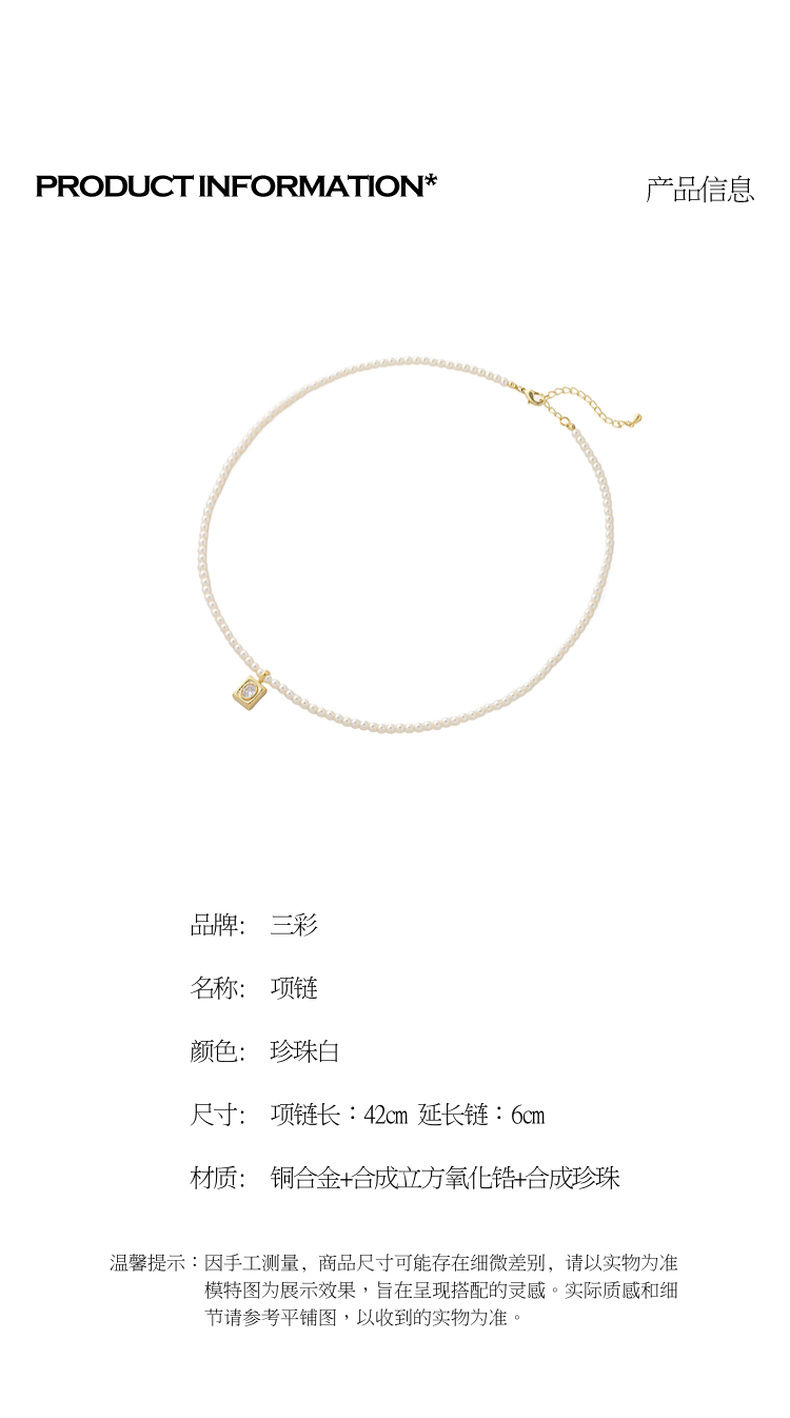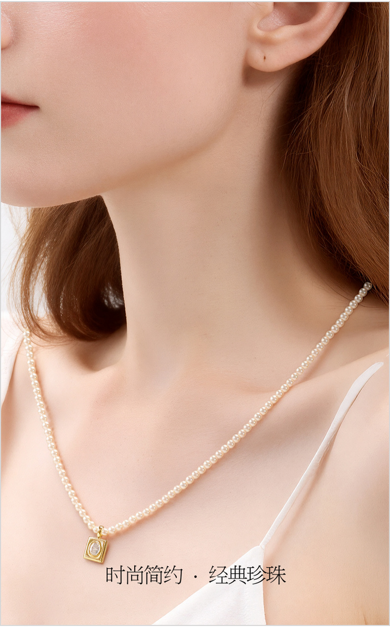 三彩2026新款镀金方形锆饰吊坠珍珠项链闪耀轻奢通勤约会锁骨链女