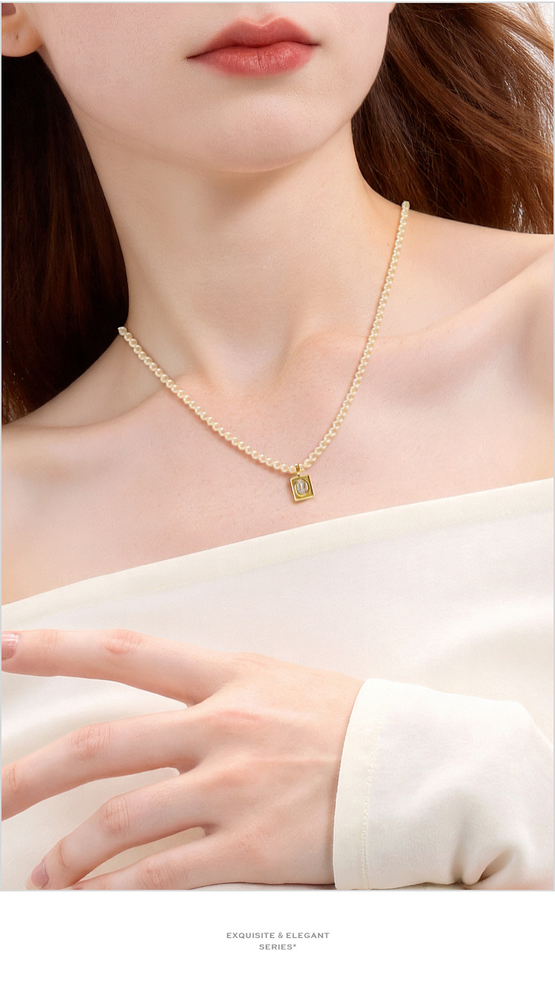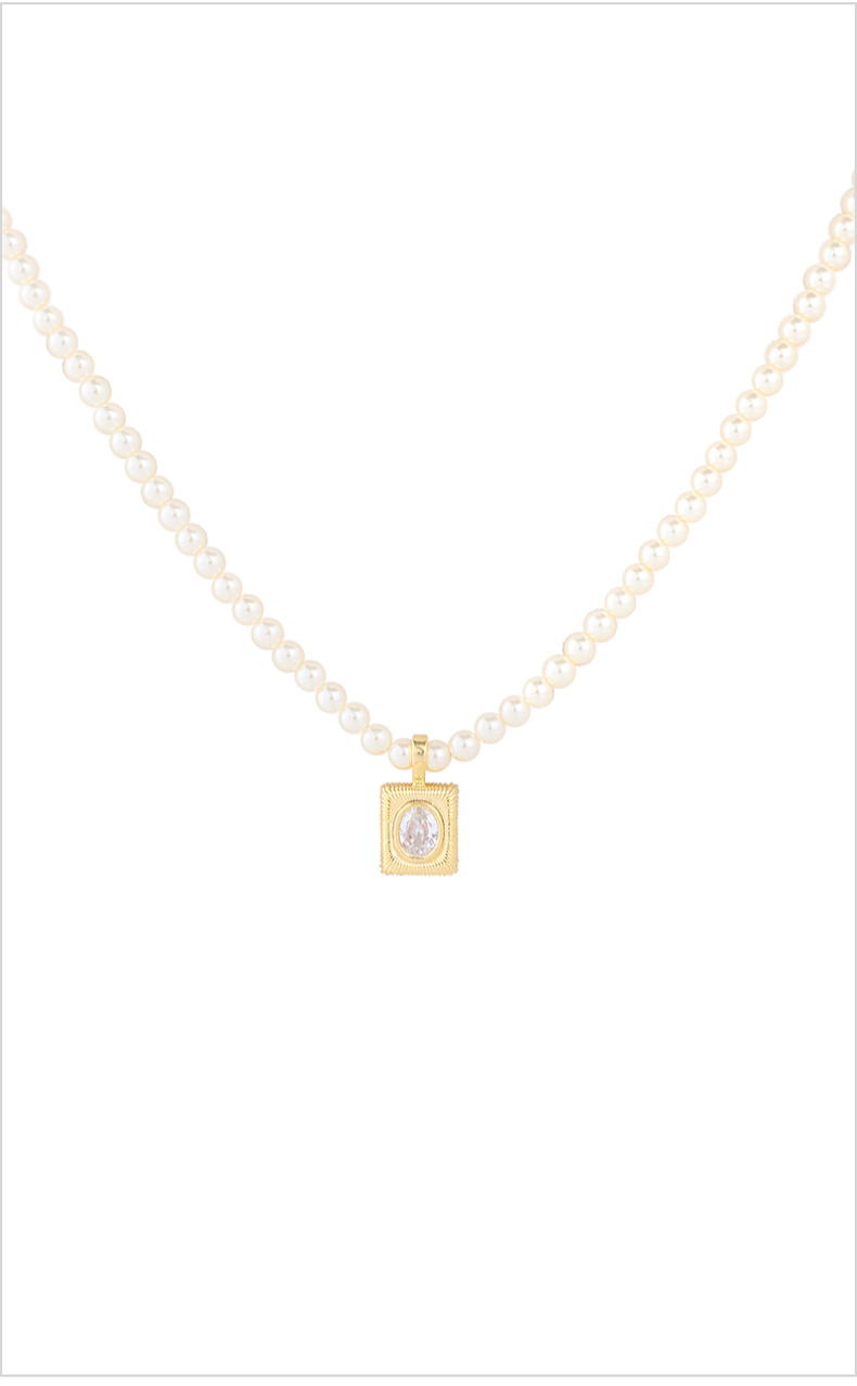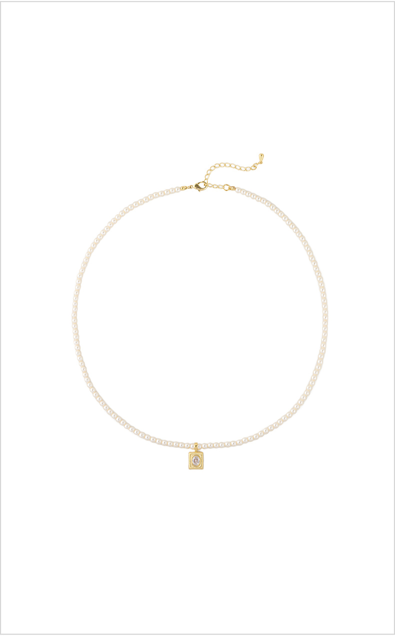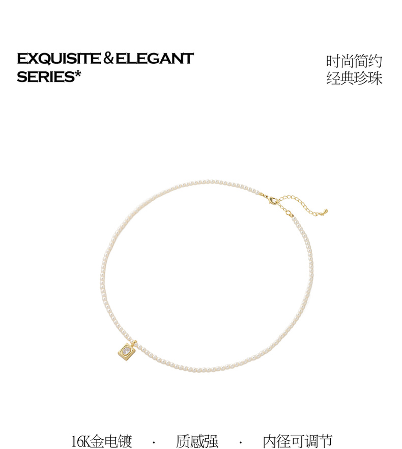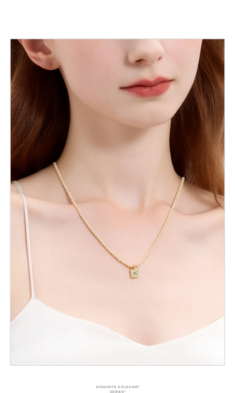 三彩2026新款镀金方形锆饰吊坠珍珠项链闪耀轻奢通勤约会锁骨链女