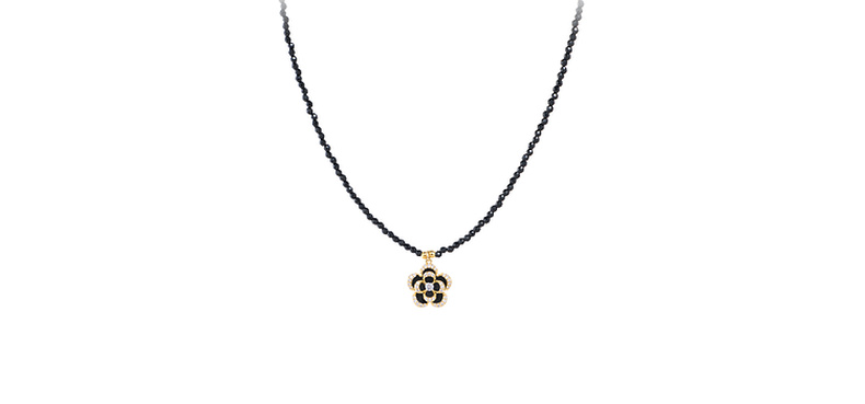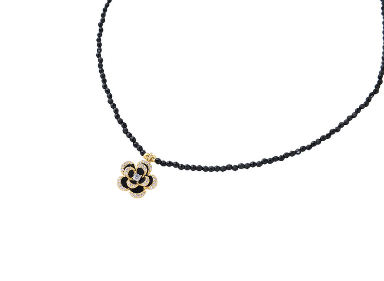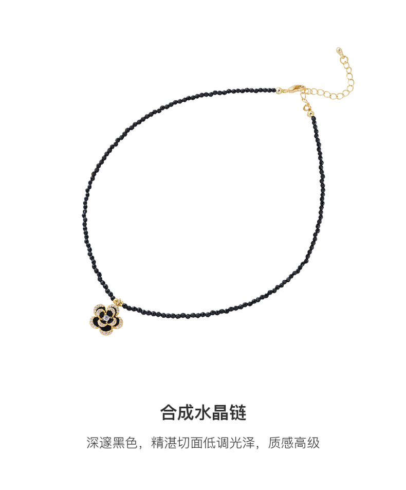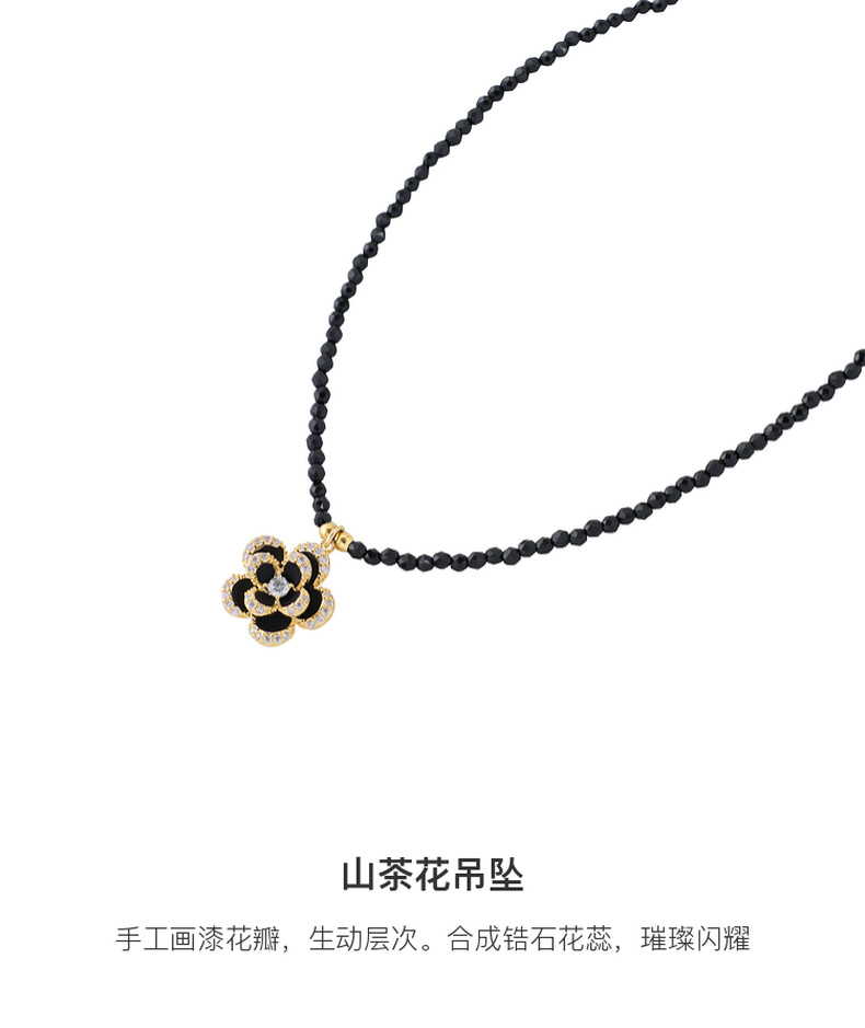 三彩2026新款法式复古轻奢锆石山茶花项链黑金优雅水晶链质感约会
