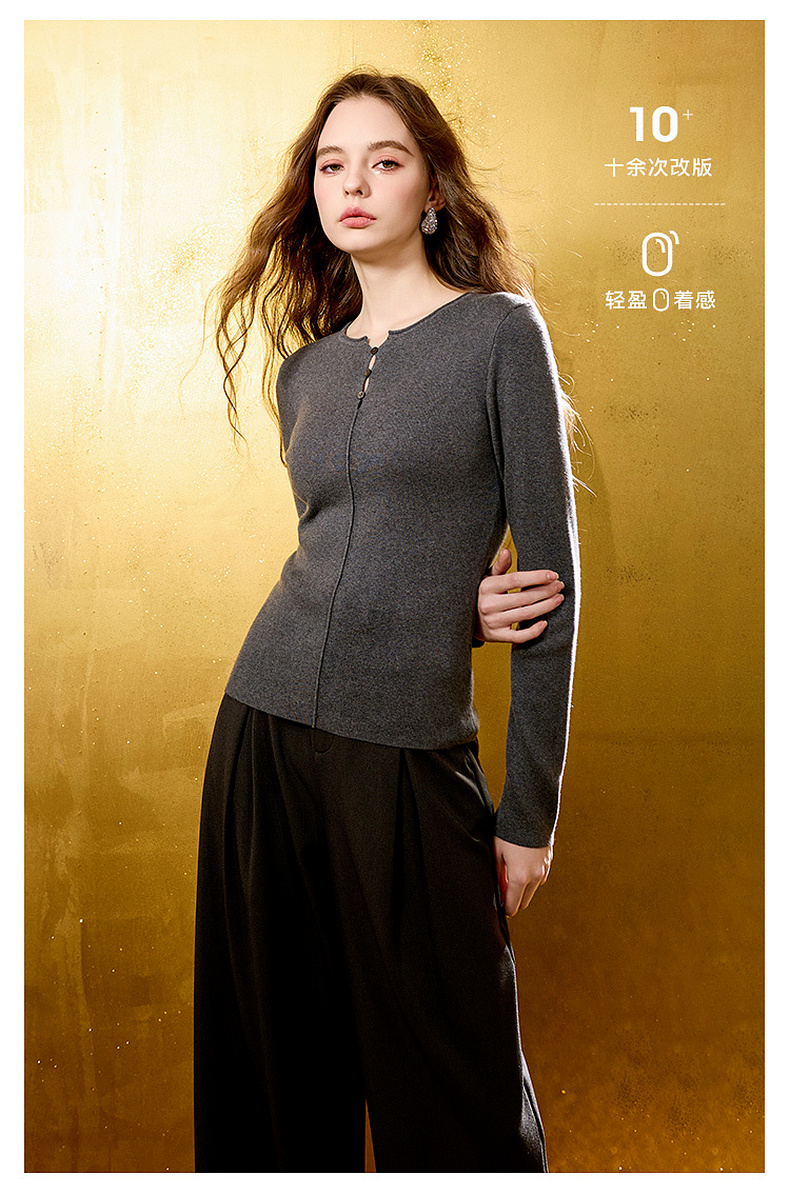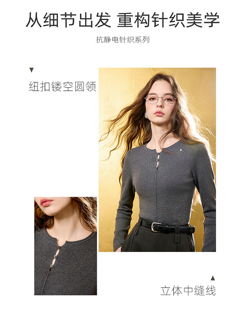 【抗静电】三彩2025冬季新款圆领长袖针织衫修身套头毛衫打底衫M