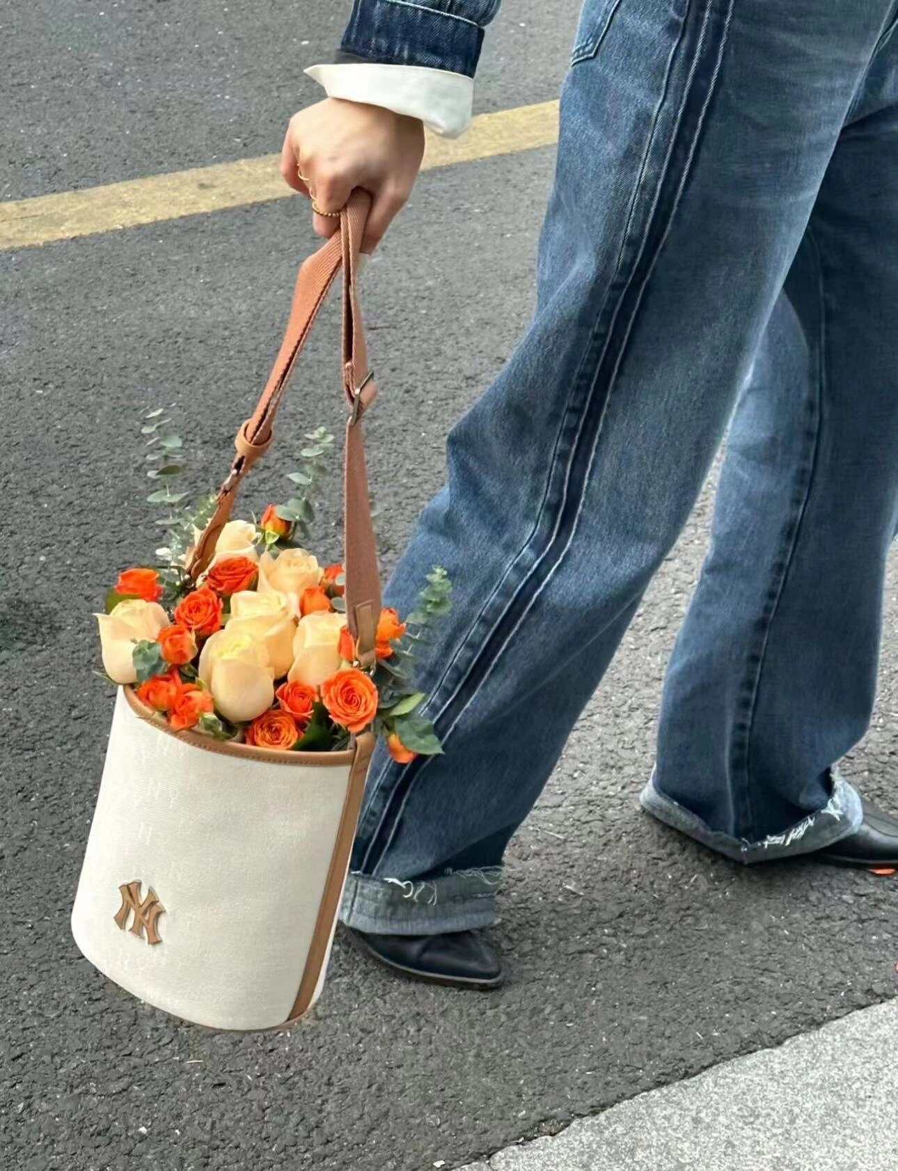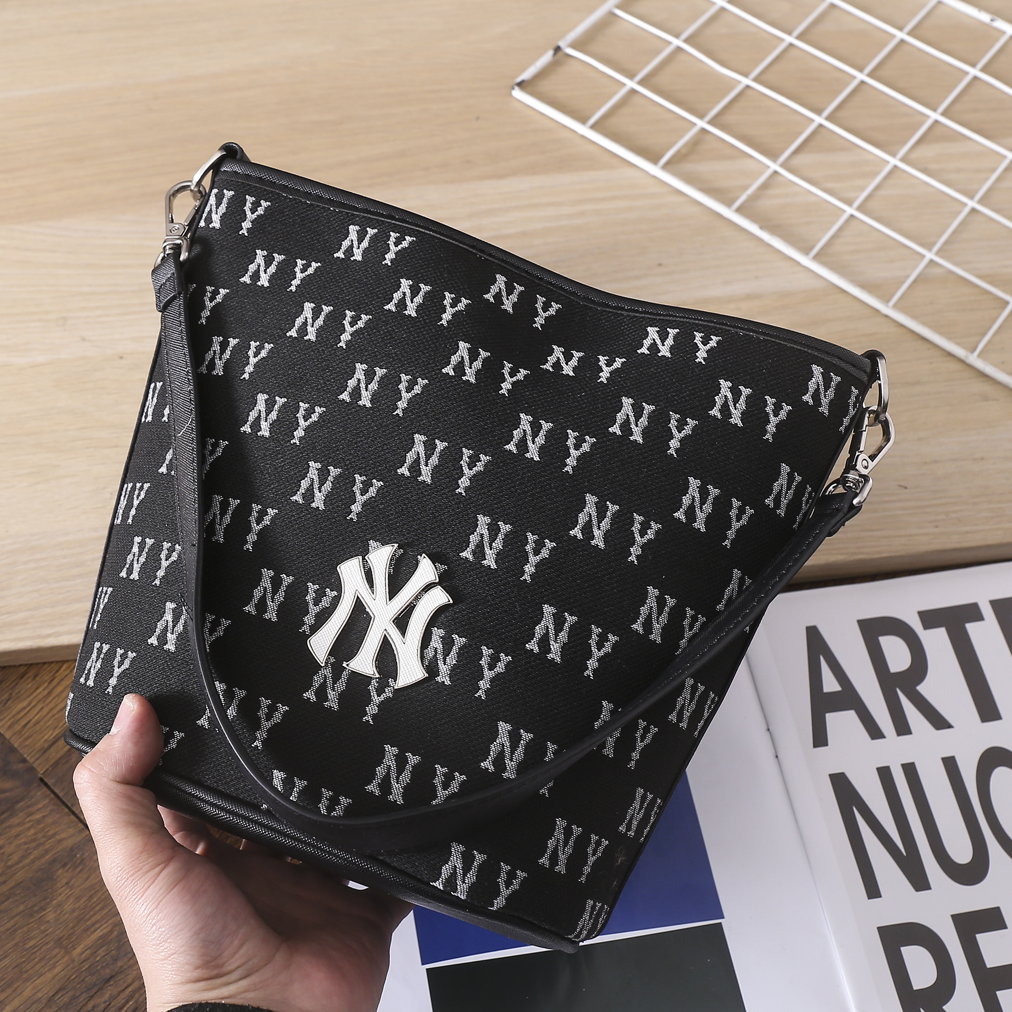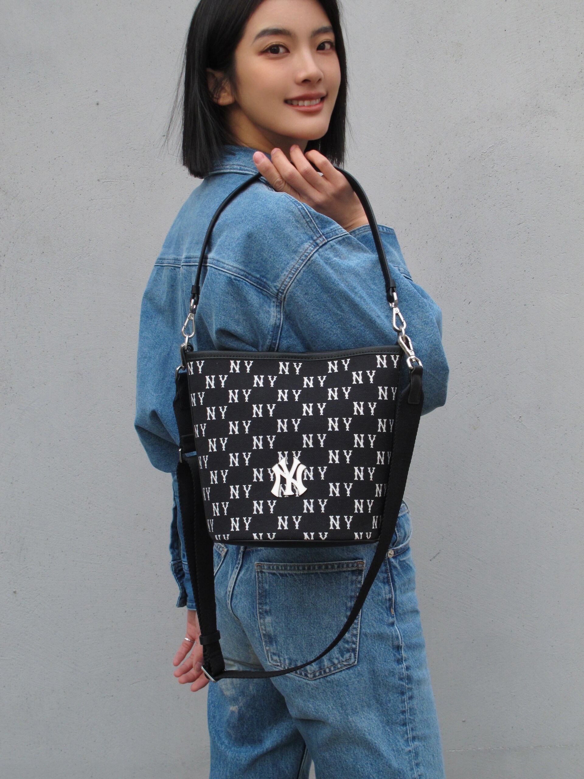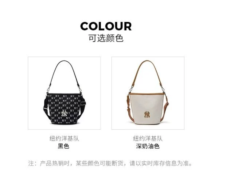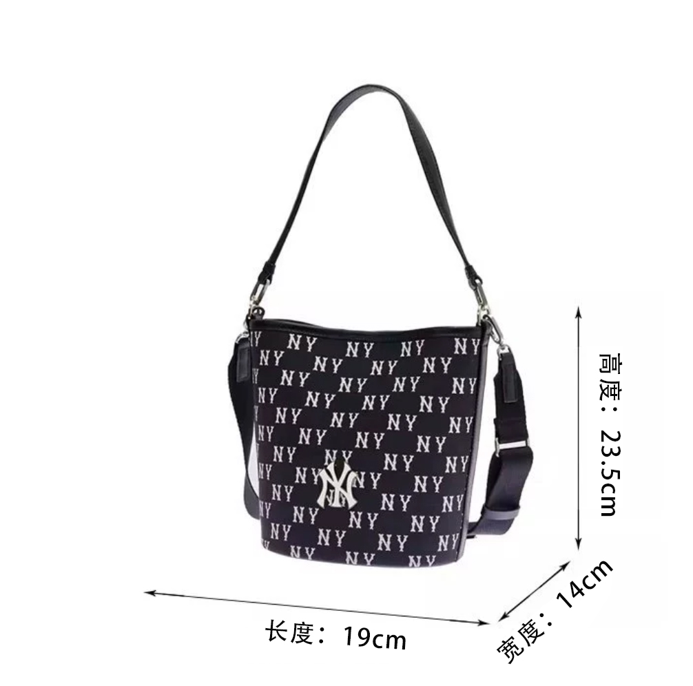 严选 | MLB复古提花水桶包 黑色/奶油色 19*14*23.5cm