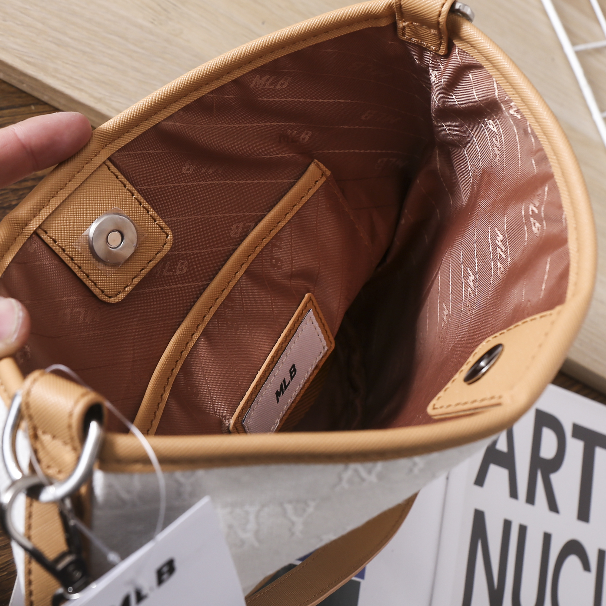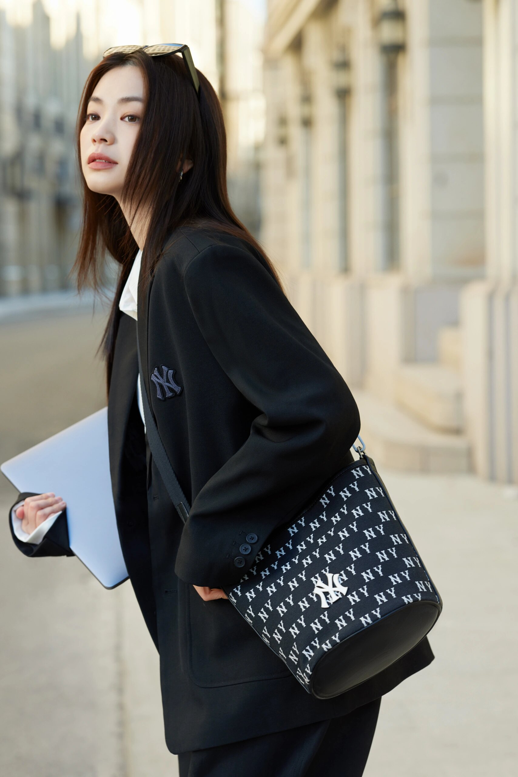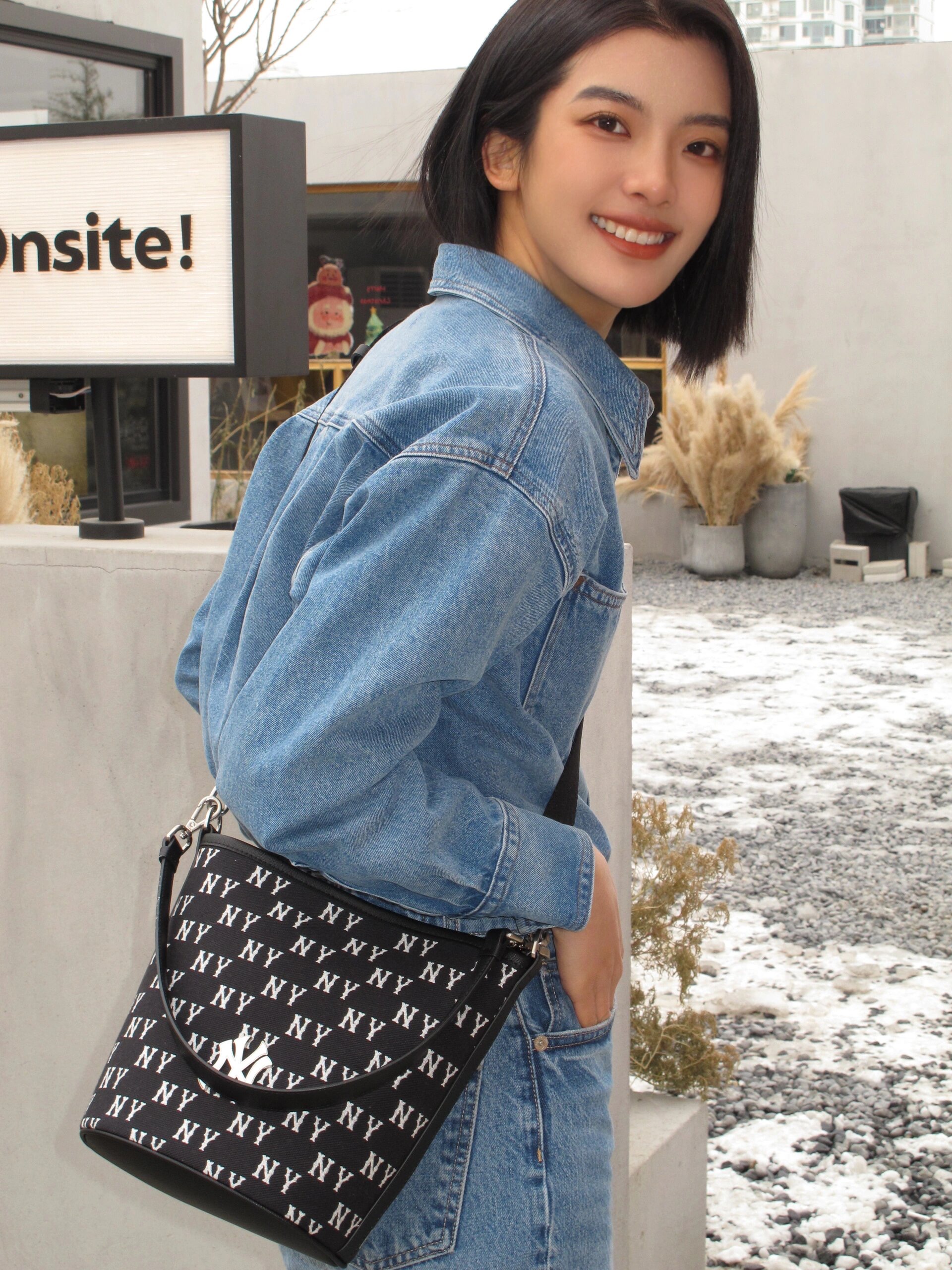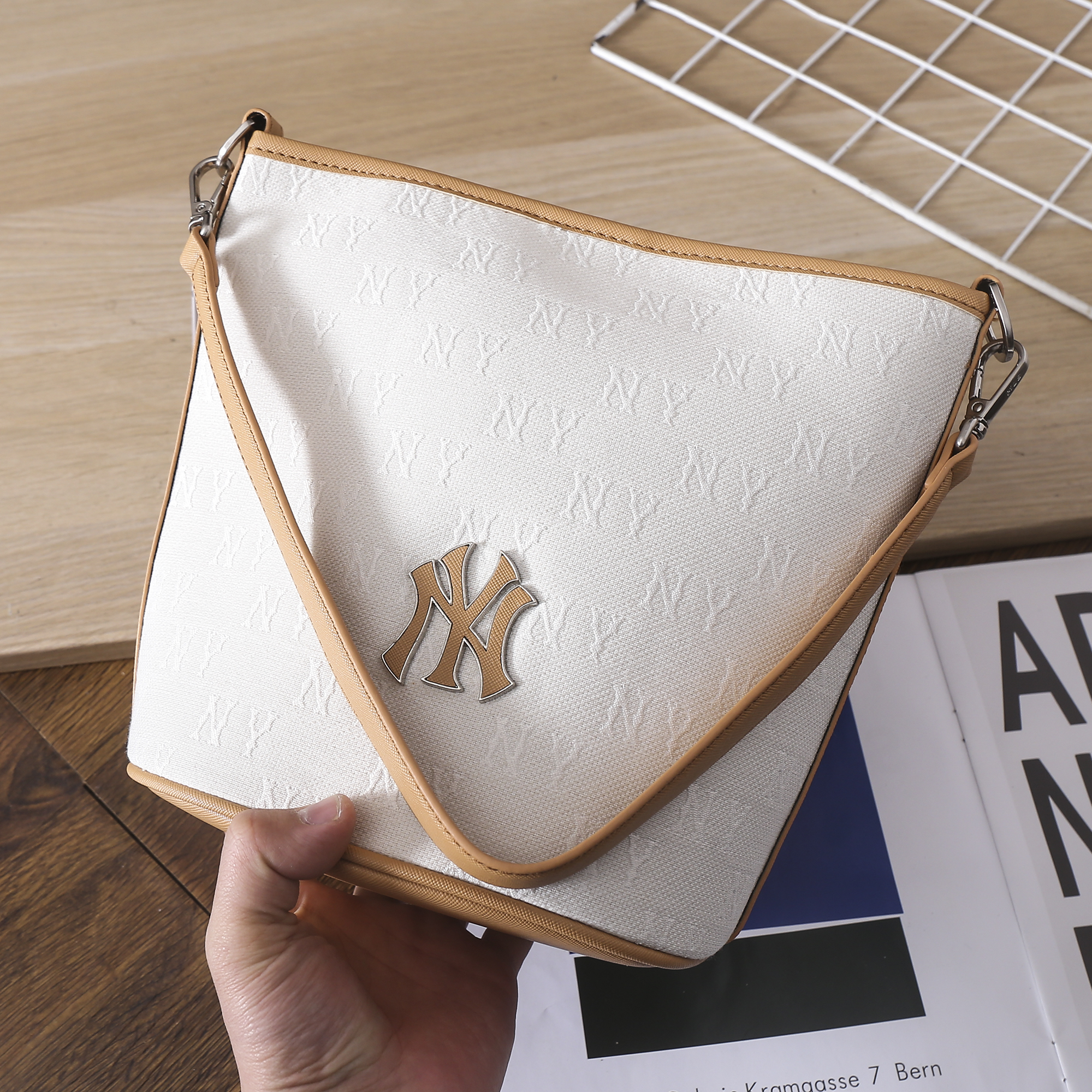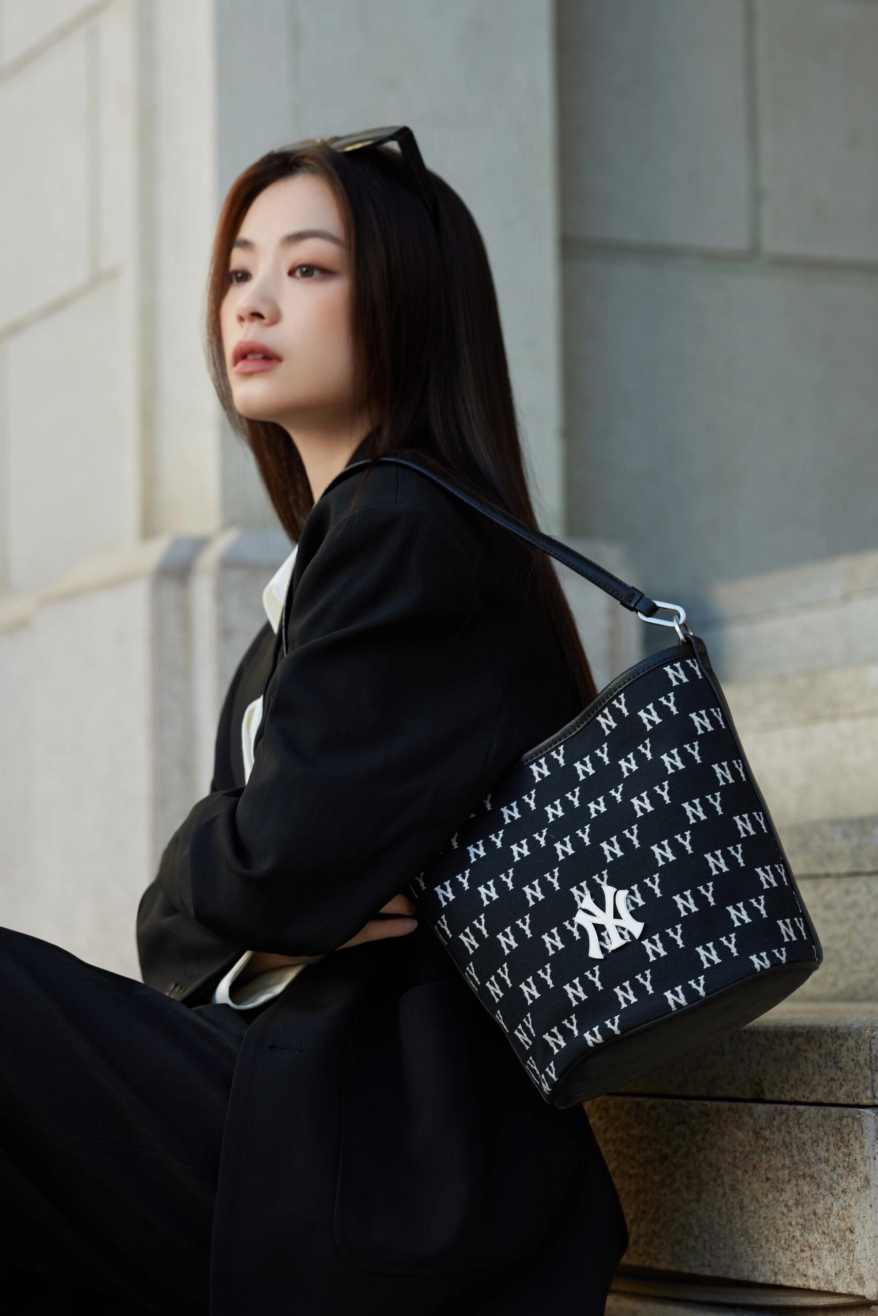 严选 | MLB复古提花水桶包 黑色/奶油色 19*14*23.5cm