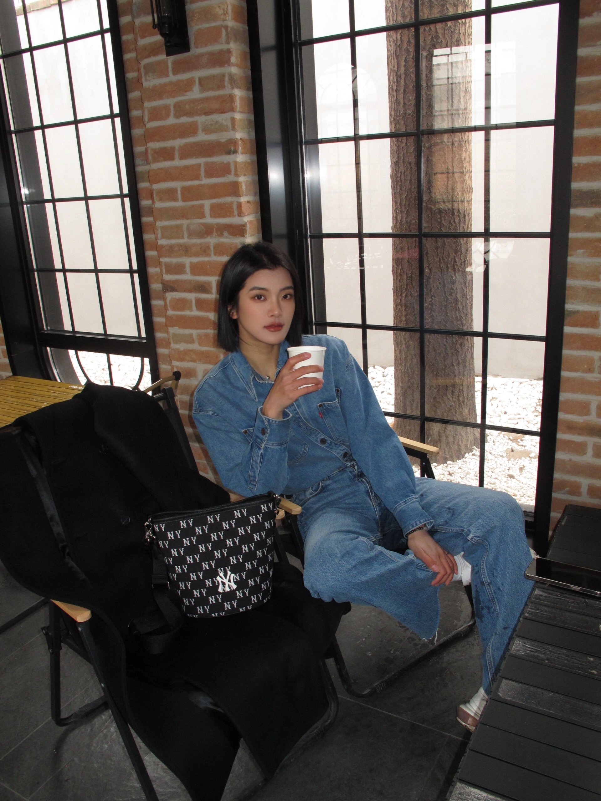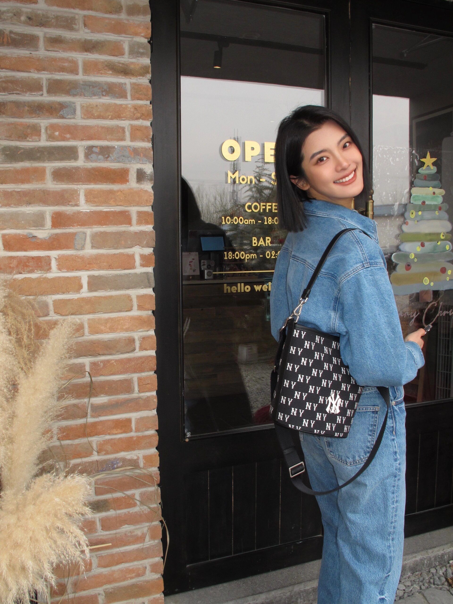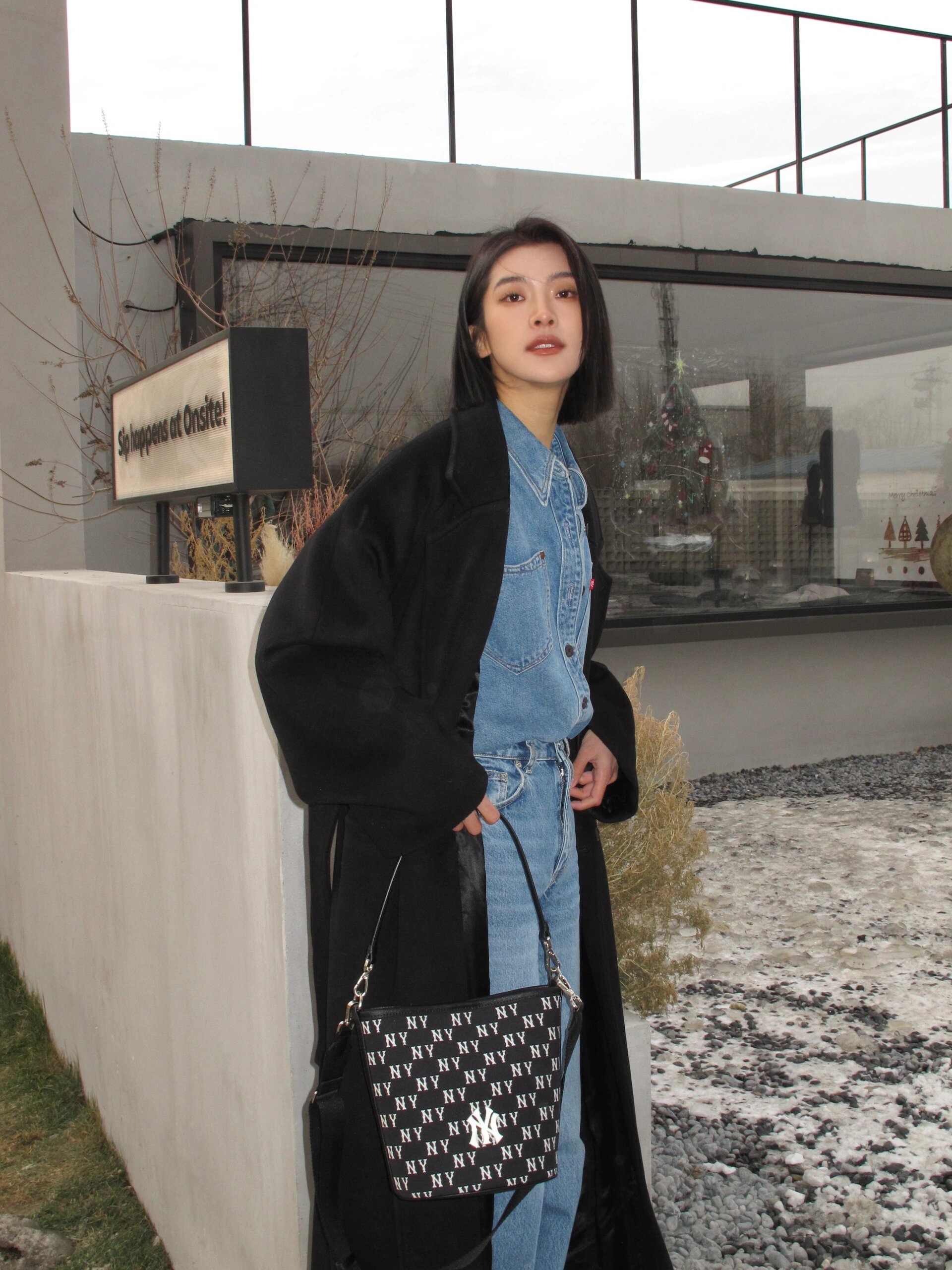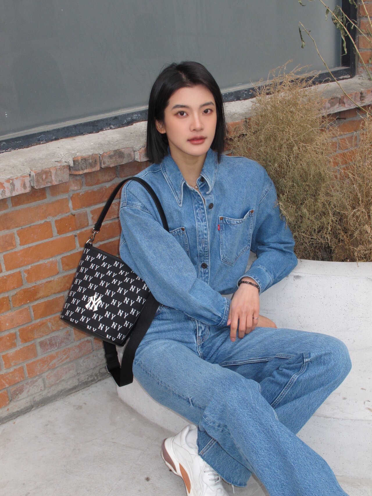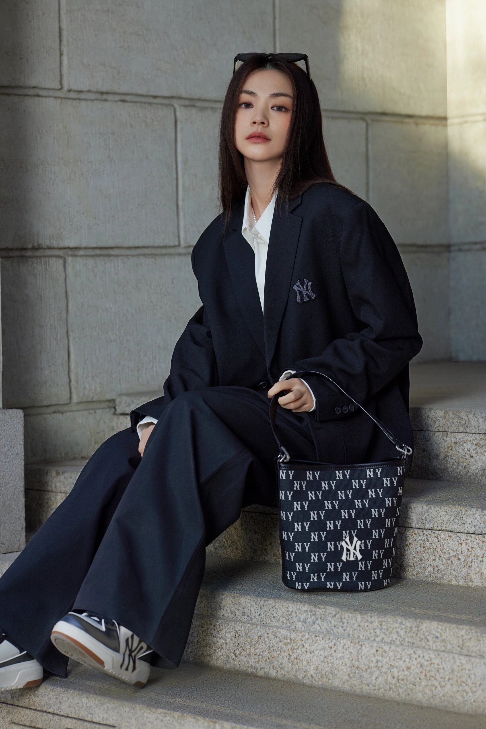 严选 | MLB复古提花水桶包 黑色/奶油色 19*14*23.5cm