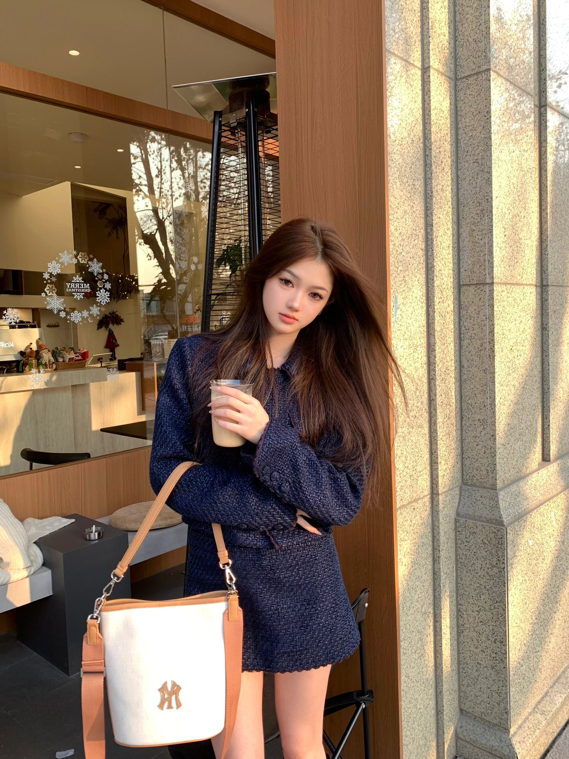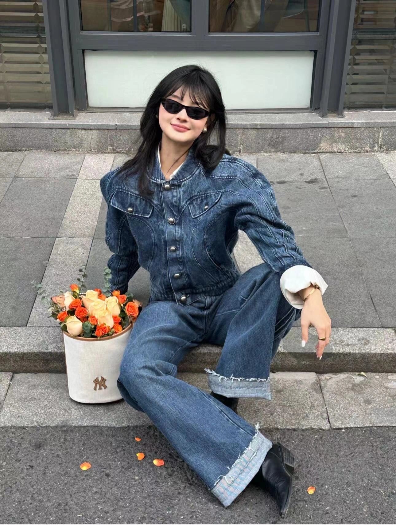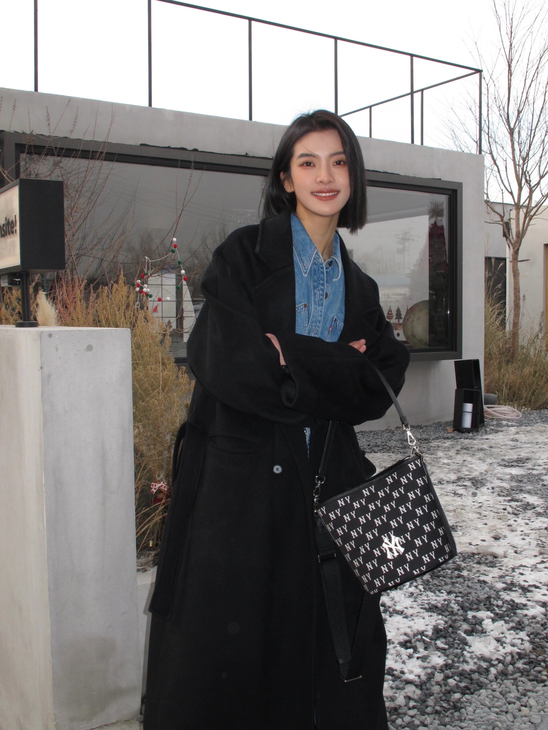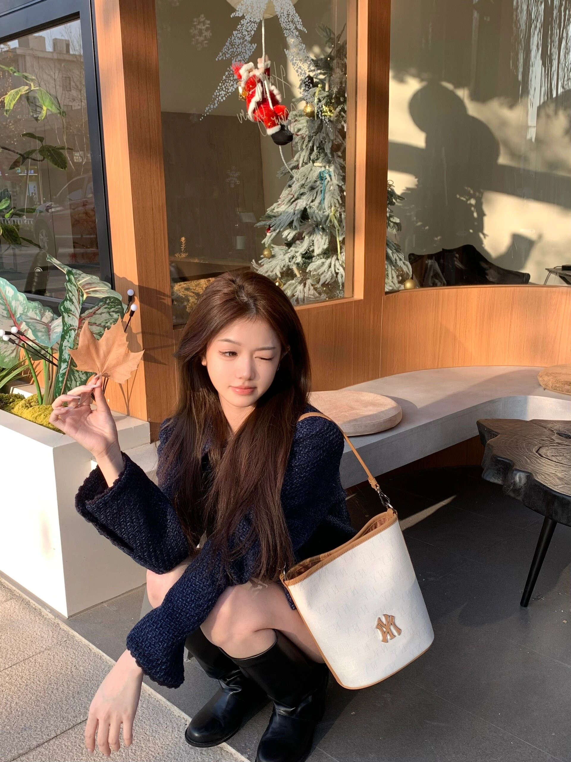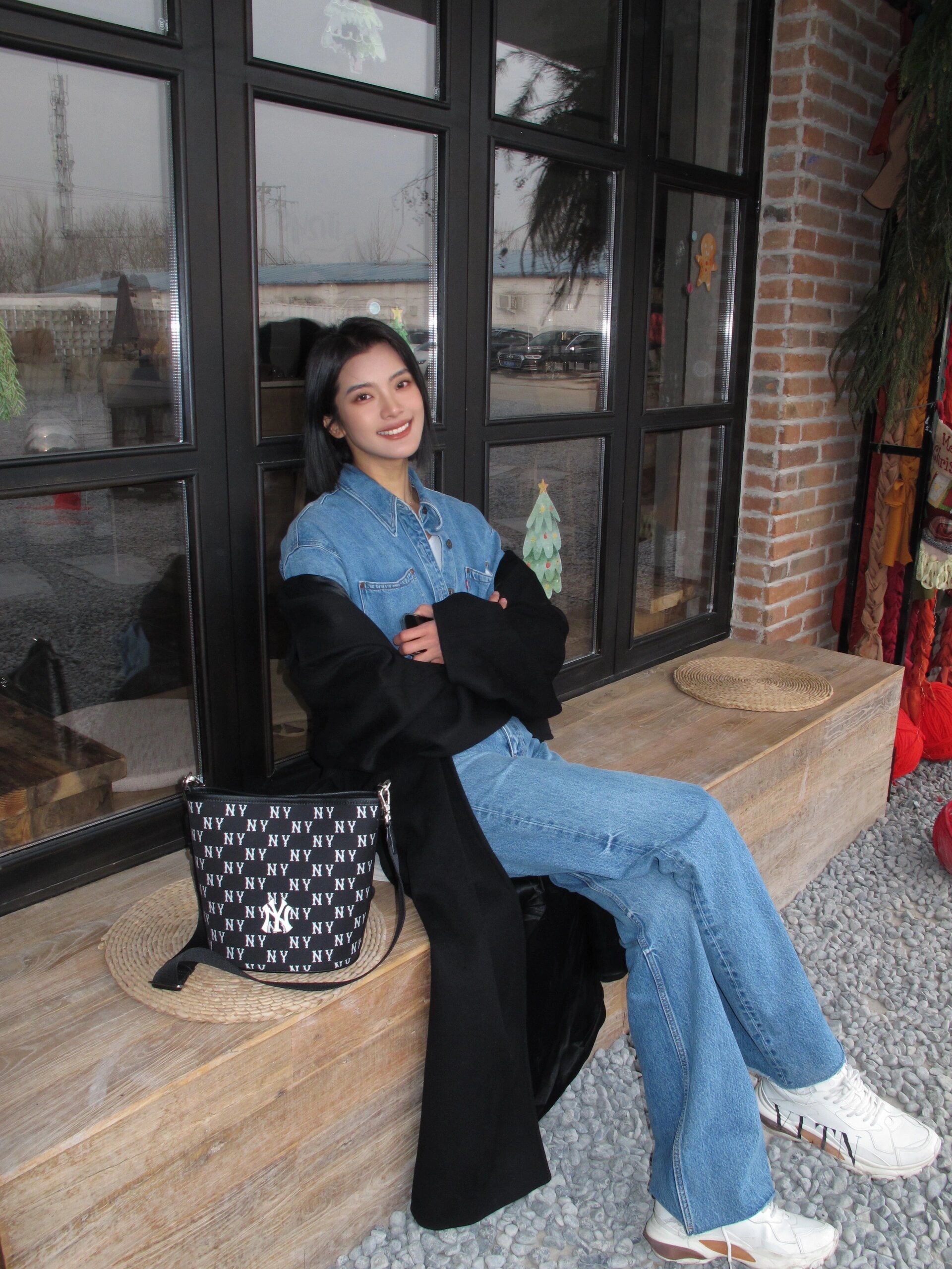 严选 | MLB复古提花水桶包 黑色/奶油色 19*14*23.5cm