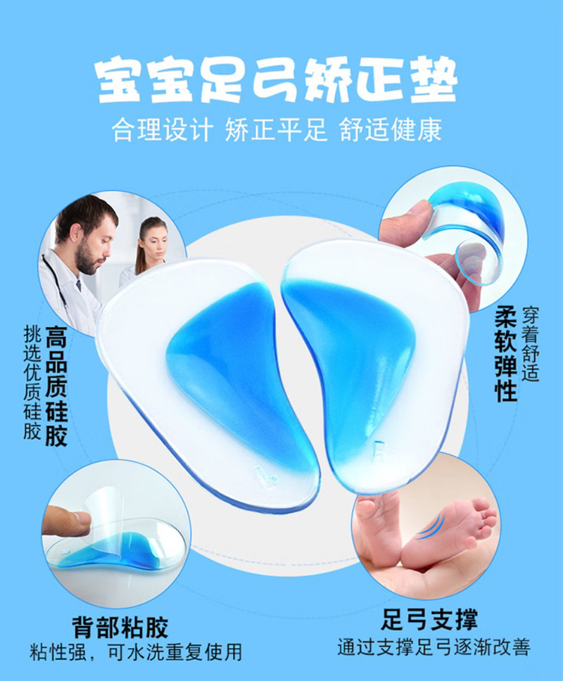 儿童扁平足矫正硅胶足弓托小童足外翻内八字XO型腿矫正鞋垫硅胶垫