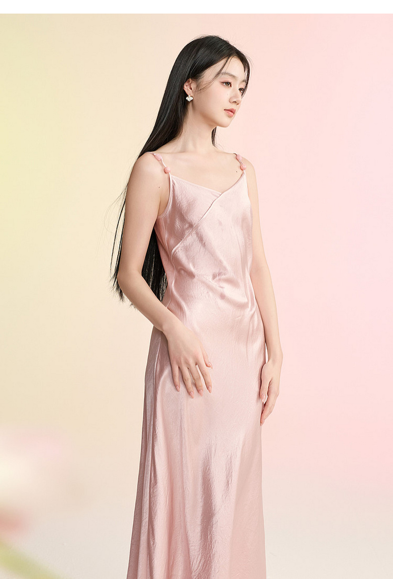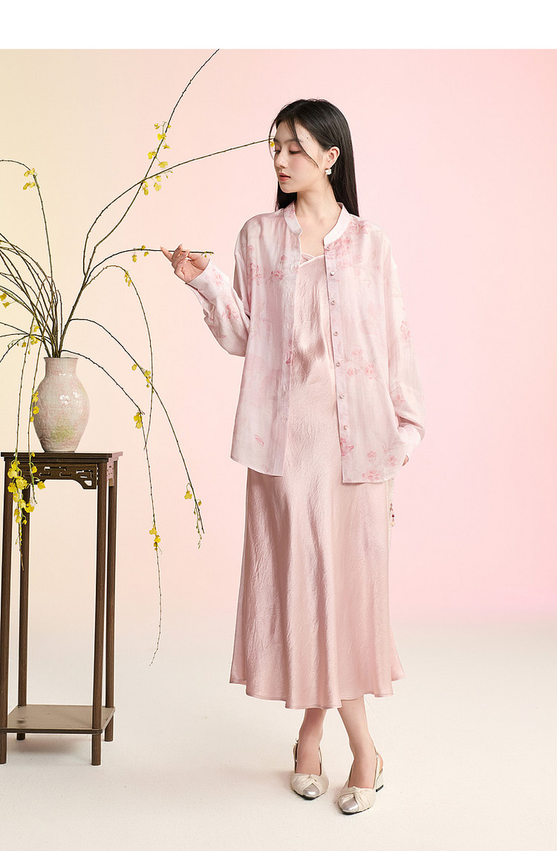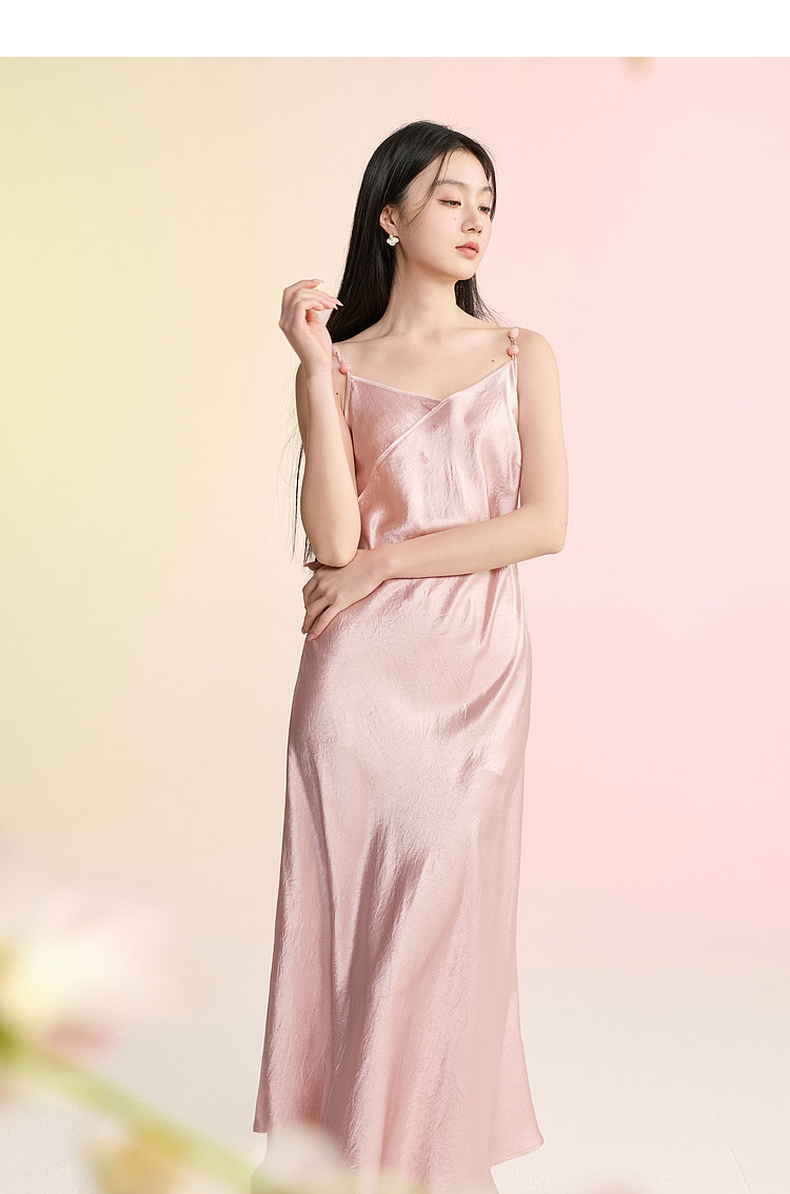三彩【雾染流霞】2026春季新款新中式连衣裙醋酸吊带裙长裙C