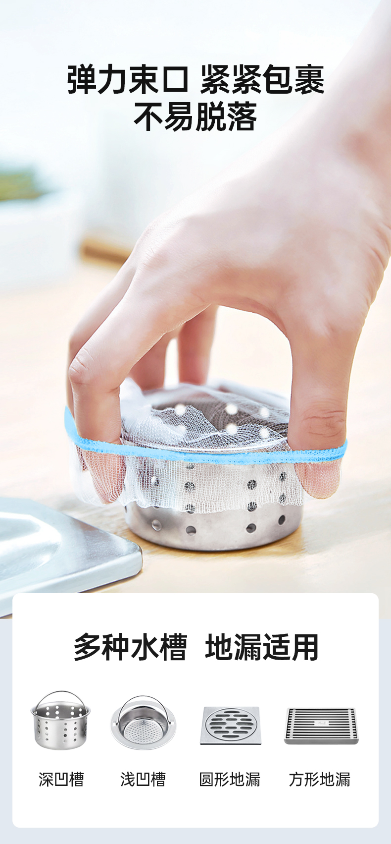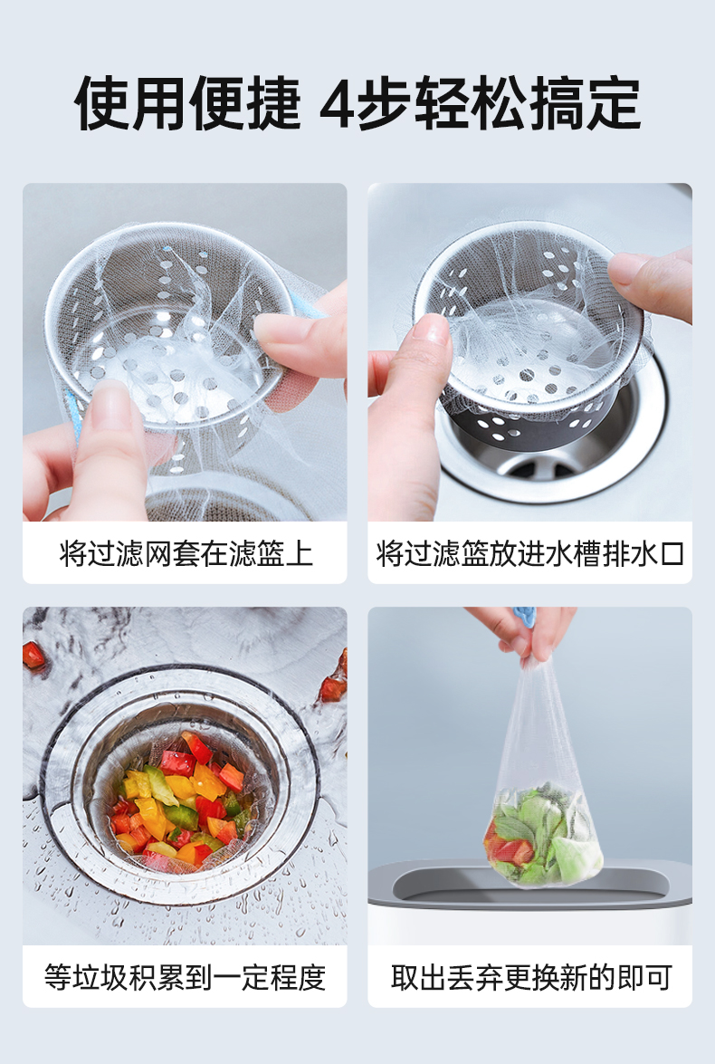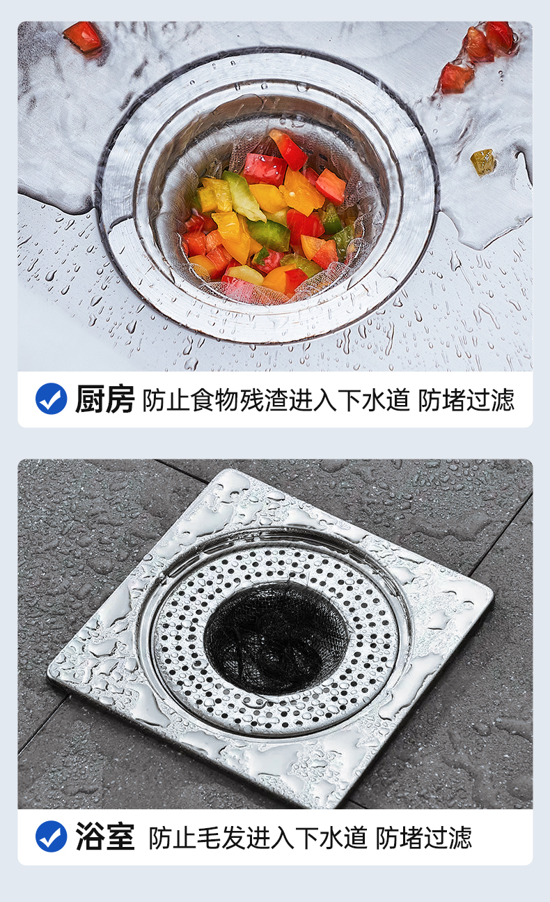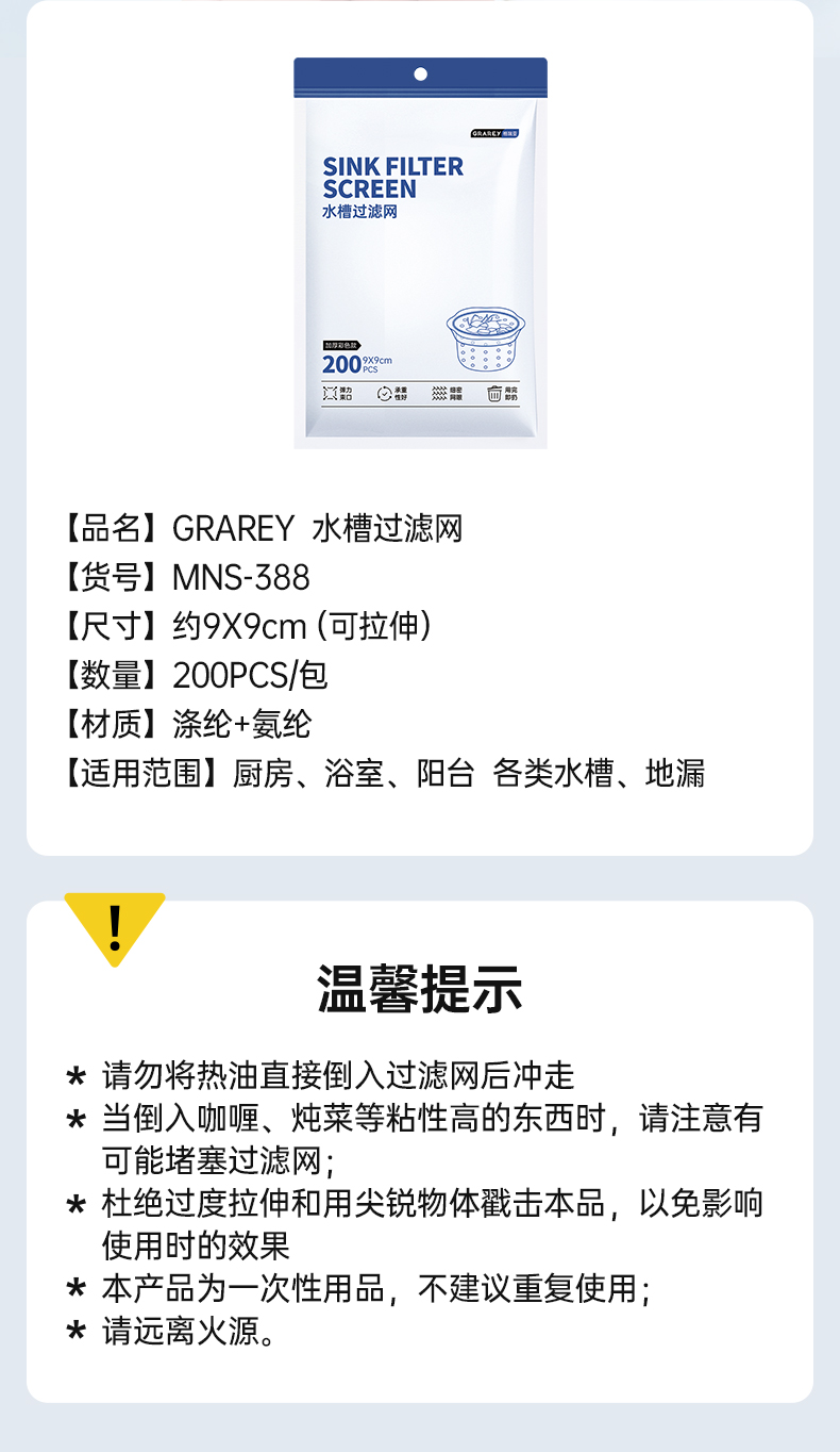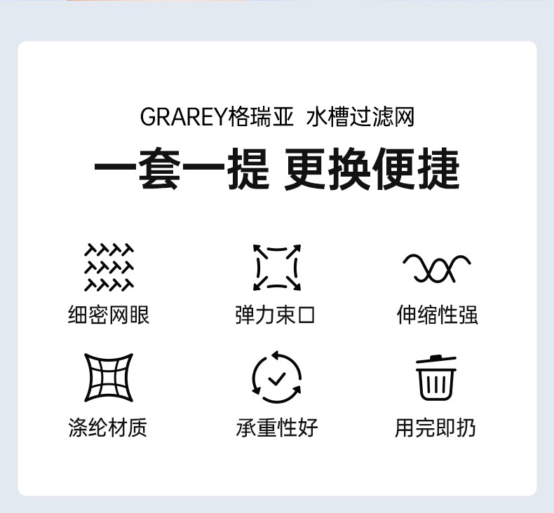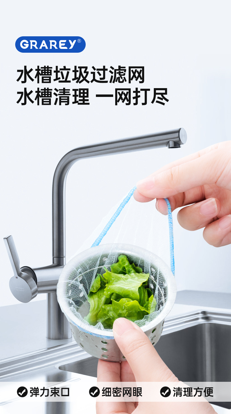 【GRAREY格瑞亚-水槽过滤网-蓝色皮筋款】29.9元到手600只!轻松摆脱水槽脏、臭、油,一袋解决厨房麻烦!