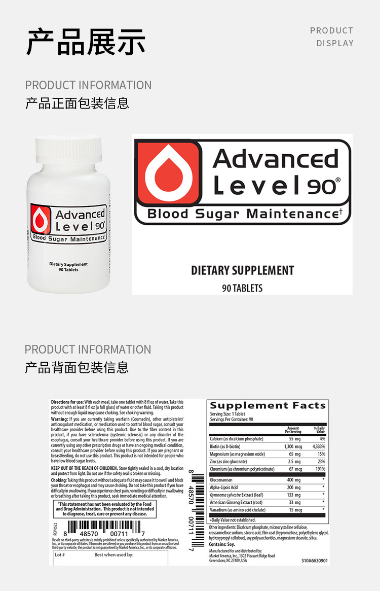 Advanced Level 90膳食纤维血糖片-保税仓发货