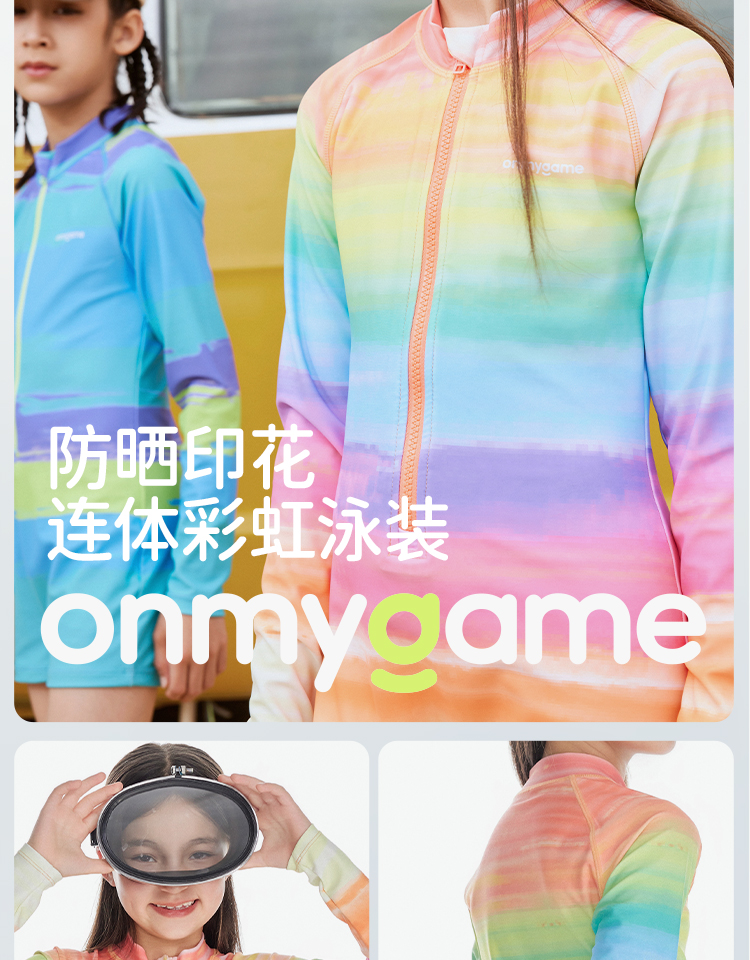 onmygame女童泳衣儿童连体速干泳装2024新款男童夏季防晒套装
