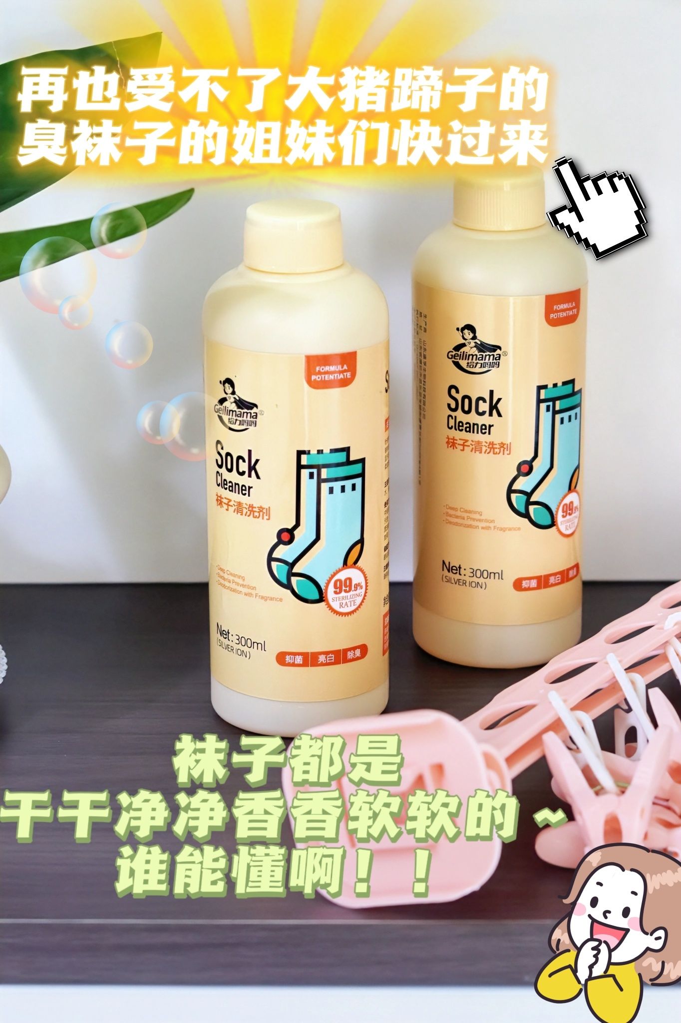 【给力妈妈袜子清洗剂】 💰29.9/3瓶!送一个千秋盖❗ 💥轻轻松松免搓洗❗❗❗ 洗完的袜子又香又软!亮白去渍💧