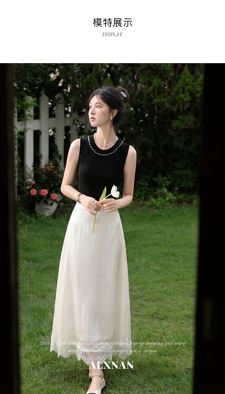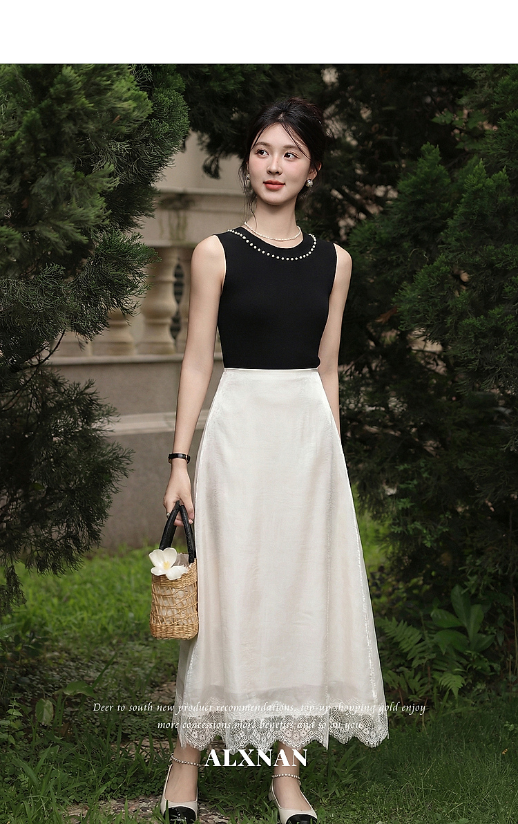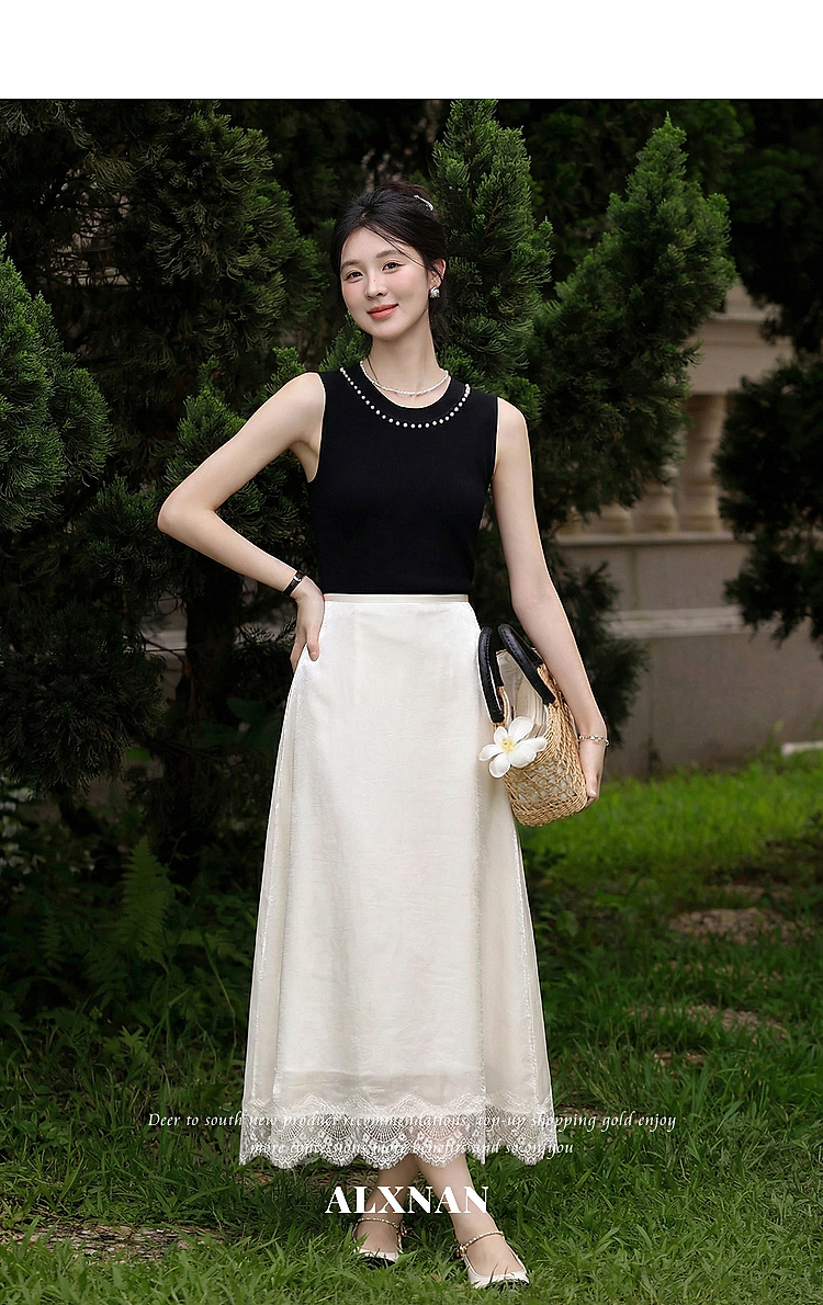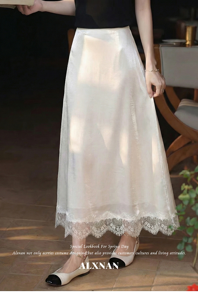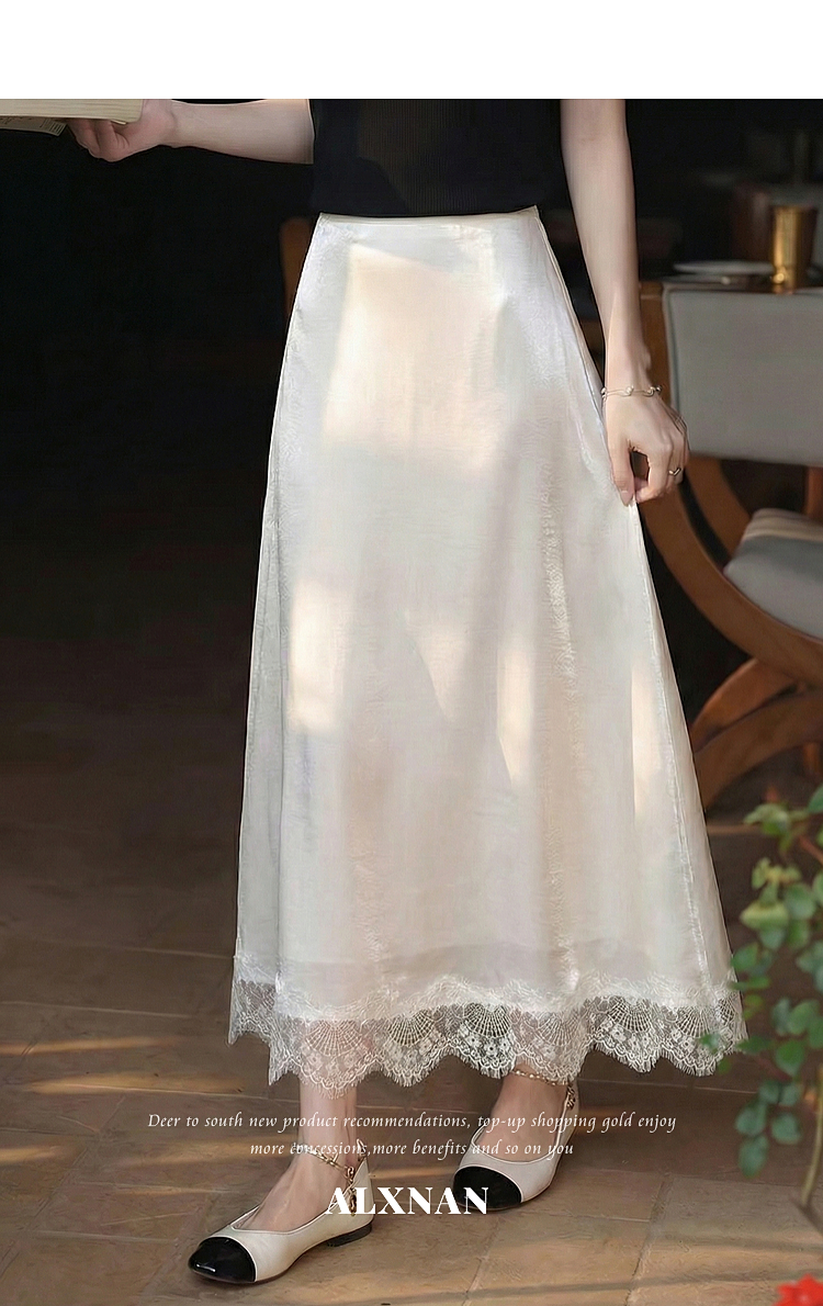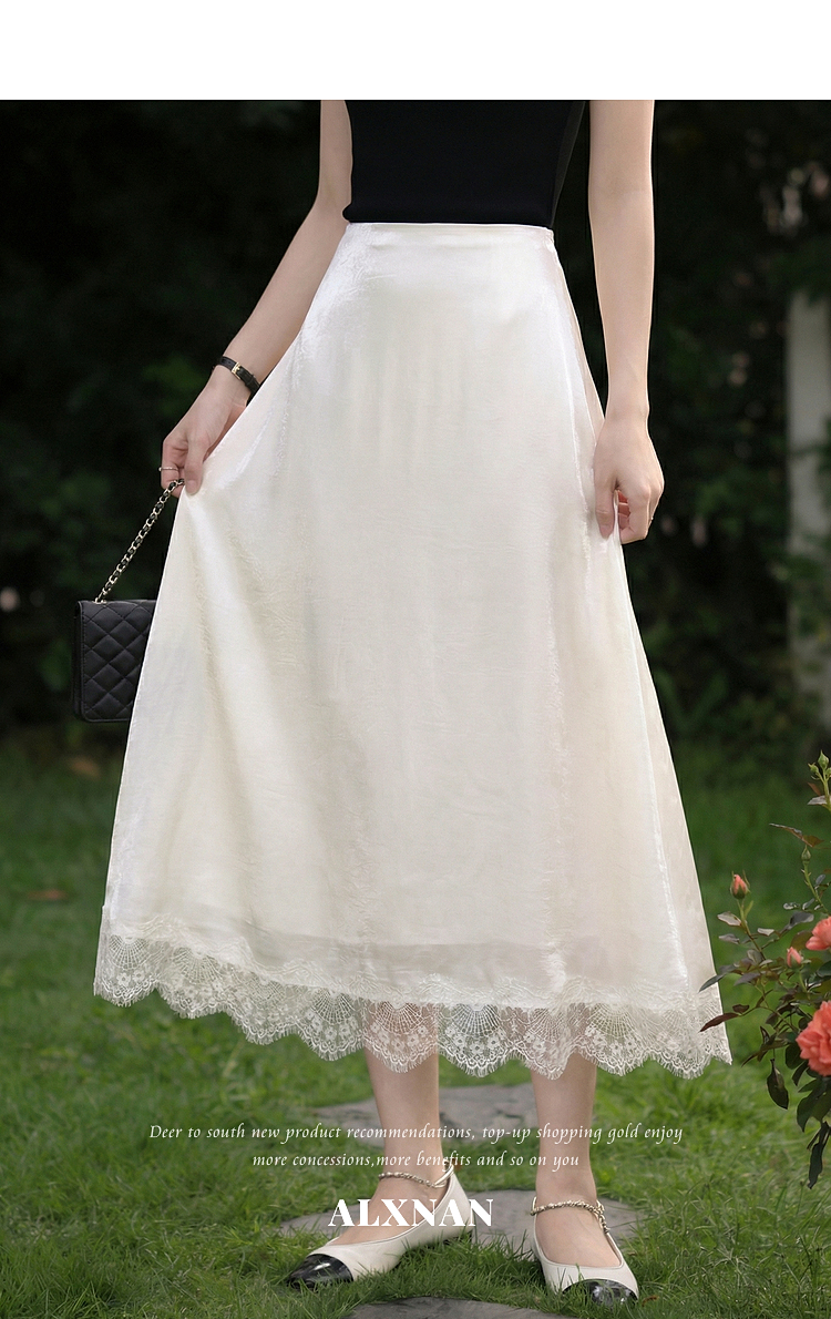 鹿向南「鎏光梦境」米白色半身裙春季新款时尚蕾丝裙摆A字长裙女