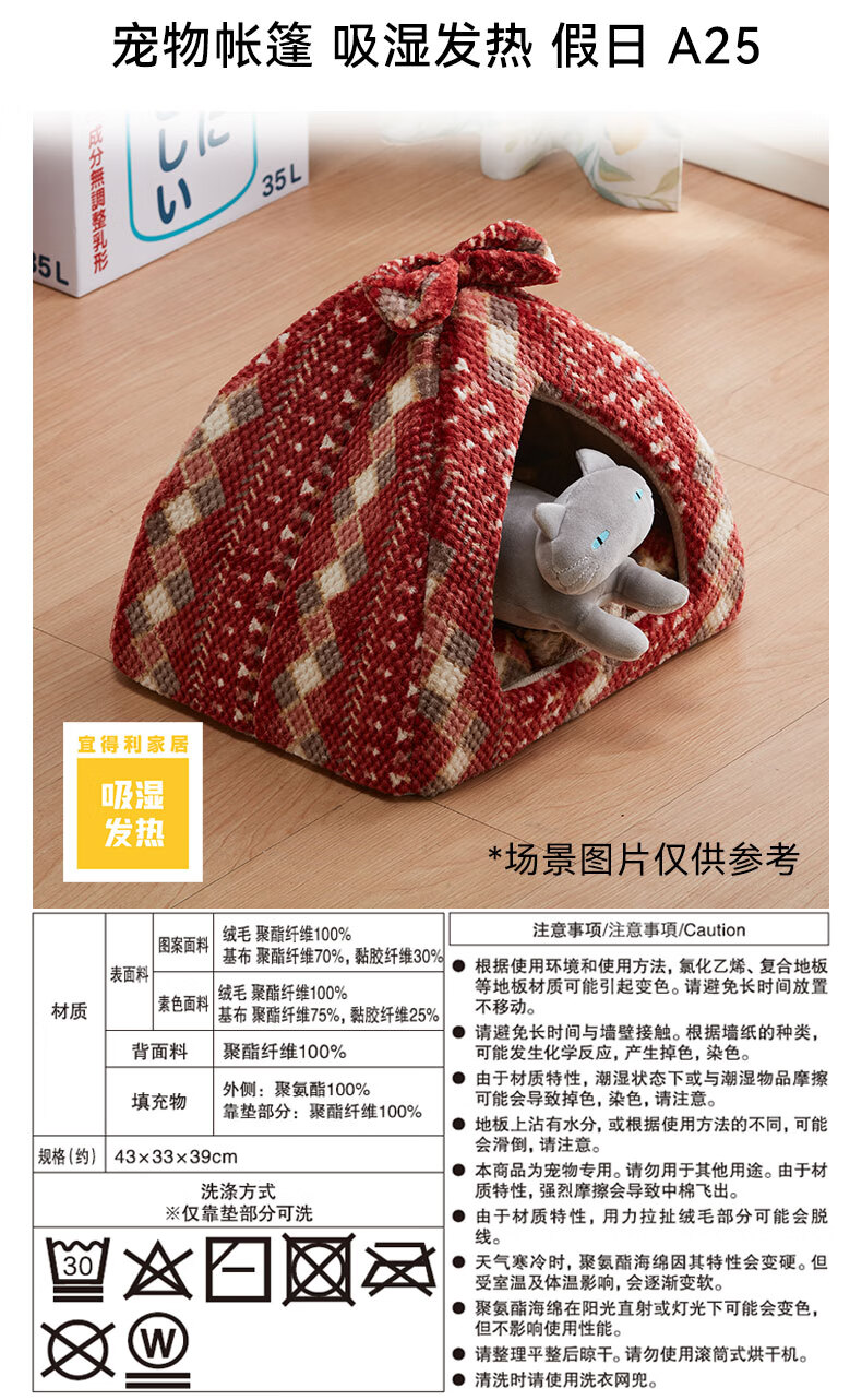 宠物窝帐篷秋冬吸湿发热保暖宠物垫带枕 假日A25系列