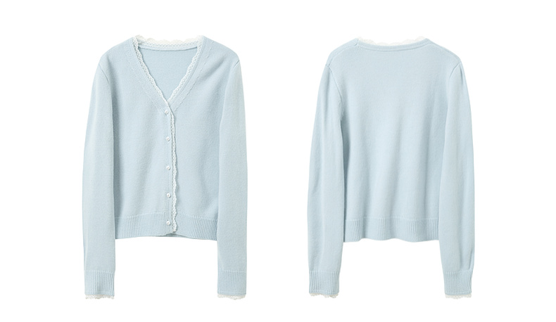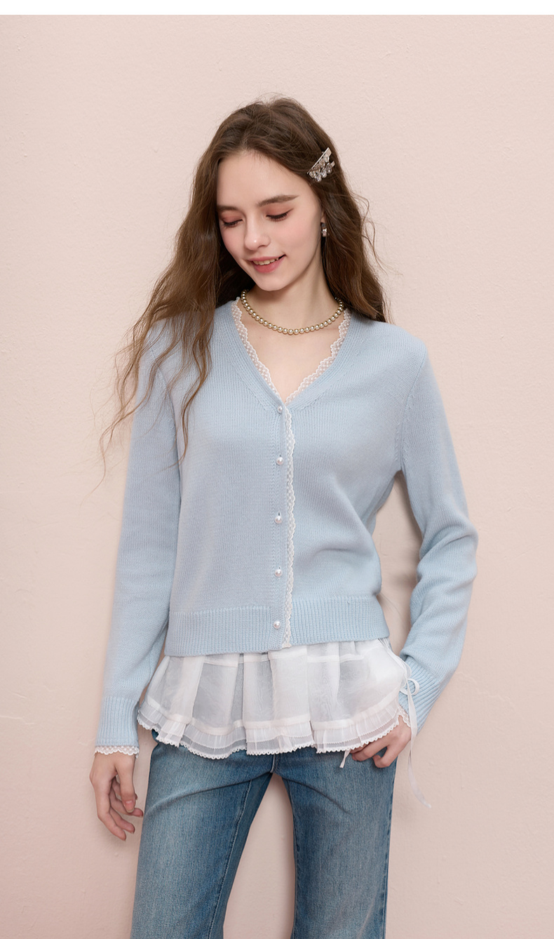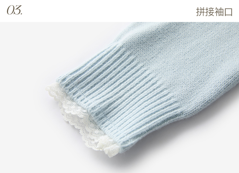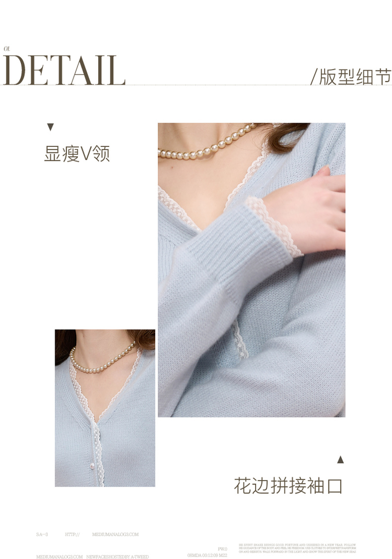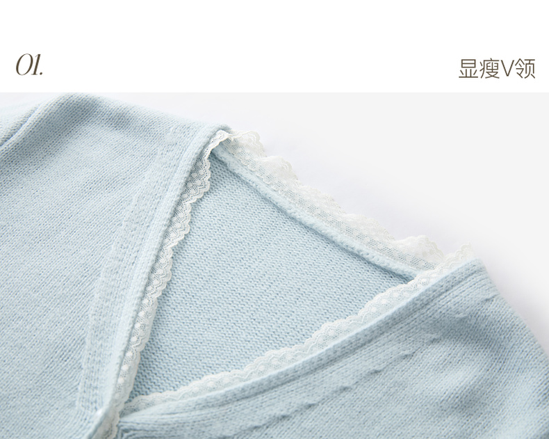 三彩2025冬季新款花边拼接针织衫V领毛衫开衫外套M